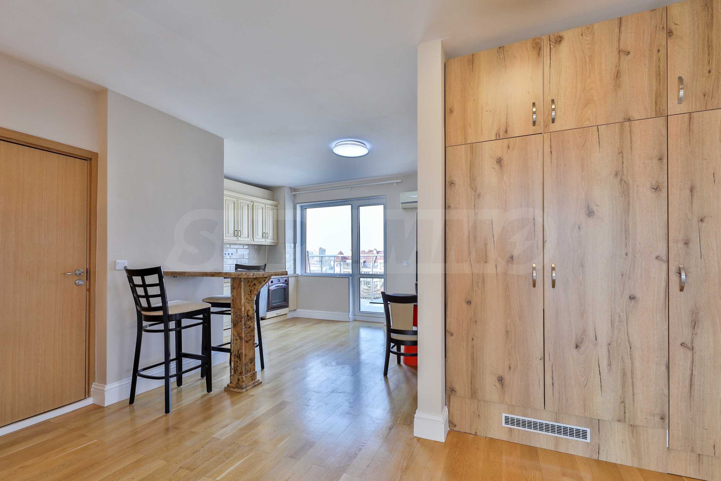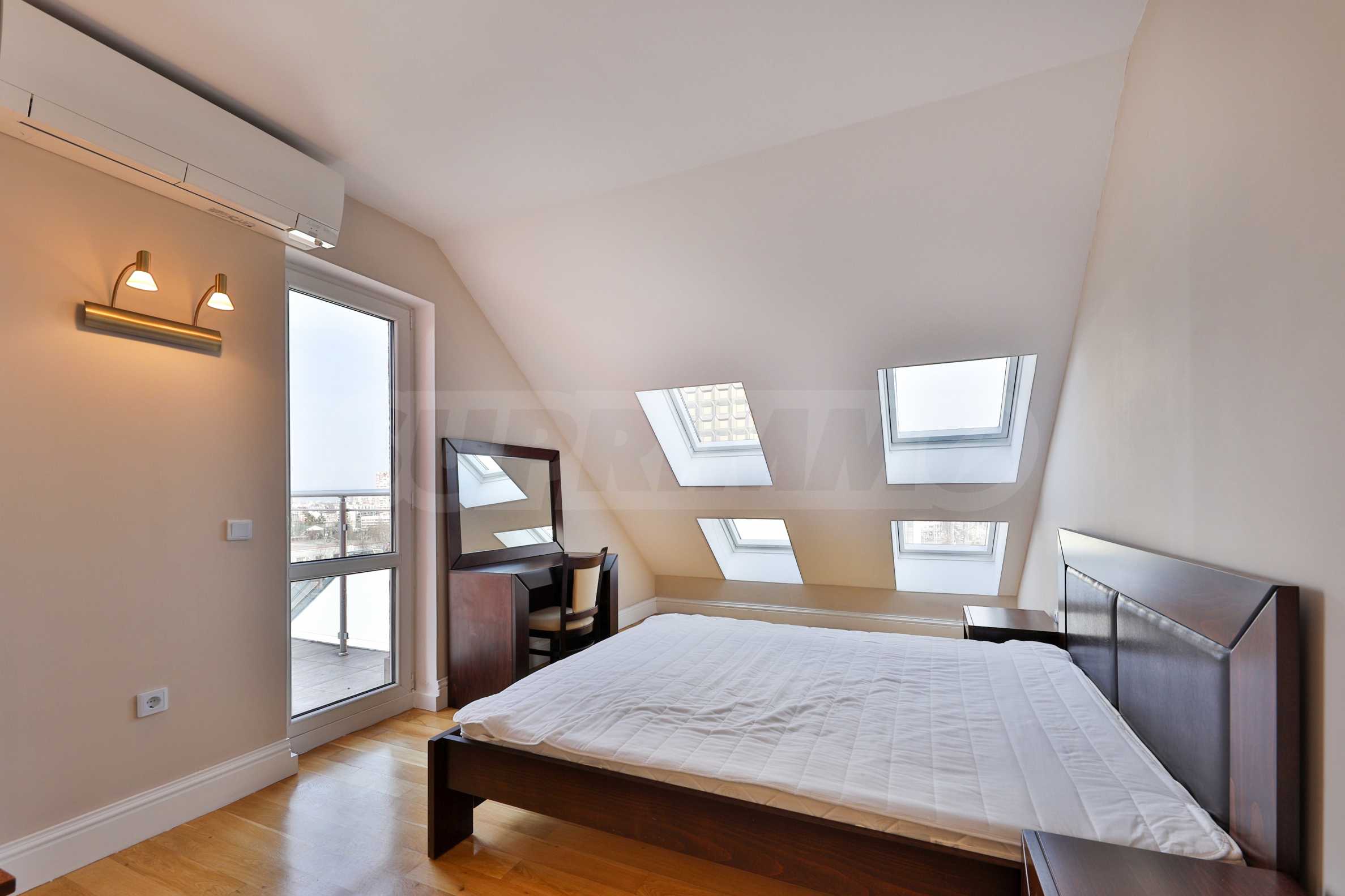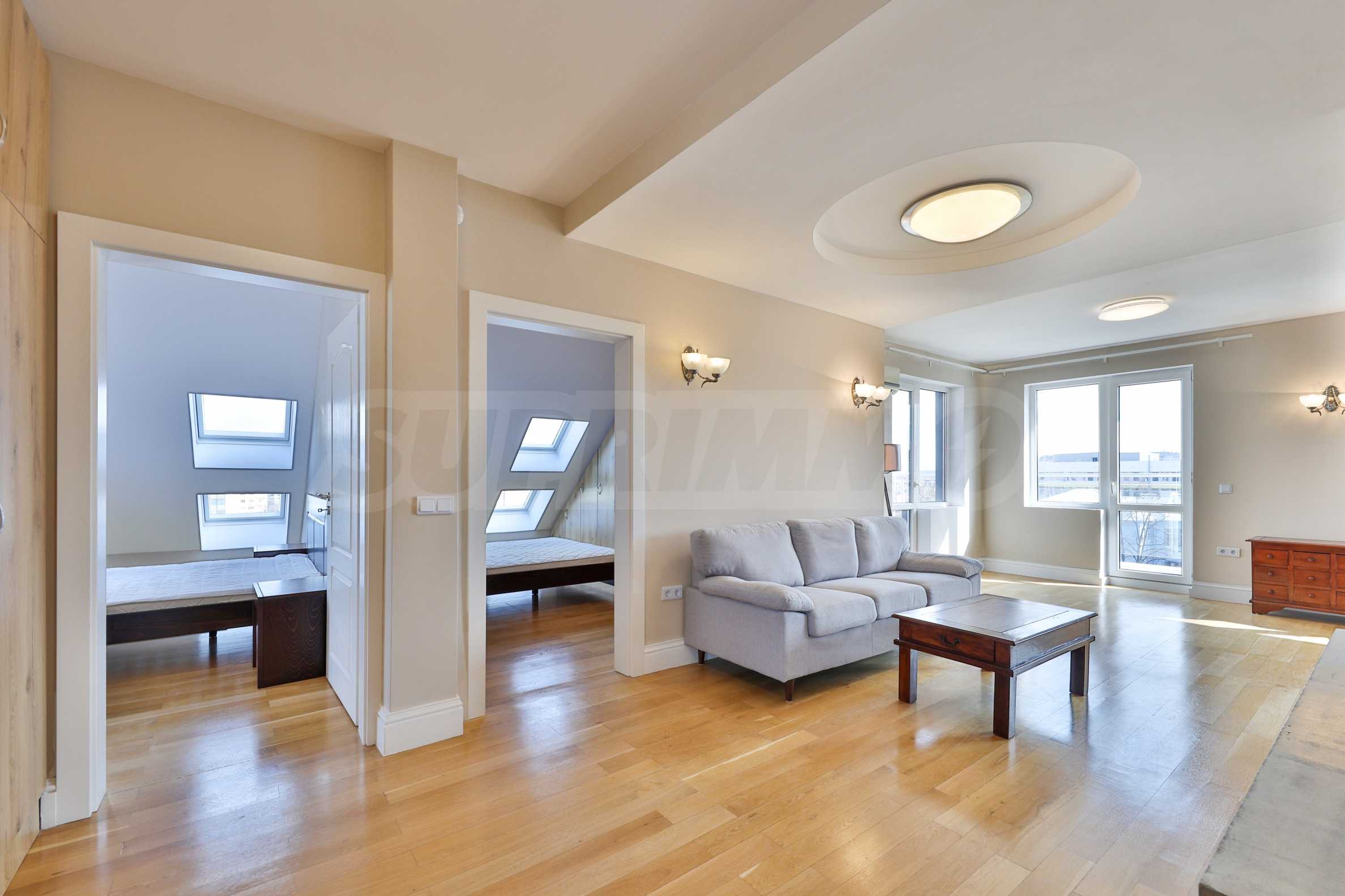 Oferujemy do wynajęcia wyjątkowy apartament z dwiema sypialniami, zlokalizowany na 7. piętrze, z imponującym widokiem na panoramę centrum Sofii i Górę Witosza.