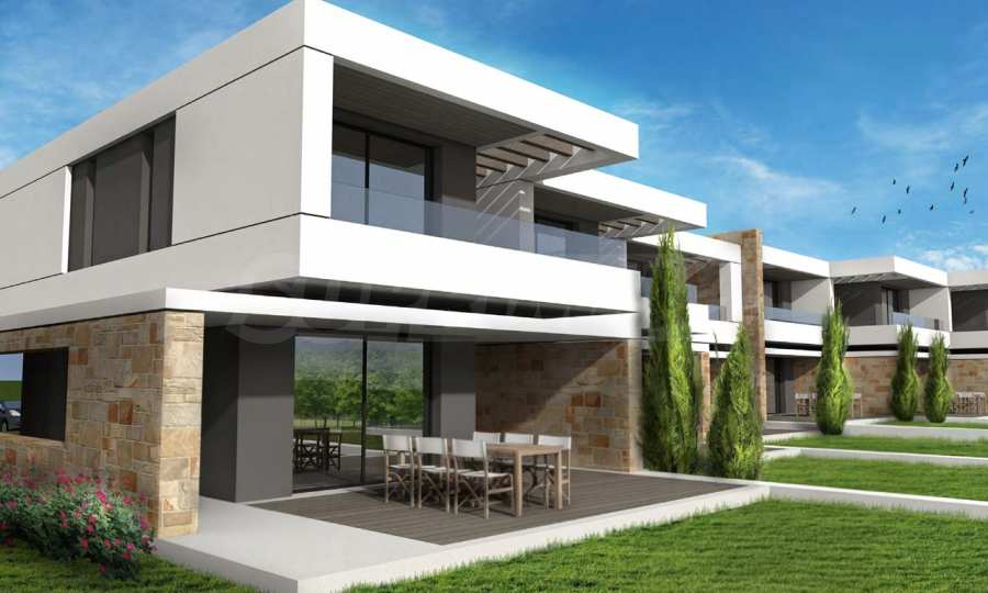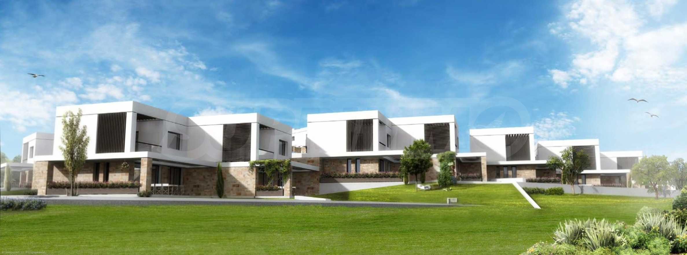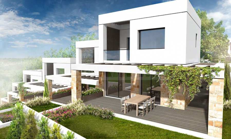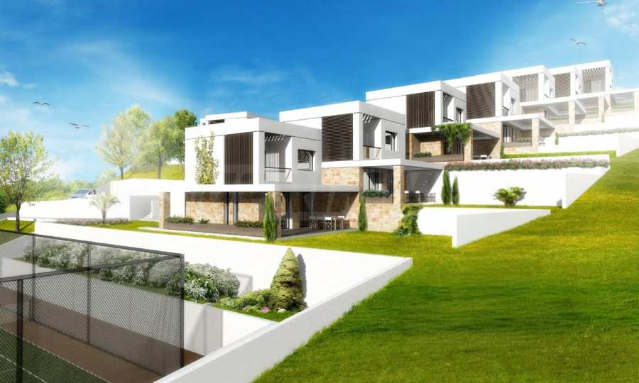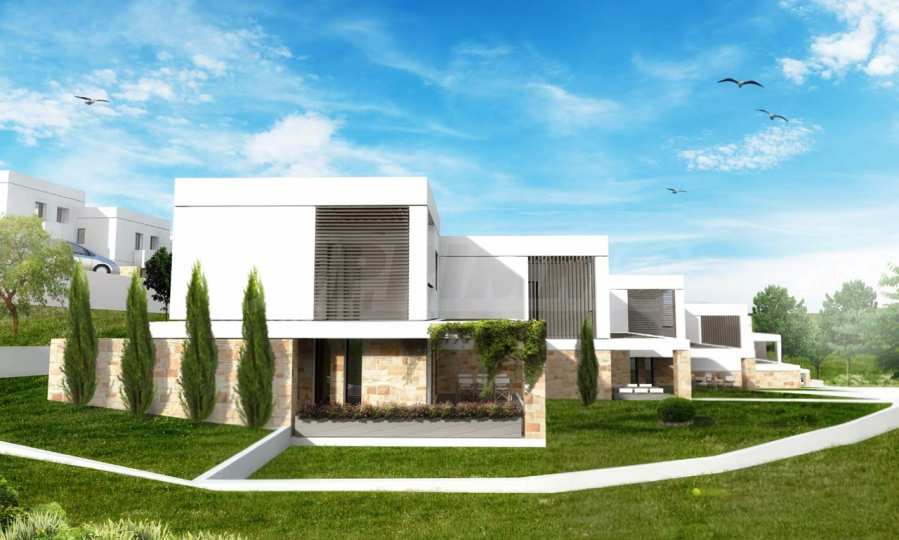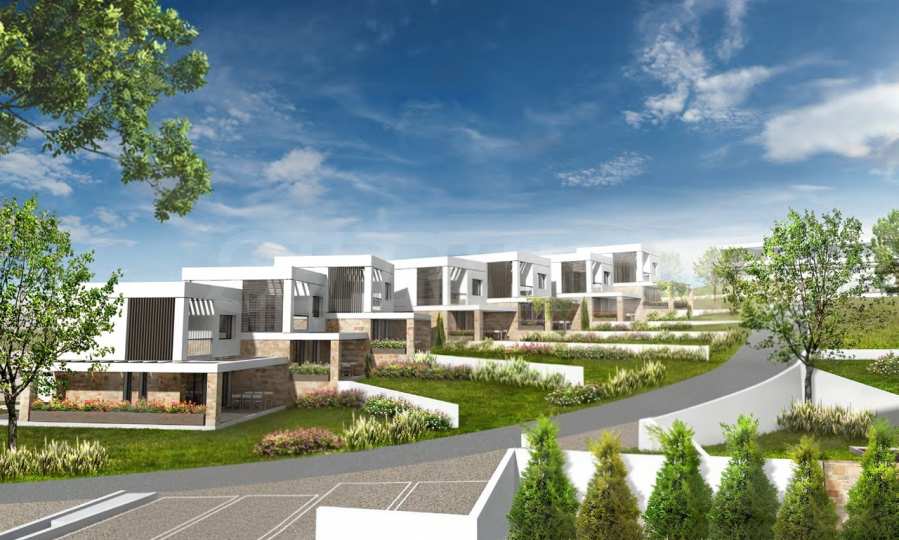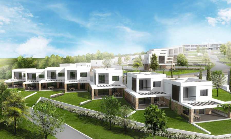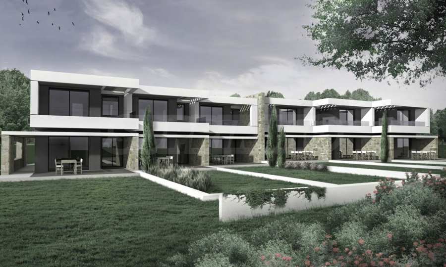 Przedstawiamy Państwu projekt inwestycyjny na dużą skalę, położony na zielonym wzgórzu w okolicach Kalandra i Possidi na wyspie Kassandra. Nieruchomość rozciąga się na rozległej działce o powierzchni 43 000 m², położonej na wysokości około 200 metrów nad poziomem morza, co zapewnia każdemu z domów wspaniały, panoramiczny widok na zatokę. Projekt to zamknięty kompleks (wioska), składający się z 34 dwupiętrowych domów szeregowych, rozmieszczonych w pięciu blokach architektonicznych. Architektura utrzymana jest w nowoczesnym stylu doryckim, z czystymi, białymi bryłami, które harmonizują z krajobrazem dzięki wykorzystaniu naturalnego światła, lokalnego kamienia i elementów drewnianych.