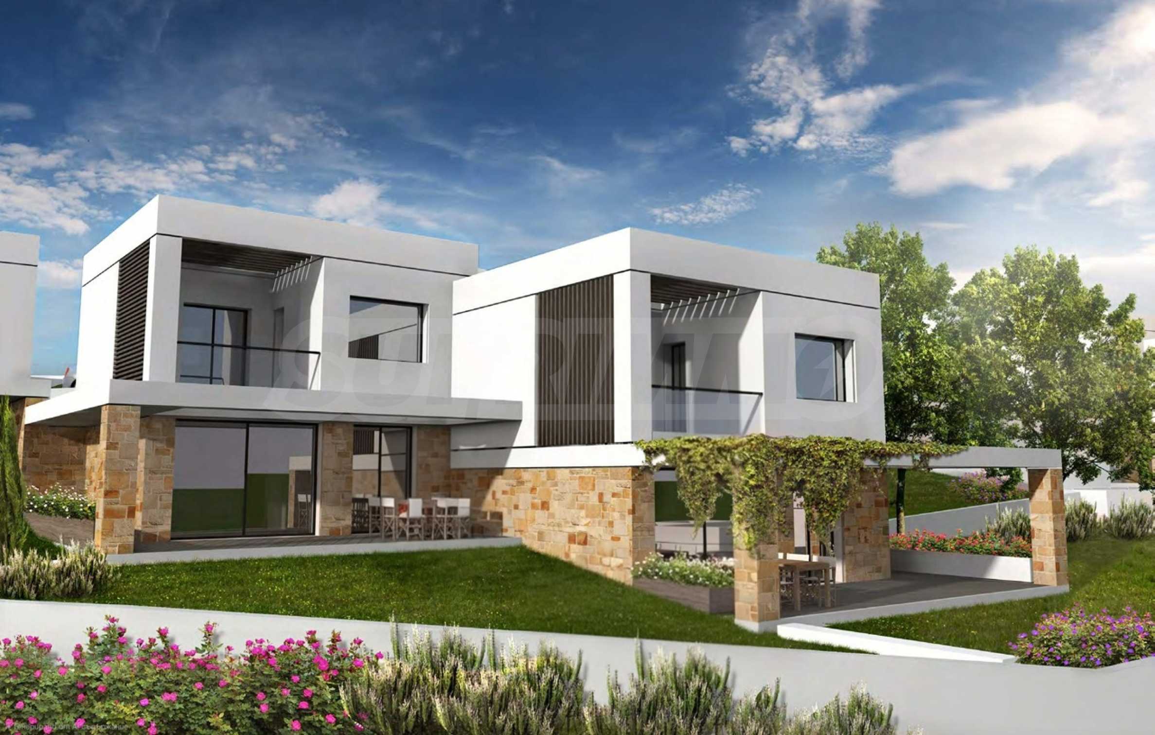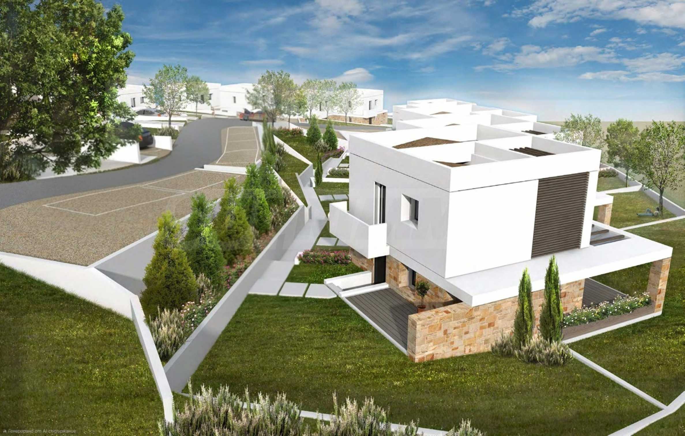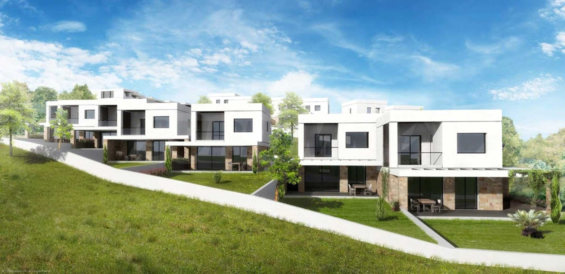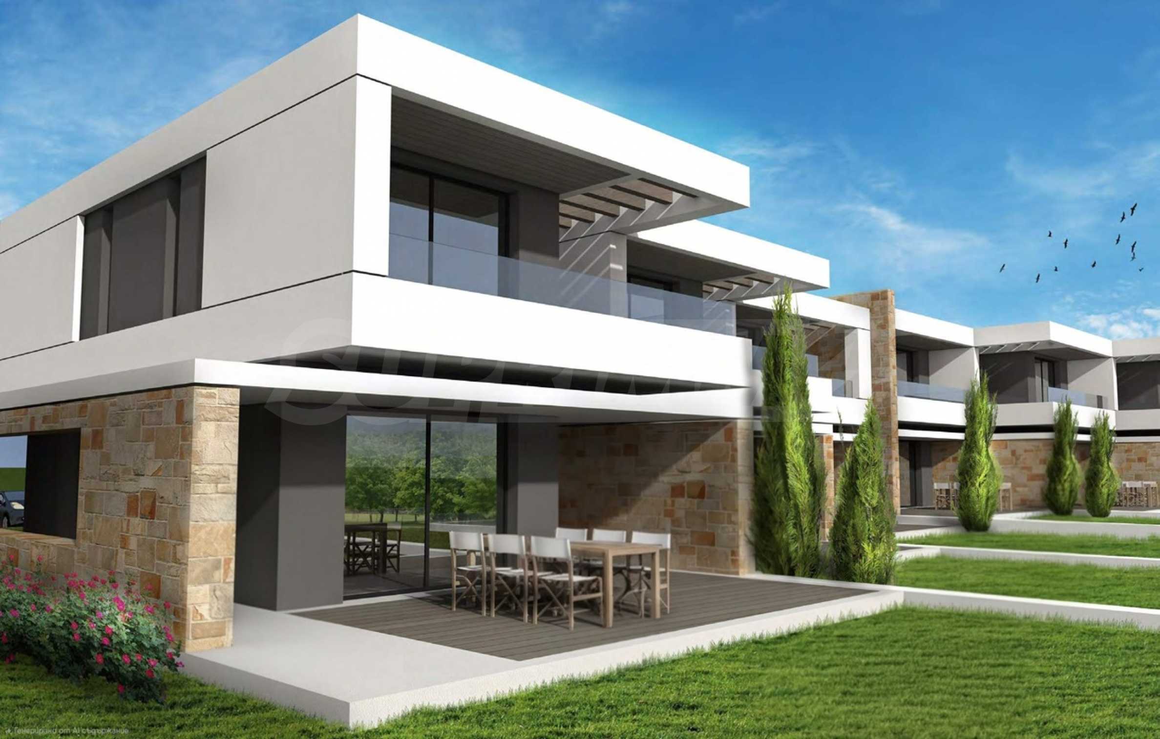 Przedstawiamy Państwu projekt inwestycyjny na dużą skalę, położony na zielonym wzgórzu w okolicach Kalandra i Possidi na wyspie Kassandra. Nieruchomość rozciąga się na rozległej działce o powierzchni 43 000 m², położonej na wysokości około 200 metrów nad poziomem morza, co zapewnia każdemu z domów wspaniały, panoramiczny widok na zatokę. Projekt to zamknięty kompleks (wioska), składający się z 34 dwupiętrowych domów szeregowych, rozmieszczonych w pięciu blokach architektonicznych. Architektura utrzymana jest w nowoczesnym stylu doryckim, z czystymi, białymi bryłami, które harmonizują z krajobrazem dzięki wykorzystaniu naturalnego światła, lokalnego kamienia i elementów drewnianych.