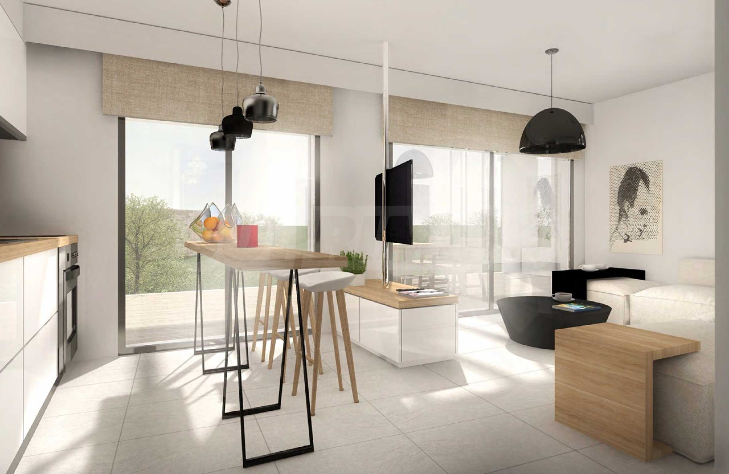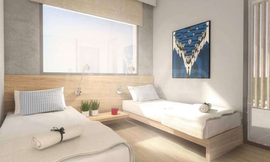 Zasób mieszkaniowy podzielony jest na dwie główne kategorie. Bloki A, B, C i D obejmują łącznie 28 domów (po siedem w każdym) o powierzchni 80 m² każdy. Ich układ został zaprojektowany z myślą o maksymalnym komforcie: na parterze (45 m²) znajduje się salon z kuchnią i jadalnią, sypialnia gościnna i łazienka, a na piętrze (35 m²) dwie kolejne sypialnie, druga łazienka i taras z widokiem na morze. Najbardziej ekskluzywną częścią jest Blok E, położony w najwyższym punkcie kompleksu. Składa się on z 6 domów o większej powierzchni, wynoszącej 97 m², o tym samym układzie, z bardziej przestronnymi prywatnymi dziedzińcami przed salonami i bezpośrednim dostępem do strefy basenowej kompleksu.