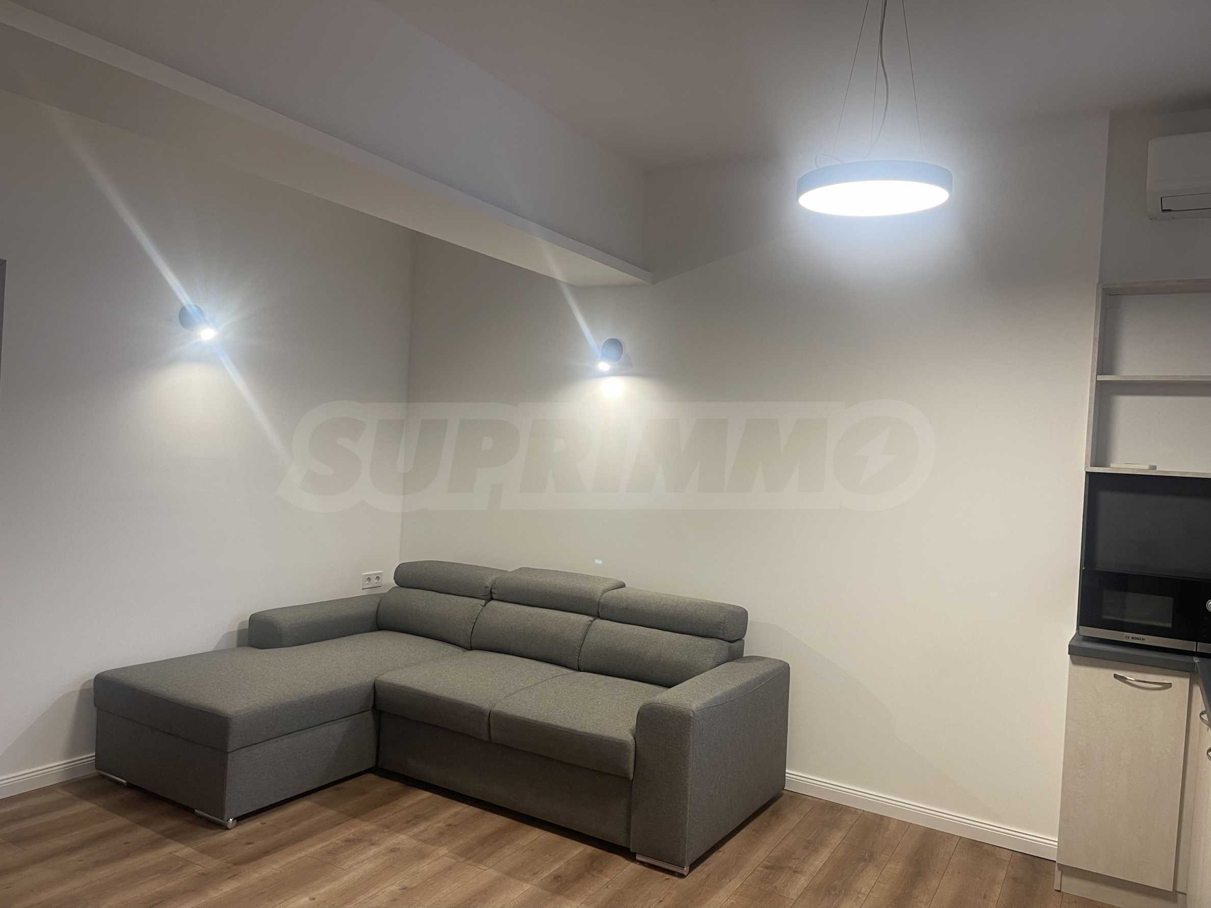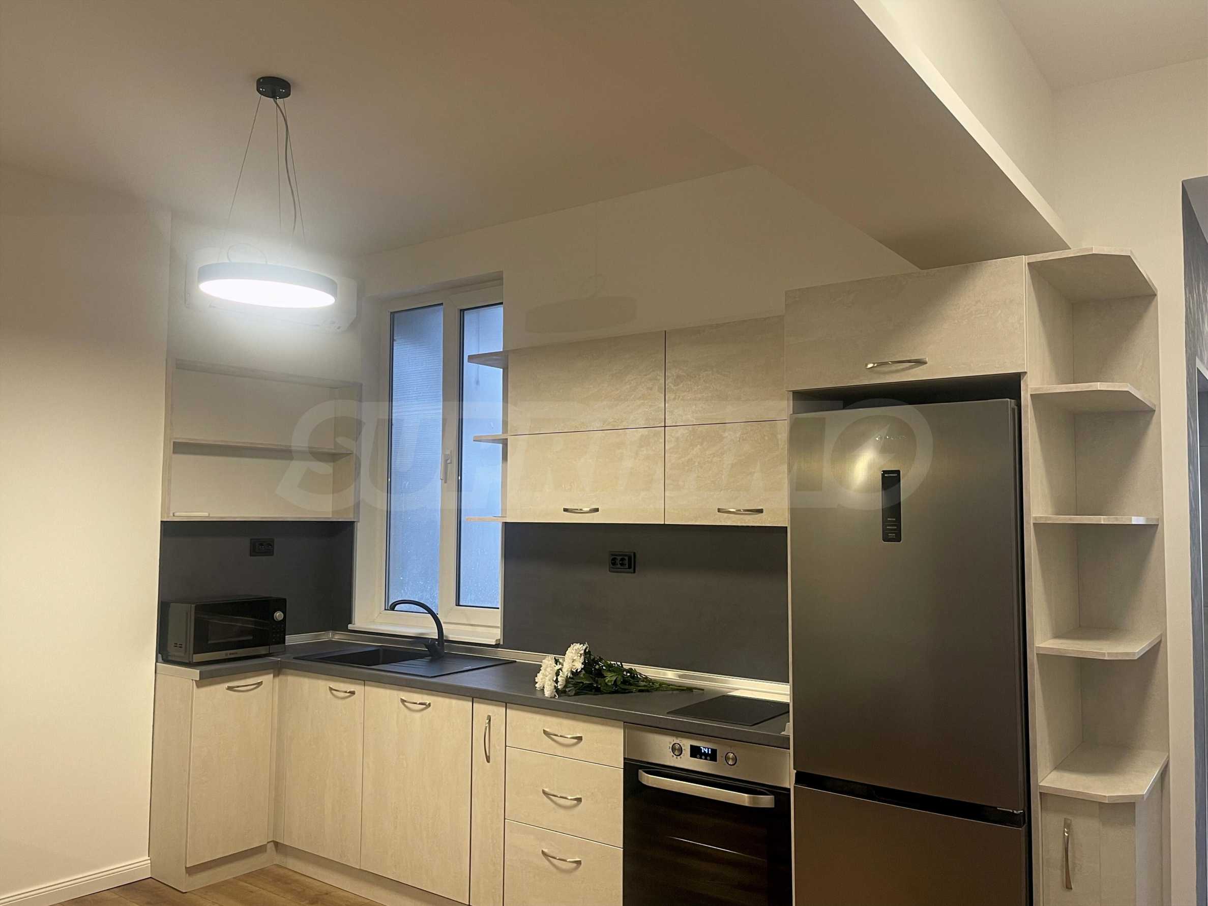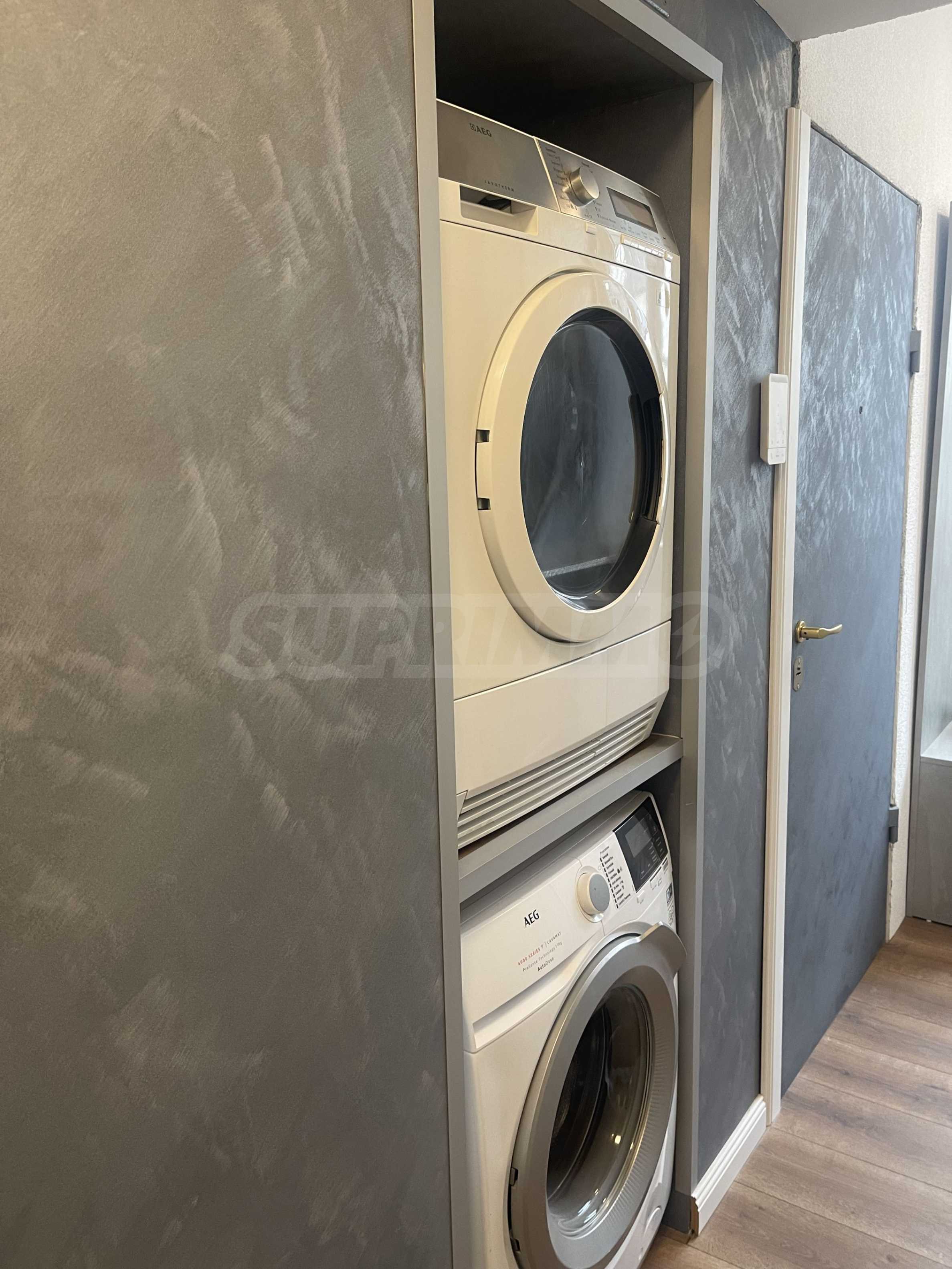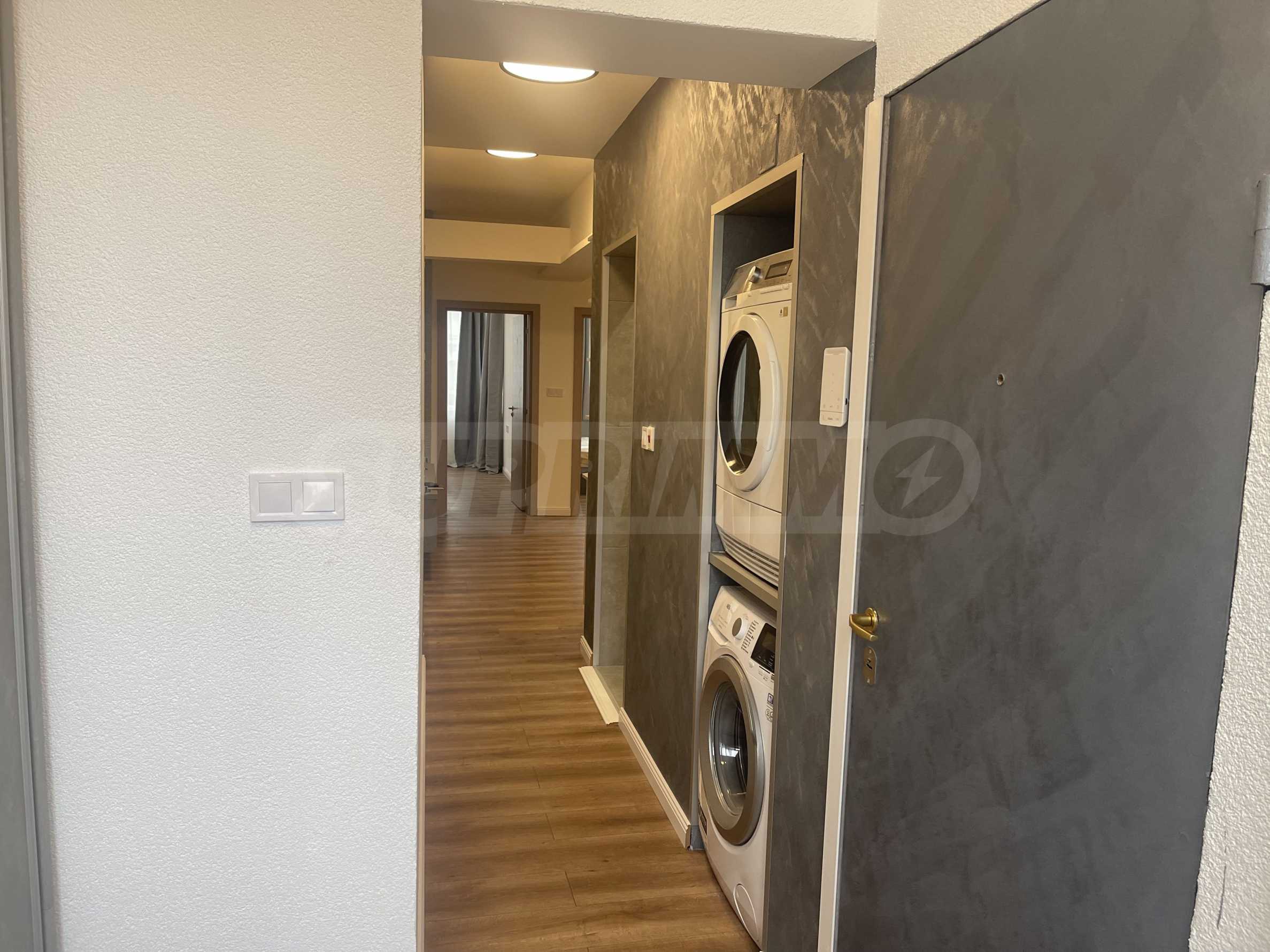 Mieszkanie przeszło gruntowny remont i jest stylowo i funkcjonalnie umeblowane nowymi meblami i sprzętem AGD, gotowe do natychmiastowego zamieszkania - kuchenka, pralka i suszarka, lodówka, telewizor itp. Ogrzewanie i chłodzenie zapewniają klimatyzatory w każdym pomieszczeniu.