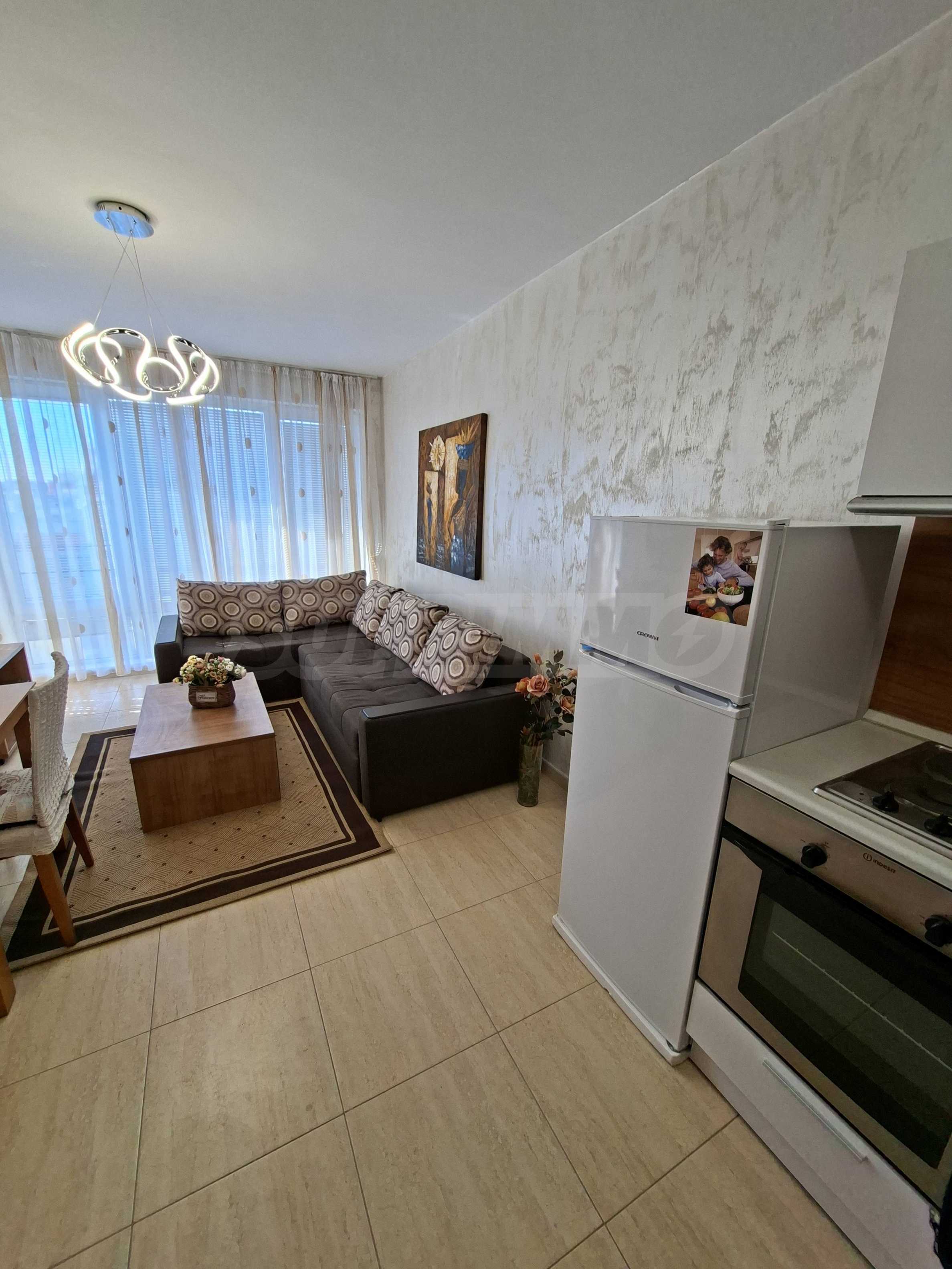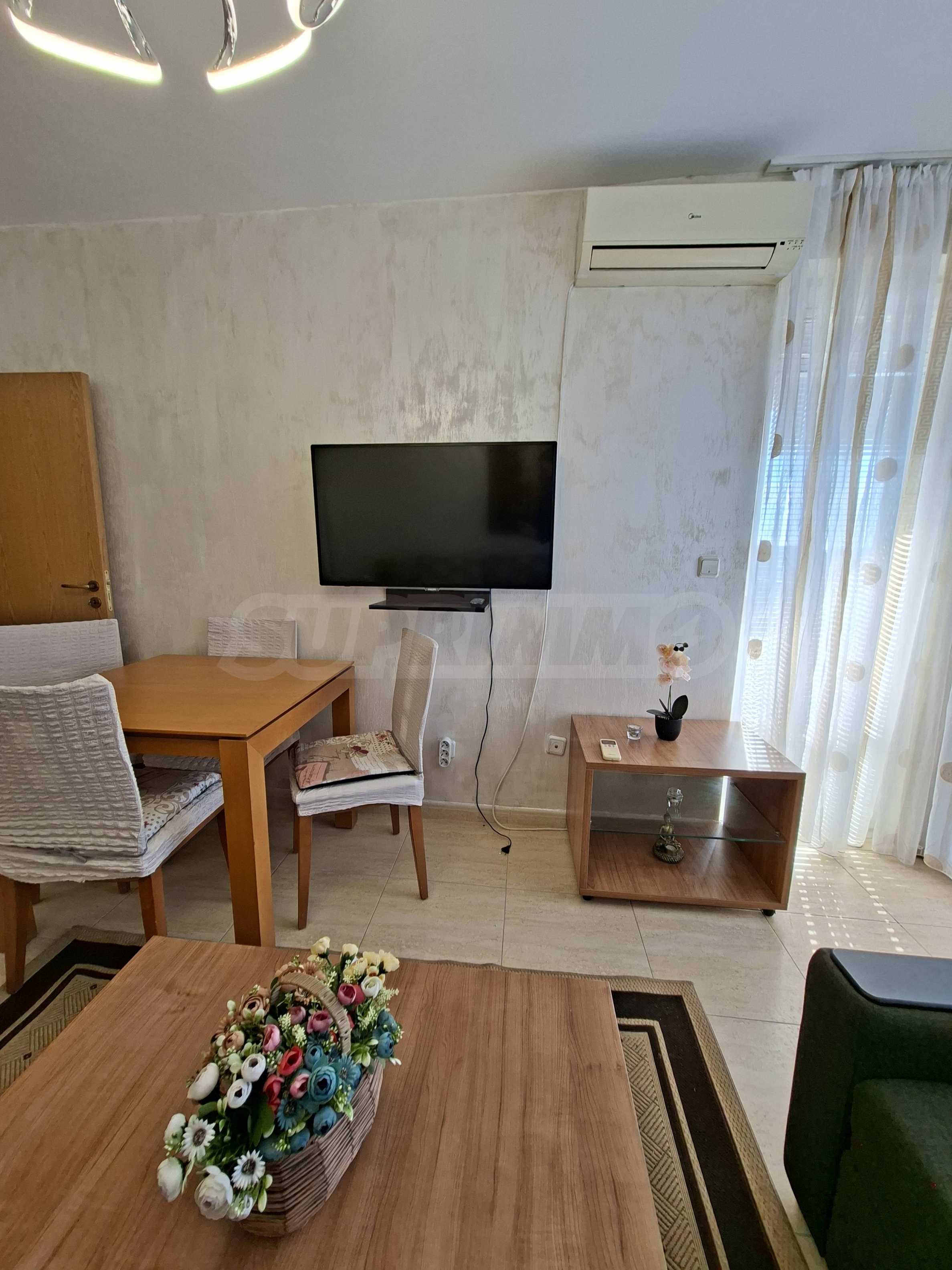 Oferujemy na sprzedaż przytulne i komfortowo umeblowane mieszkanie z jedną sypialnią, położone na ogrodzonym osiedlu w cichej i spokojnej części Słonecznego Brzegu.
