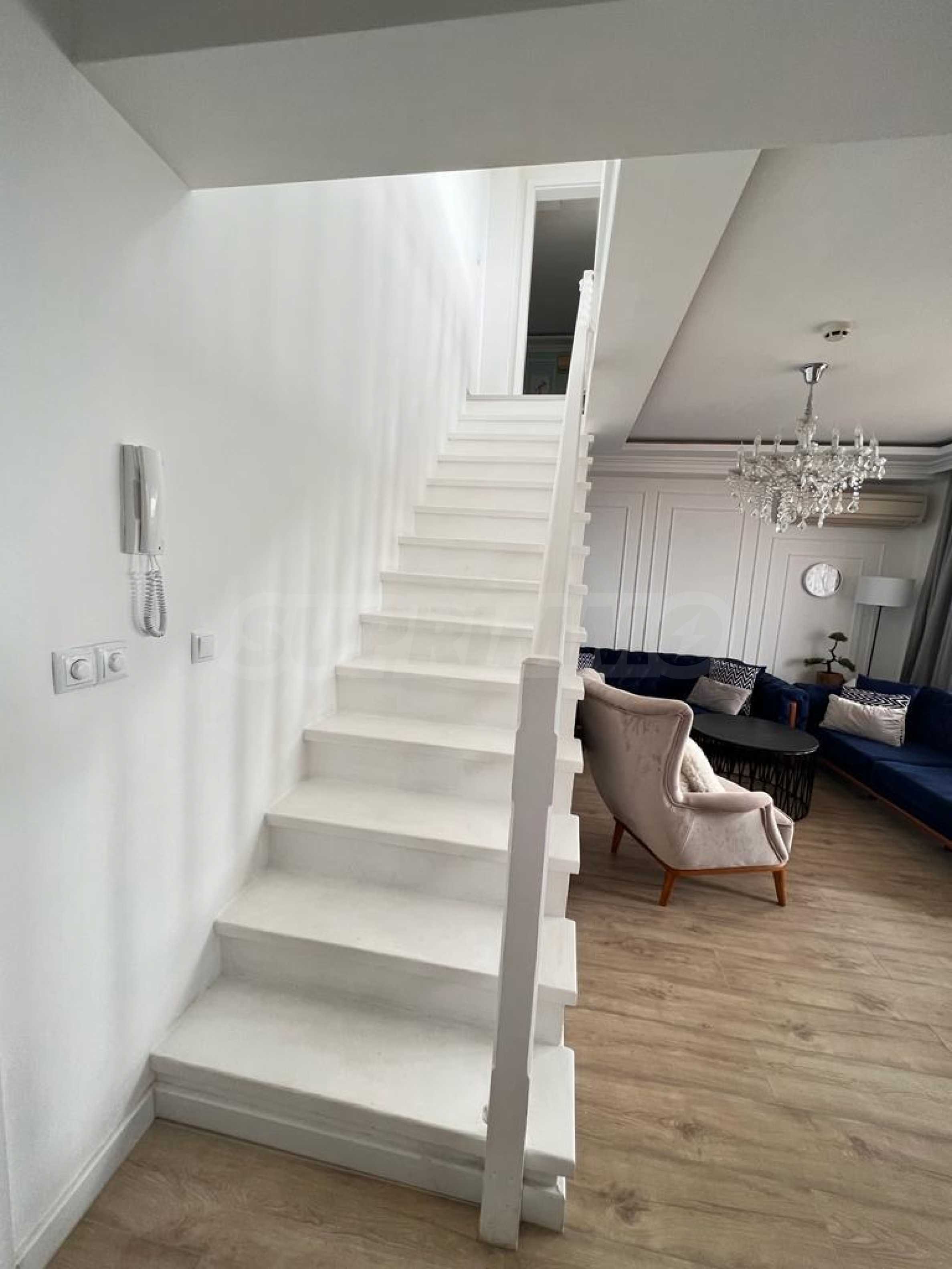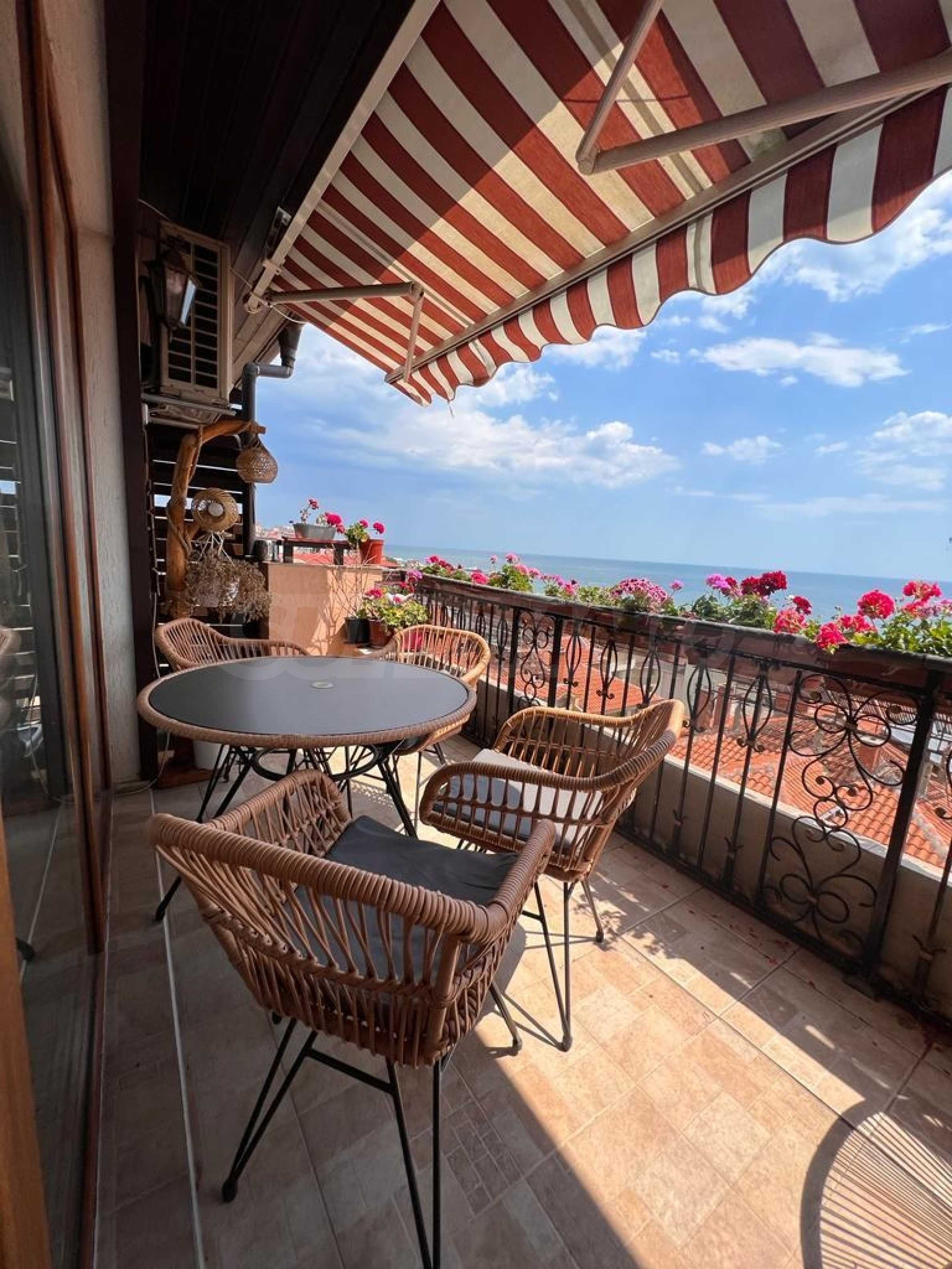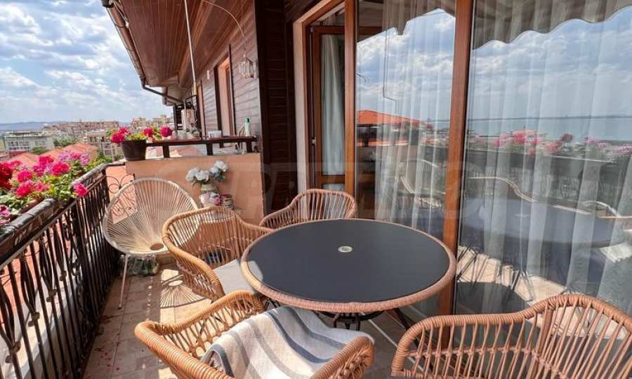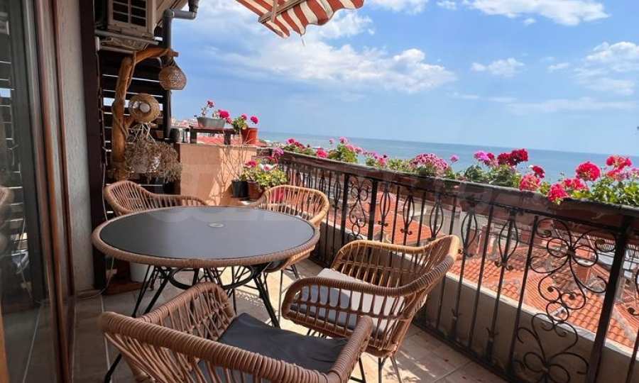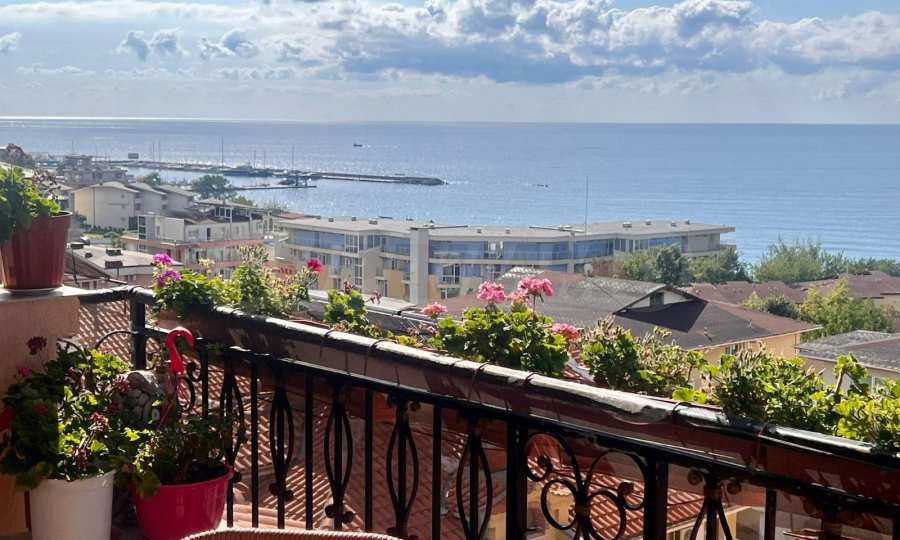 Oferujemy na sprzedaż trzypokojowy apartament typu maisonette z przepięknym widokiem na morze, położony w ogrodzonym kompleksie w malowniczym kurorcie Sveti Vlas. 150 metrów od plaży i w odległości spaceru od sklepów, restauracji, przystanku autobusowego, portu jachtowego Marina Dinevi i innych udogodnień.