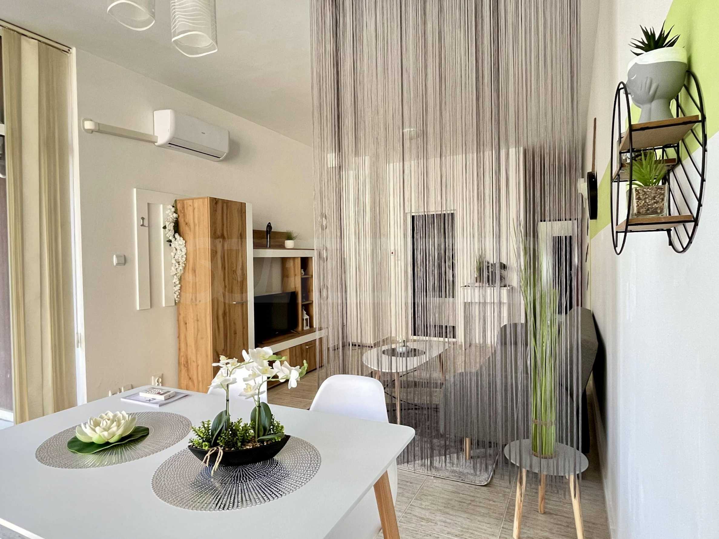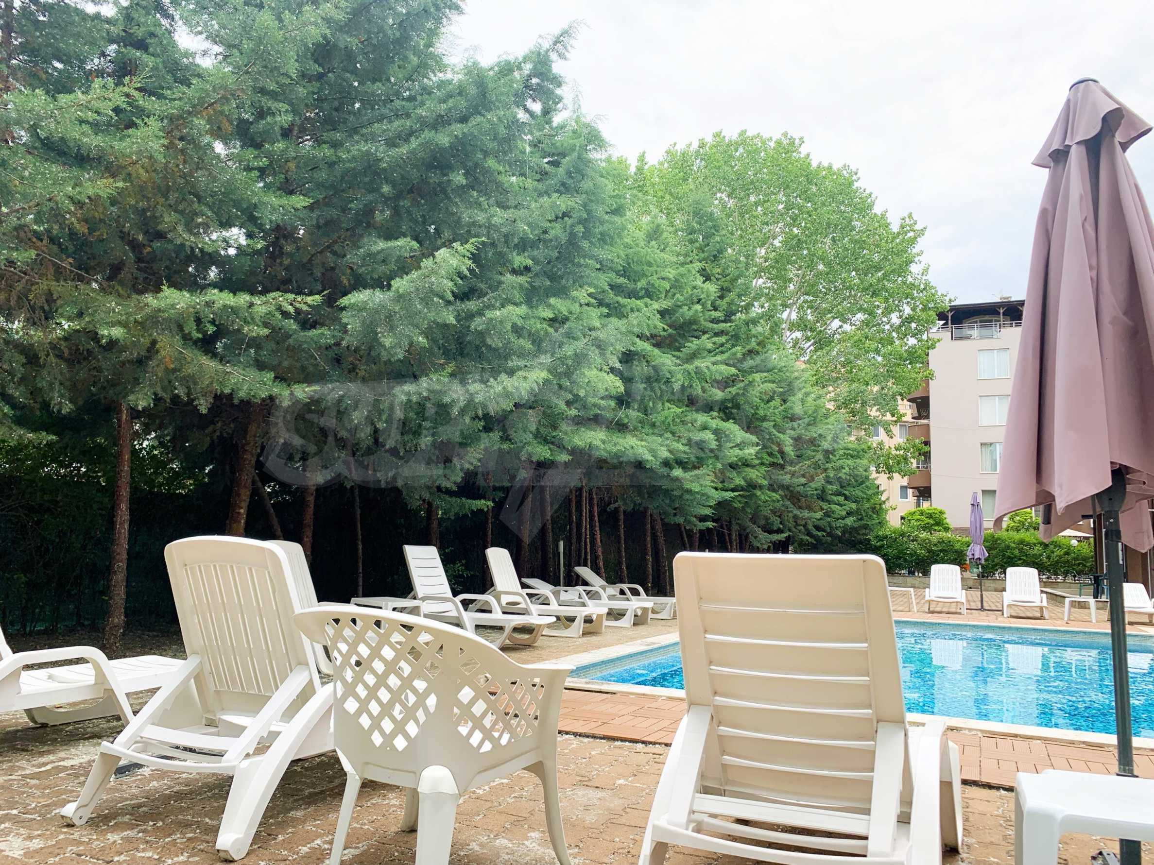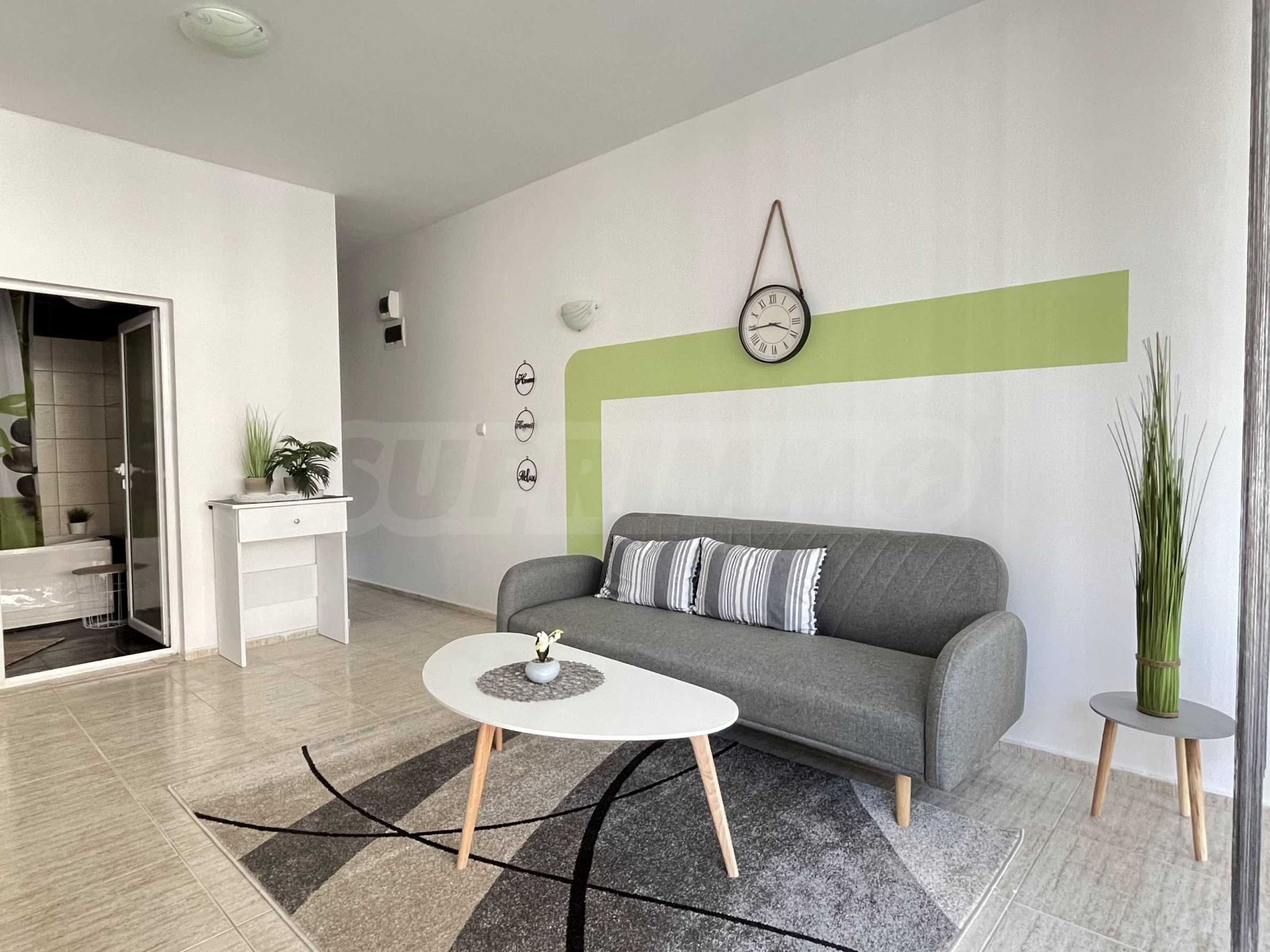 Oferujemy Państwu ekskluzywną ofertę sprzedaży nowoczesnego, jednopokojowego mieszkania w całorocznym kompleksie z basenem w okolicy Cacao Beach w Słonecznym Brzegu.