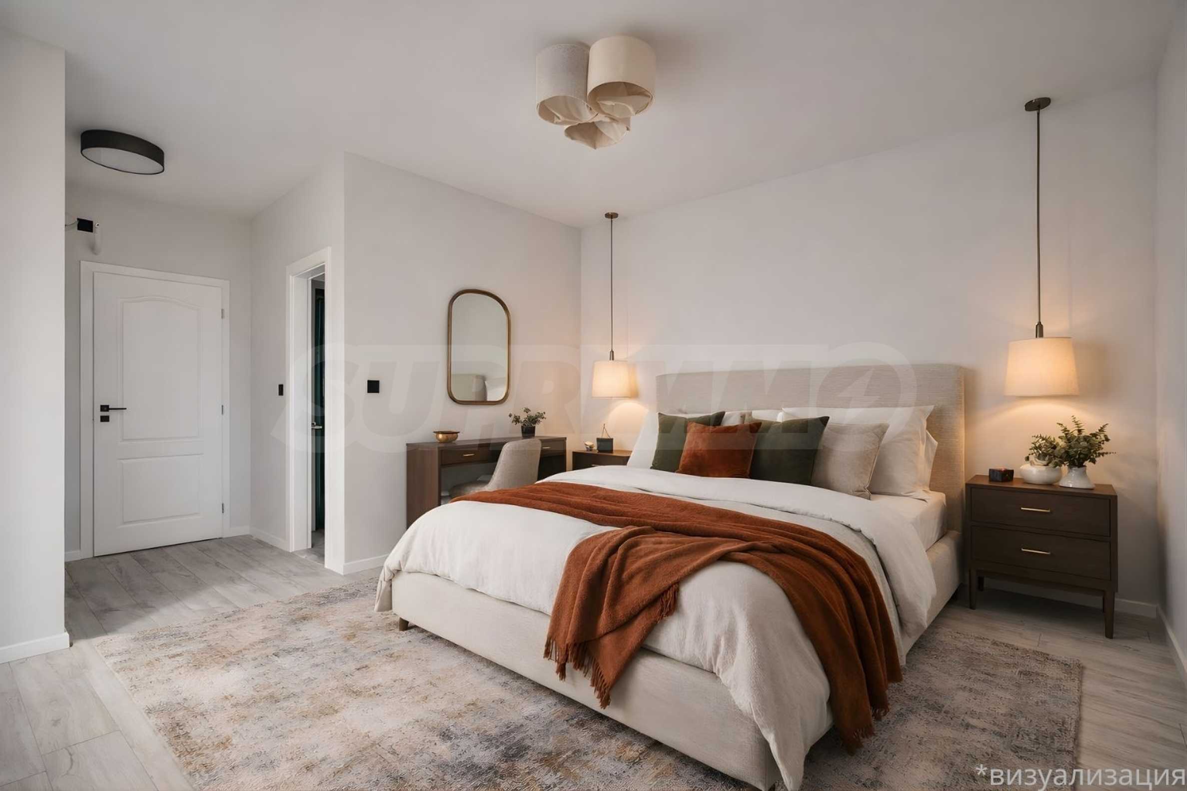 • dwie duże sypialnie o powierzchni 22 m2, każda z własną łazienką z toaletą (en suite) i wnęką na własną garderobę;