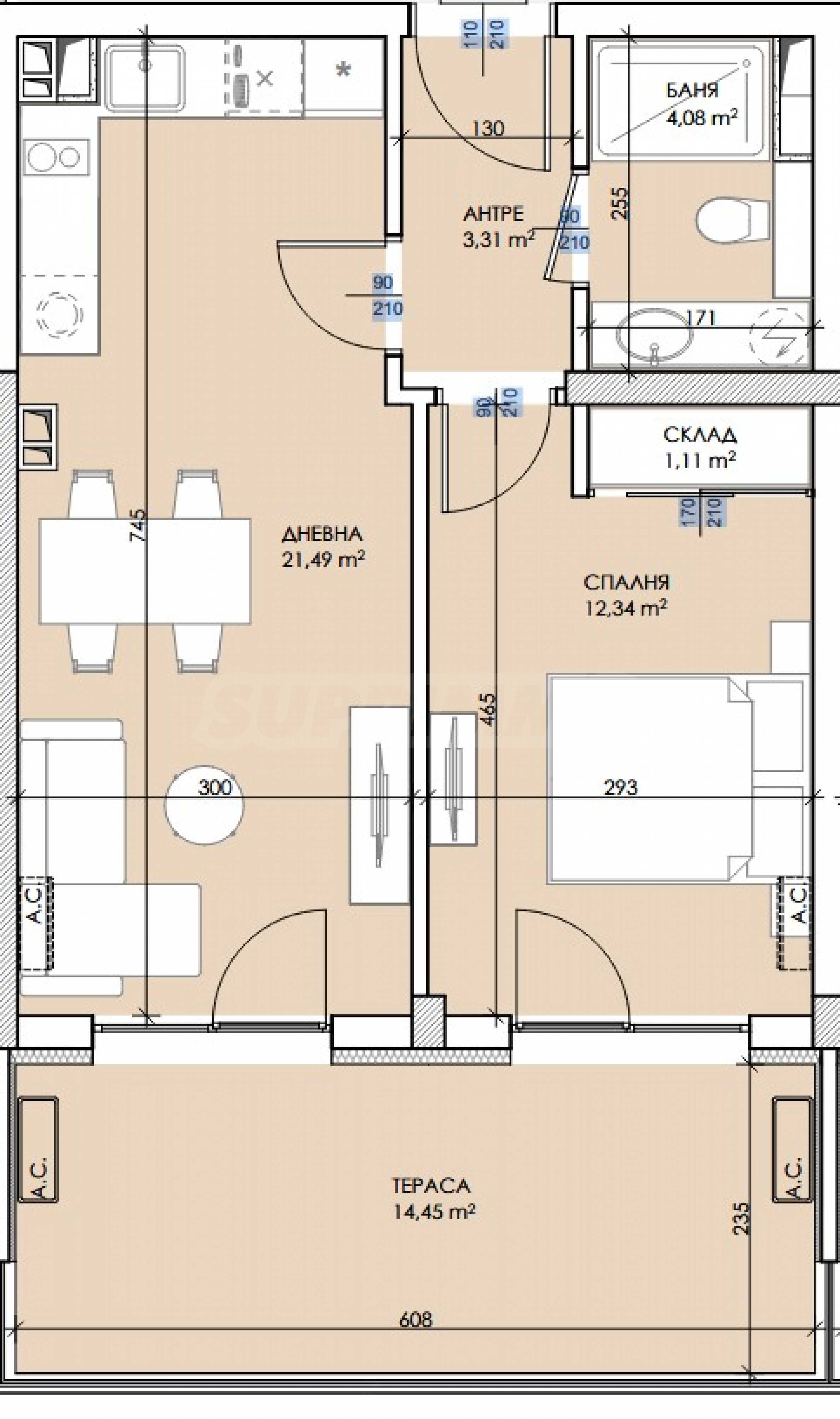 Mieszkanie wynajmowane jest w następującym stopniu wykończenia zgodnie z bułgarskim kodeksem cywilnym: