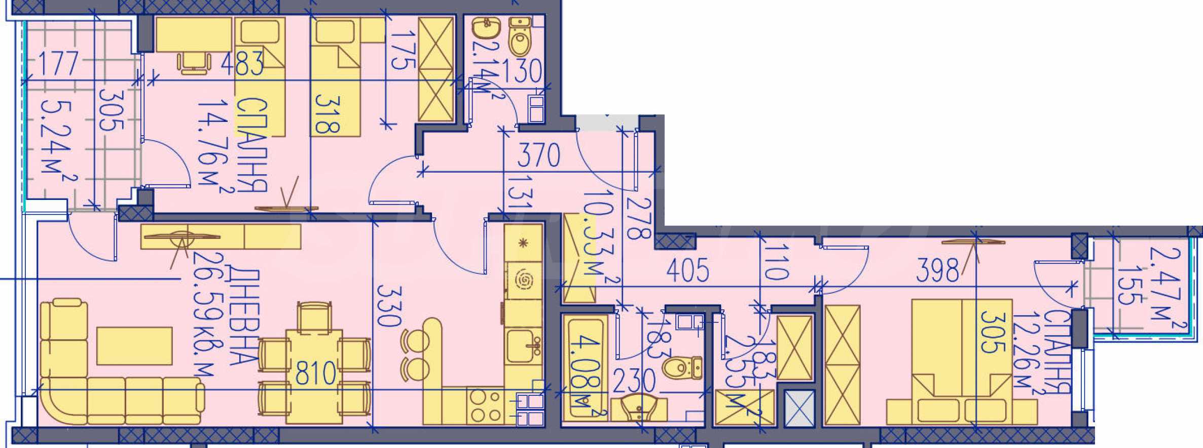 Mieszkanie sprzedawane jest w stanie wykończonym zgodnie z bułgarskimi normami budowlanymi, z tynkiem i wylewką.