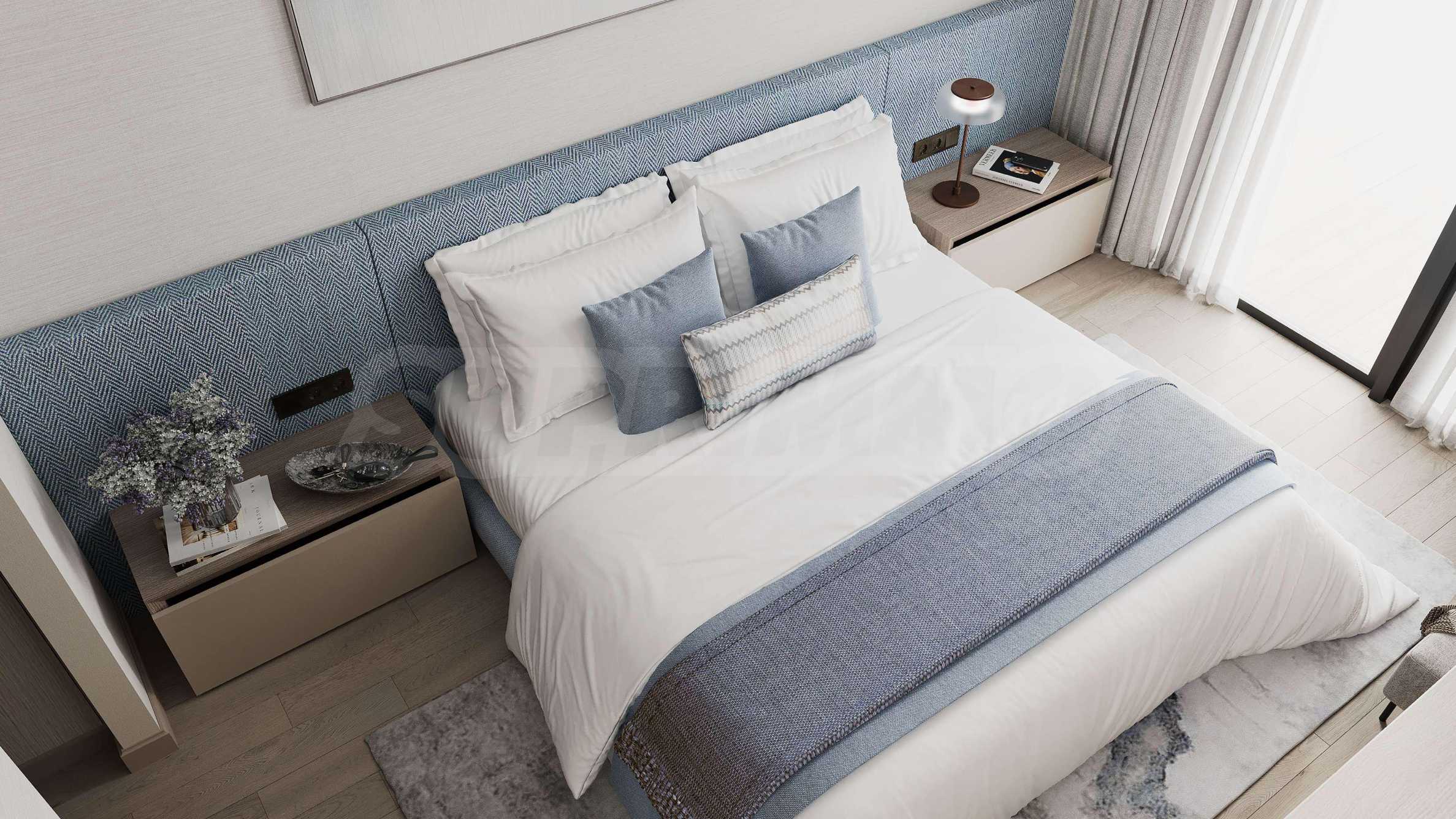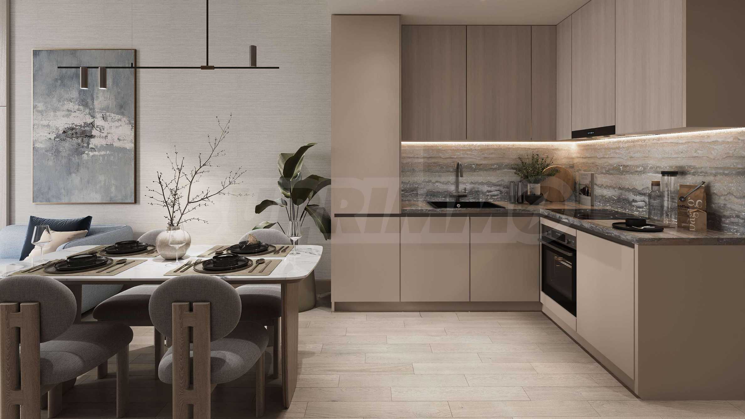 Prezentujemy stylowy i przestronny apartament z dwiema sypialniami o łącznej powierzchni 103,21 m², zaprojektowany z dbałością o funkcjonalność i komfort. Układ obejmuje jasny salon z kuchnią i jadalnią, dwie sypialnie z łazienkami, toaletę dla gości oraz słoneczny taras. Panoramiczne okna od podłogi do sufitu i wysokie sufity zapewniają mnóstwo naturalnego światła, podkreślając wrażenie przestronności i lekkości w każdym pomieszczeniu.