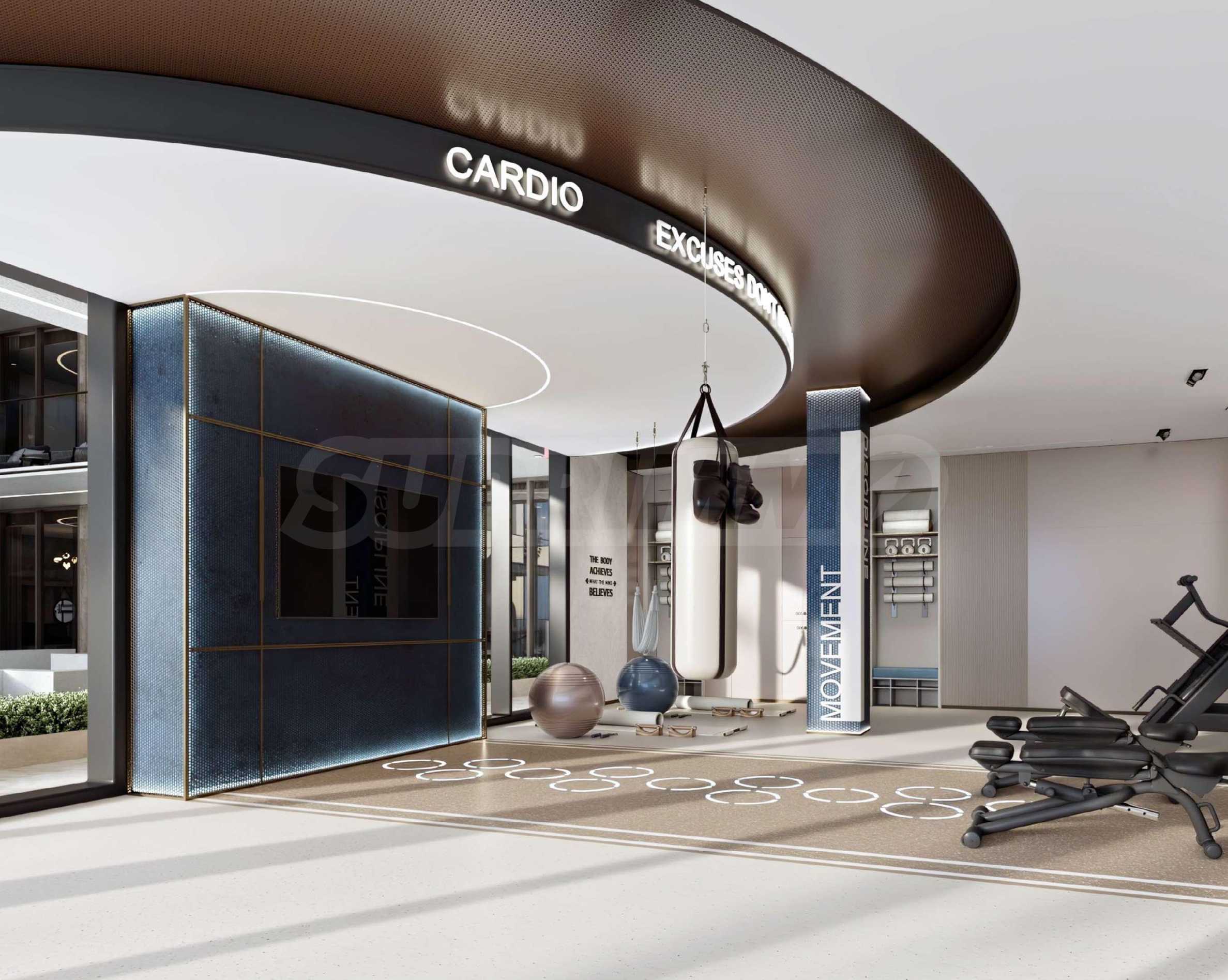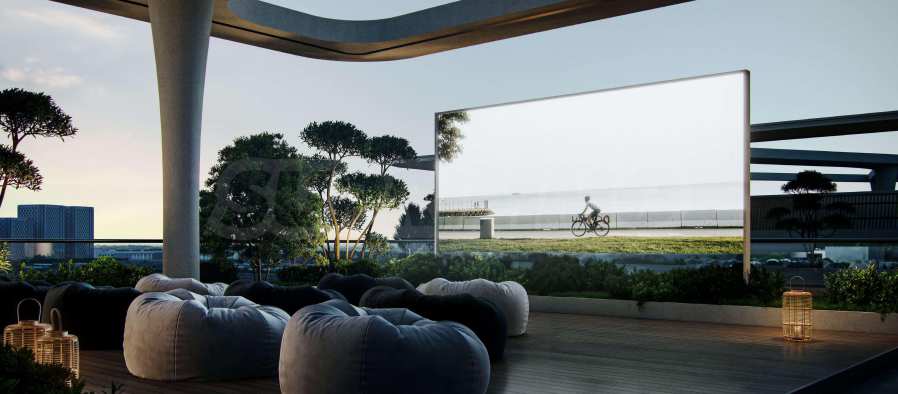 Przestrzeń zewnętrzna obejmuje basen dla dorosłych i dzieci, uzupełniony strefami relaksu i rekreacji. Bogato zagospodarowane podium oferuje kącik do czytania, wygodne huśtawki i osobne miejsce do grillowania – idealne na chwile relaksu na świeżym powietrzu. Dla miłośników aktywnego stylu życia przygotowano w pełni wyposażoną siłownię i ścieżkę do joggingu, a dla miłośników wypoczynku i spotkań towarzyskich – kino plenerowe i wielofunkcyjną strefę wypoczynkową, dostosowaną do potrzeb współczesnego mieszkańca miasta.