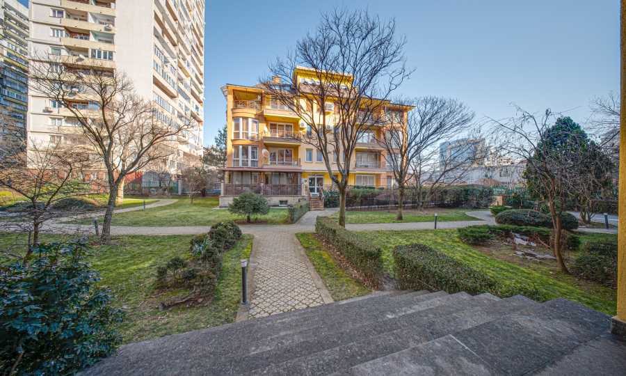 Elegancki, dwupokojowy apartament w strzeżonym kompleksie w dzielnicy Borovo, w pobliżu Bulwaru Bułgarskiego. Okolica ta jest jedną z najchętniej wybieranych do zamieszkania, oferując spokojną atmosferę, pełną zieleni i otwartych widoków na góry. Doskonała komunikacja miejska i dojazd do najpopularniejszych punktów zajmuje zaledwie kilka minut. Główne drogi to Bulwar Bułgarski, ul. Todora Kableshkova i Bulwar Gotse Delcheva. W pobliżu znajdują się centrum handlowe Bulgaria Mall, duży oddział sieci handlowej Billa, sklep Jumbo oraz biura z branży usługowej i komunikacyjnej. Nieruchomość jest częścią budynku z pozwoleniem na użytkowanie od 2006 roku, z zadbanymi częściami wspólnymi i windą. Kompleks, w którym znajduje się oferowana nieruchomość, oferuje piękne widoki oraz miejsca do wypoczynku i spacerów.