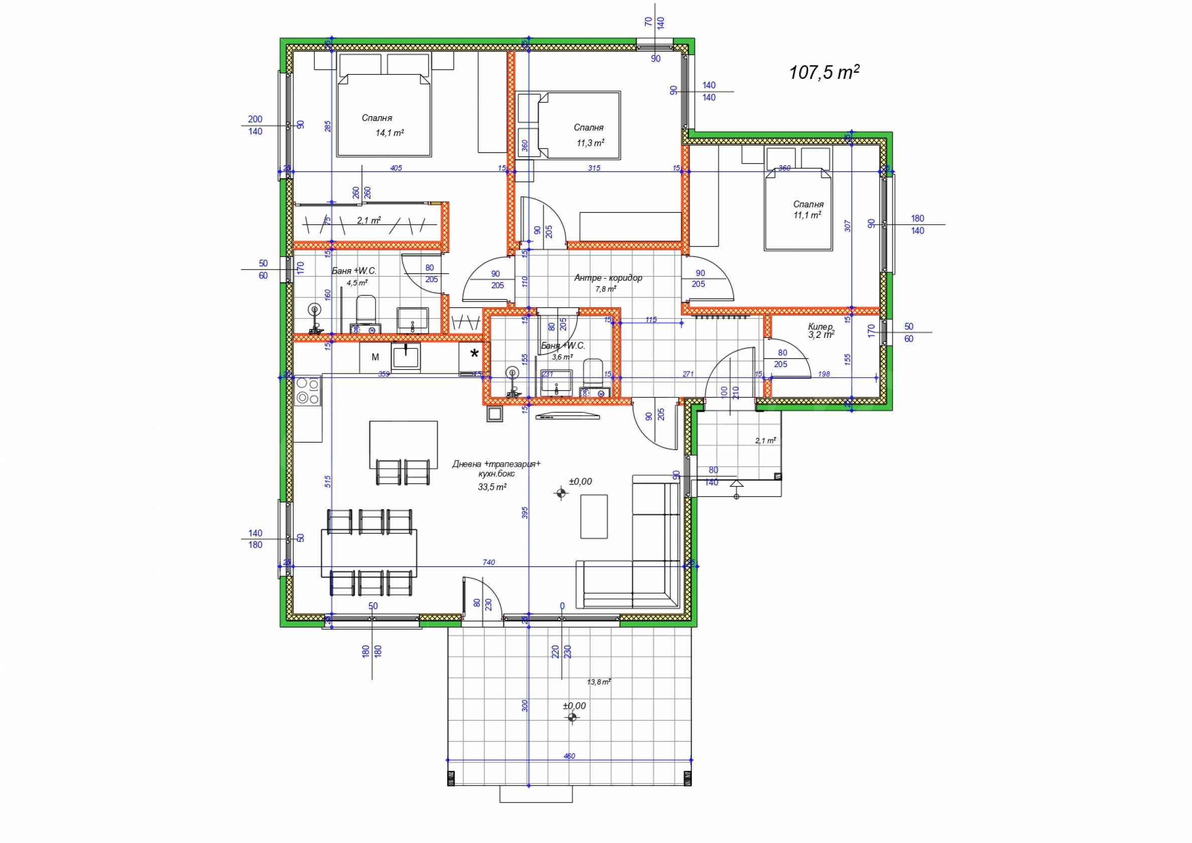 • Projekt architektoniczny domu parterowego o powierzchni całkowitej 121 m2;