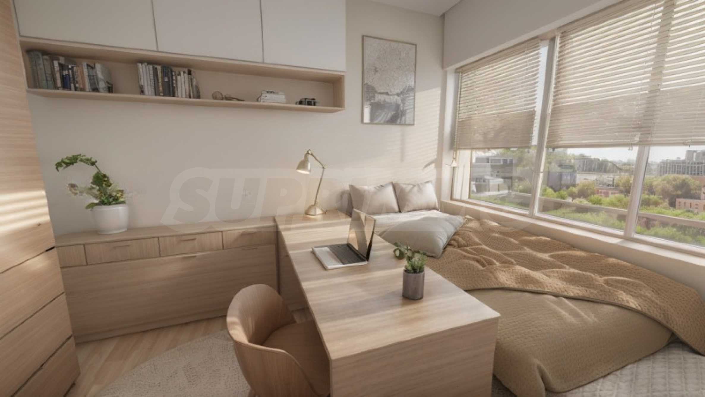 Oferujemy jasne i funkcjonalne dwupokojowe mieszkanie w nowo wybudowanym budynku, położonym w dobrze prosperującej dzielnicy „Lewski”. Lokalizacja jest dogodna i spokojna – blisko nowo wybudowanej stacji metra (550 m), przystanków komunikacji miejskiej, sklepów, centrum handlowego Fantastico, szkół i przedszkoli, z szybkim dojazdem samochodem do centrum Sofii.
