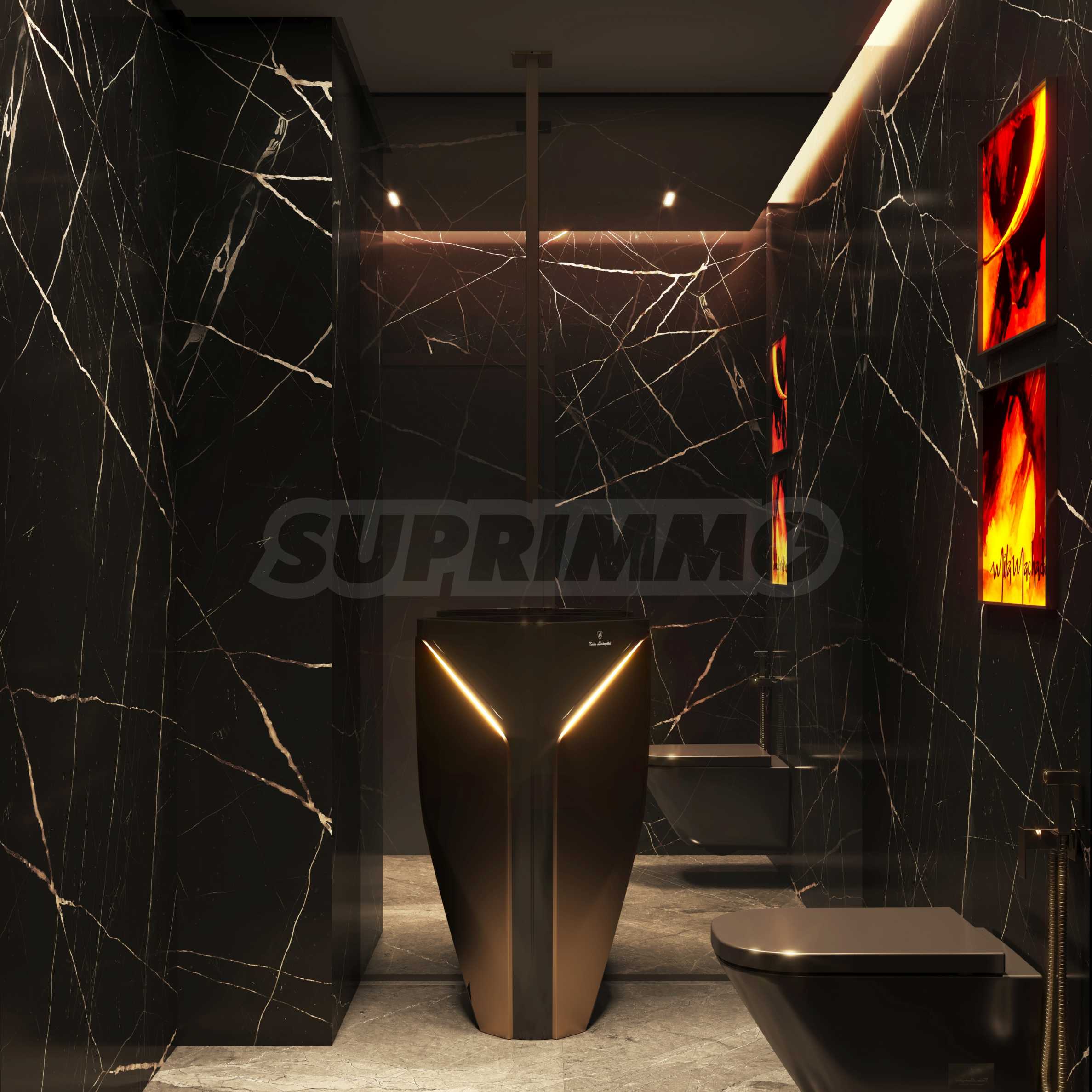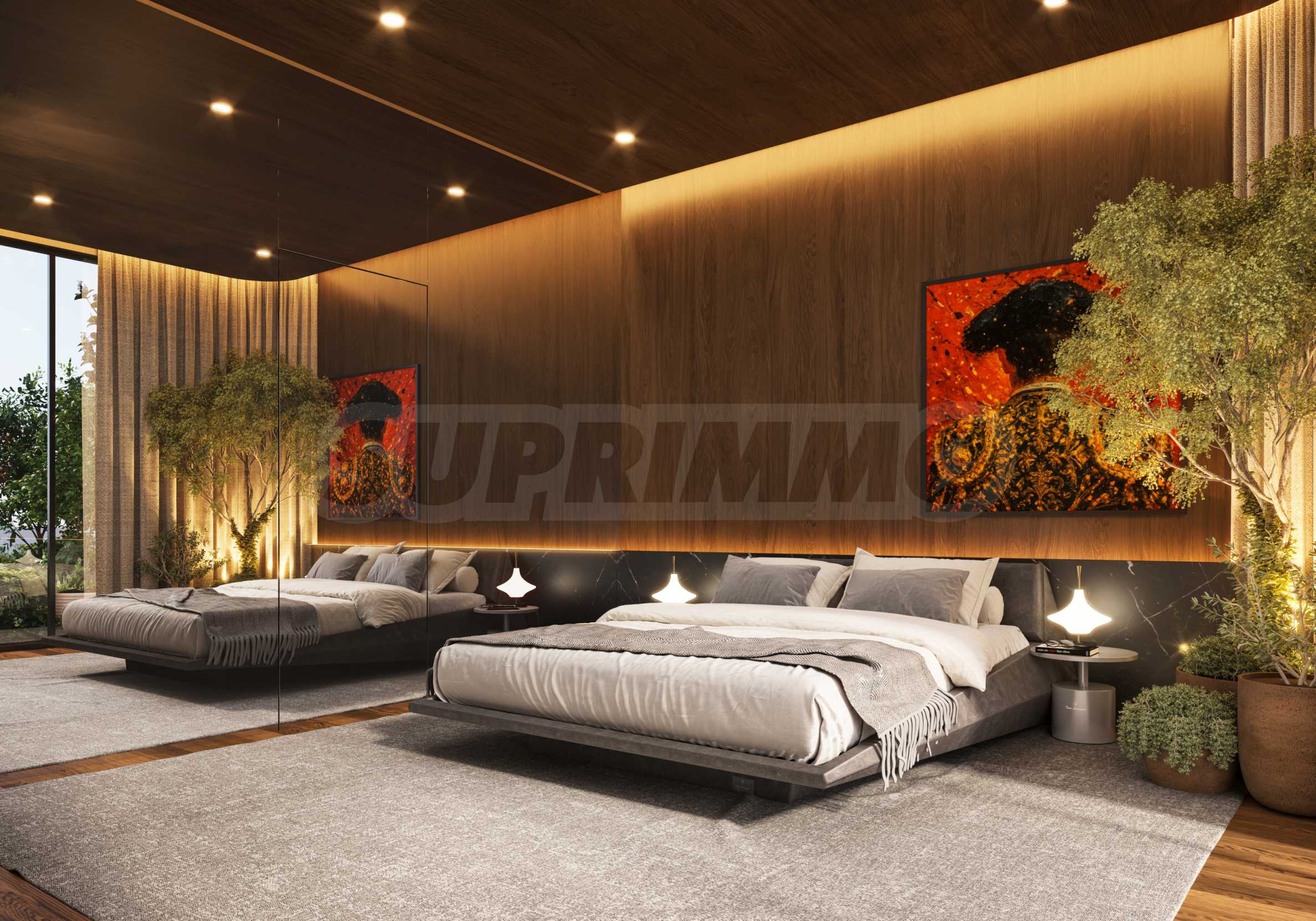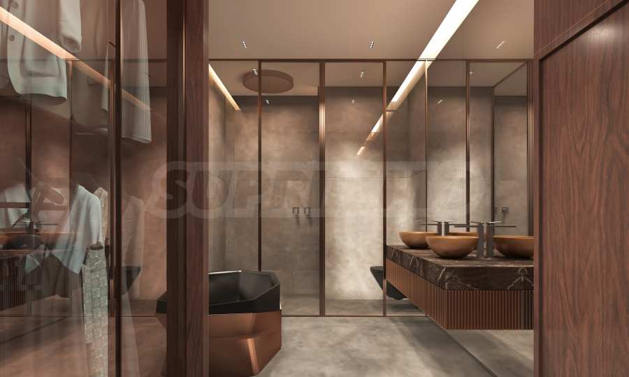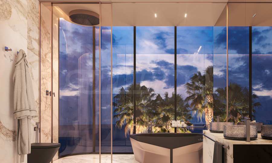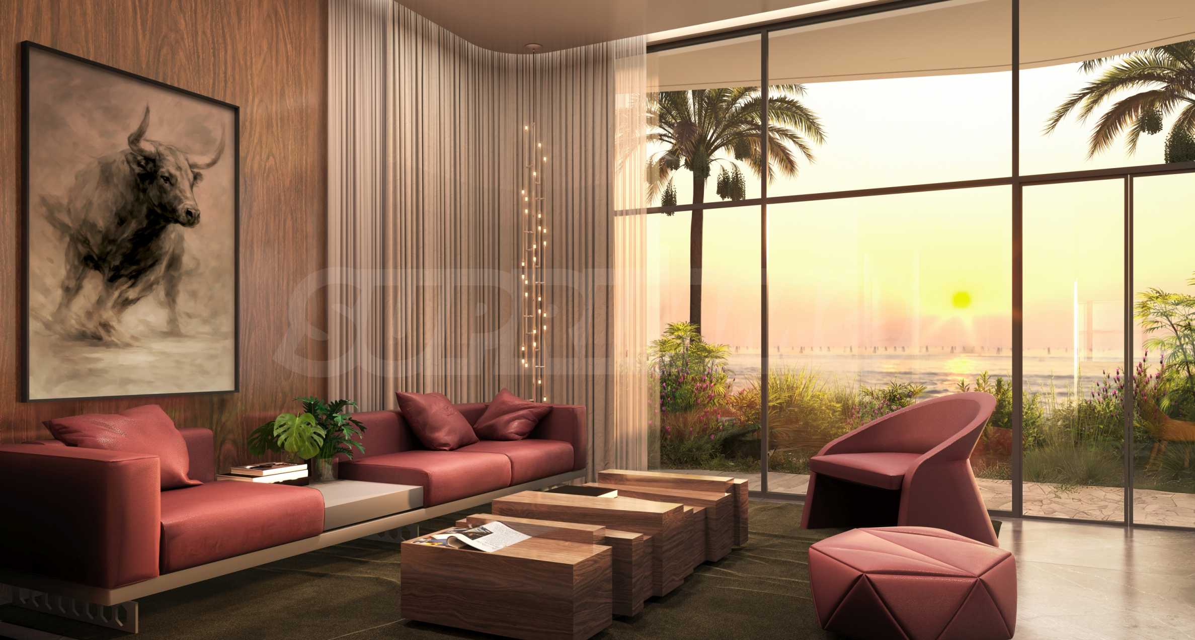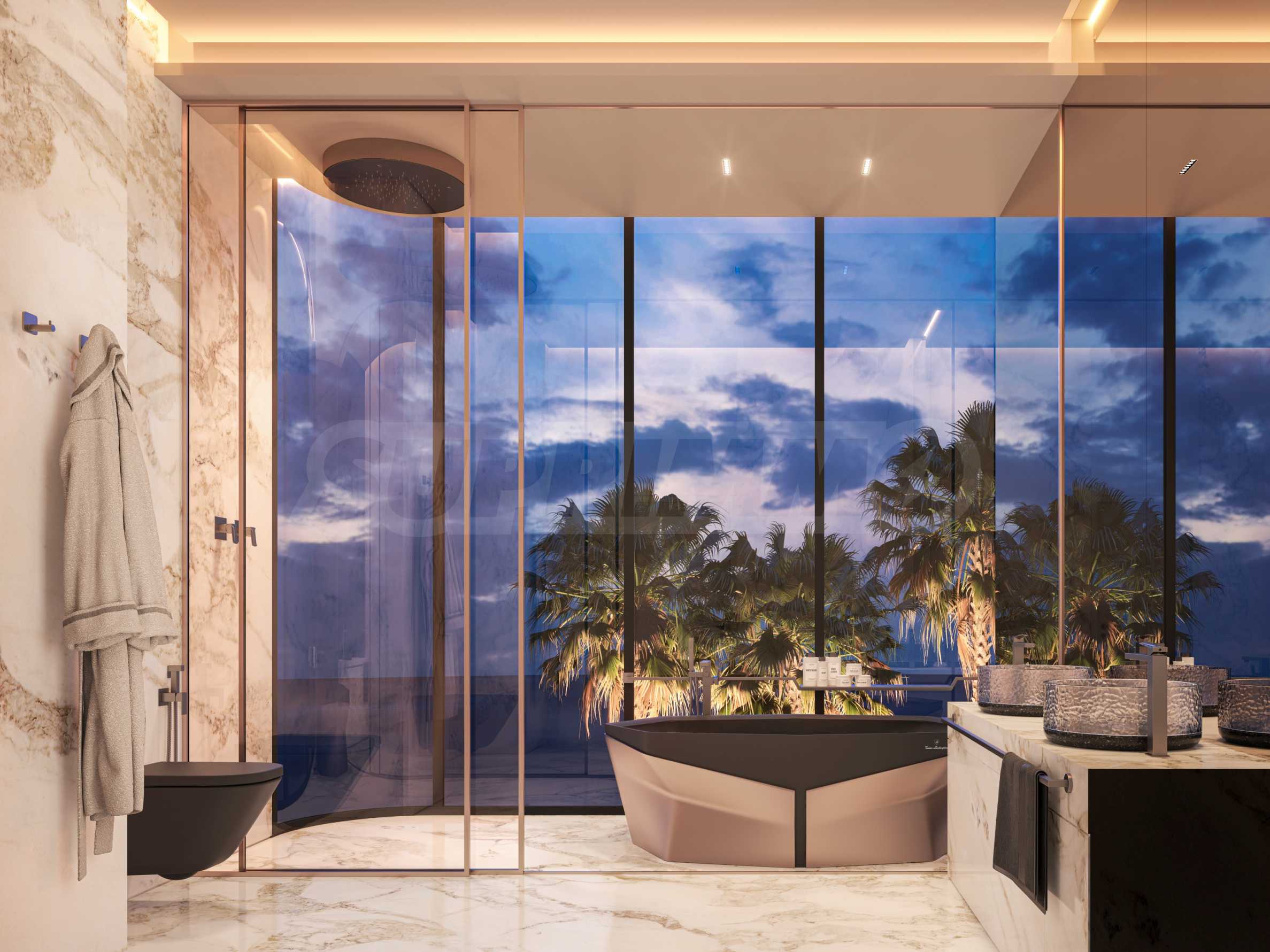 Wnętrza zaprojektowano z naciskiem na komfort akustyczny, delikatne oświetlenie i płynne przejścia między materiałami. Projekt nawiązuje do charakterystycznego stylu Tonino Lamborghini – śmiałego, precyzyjnego i eleganckiego, bez zbędnej ostentacji. Czyste linie kształtują przestronne bryły, w których światło swobodnie przemieszcza się po wytłaczanych powierzchniach i starannie dobranych wykończeniach. Ciepła, neutralna paleta barw, uzupełniona subtelnymi metalicznymi akcentami, harmonizuje z nadmorskim otoczeniem i podkreśla rozpoznawalny charakter projektu.