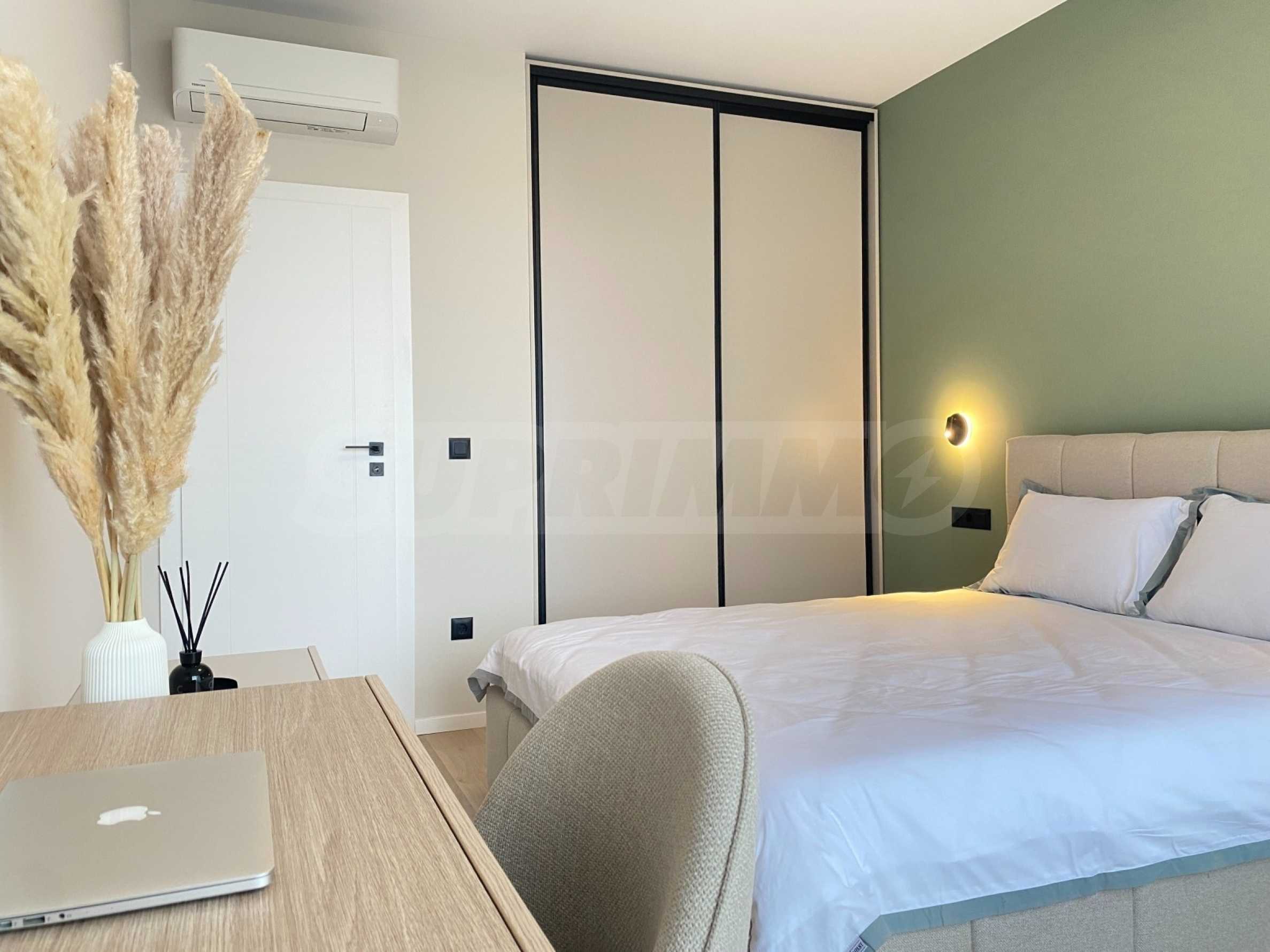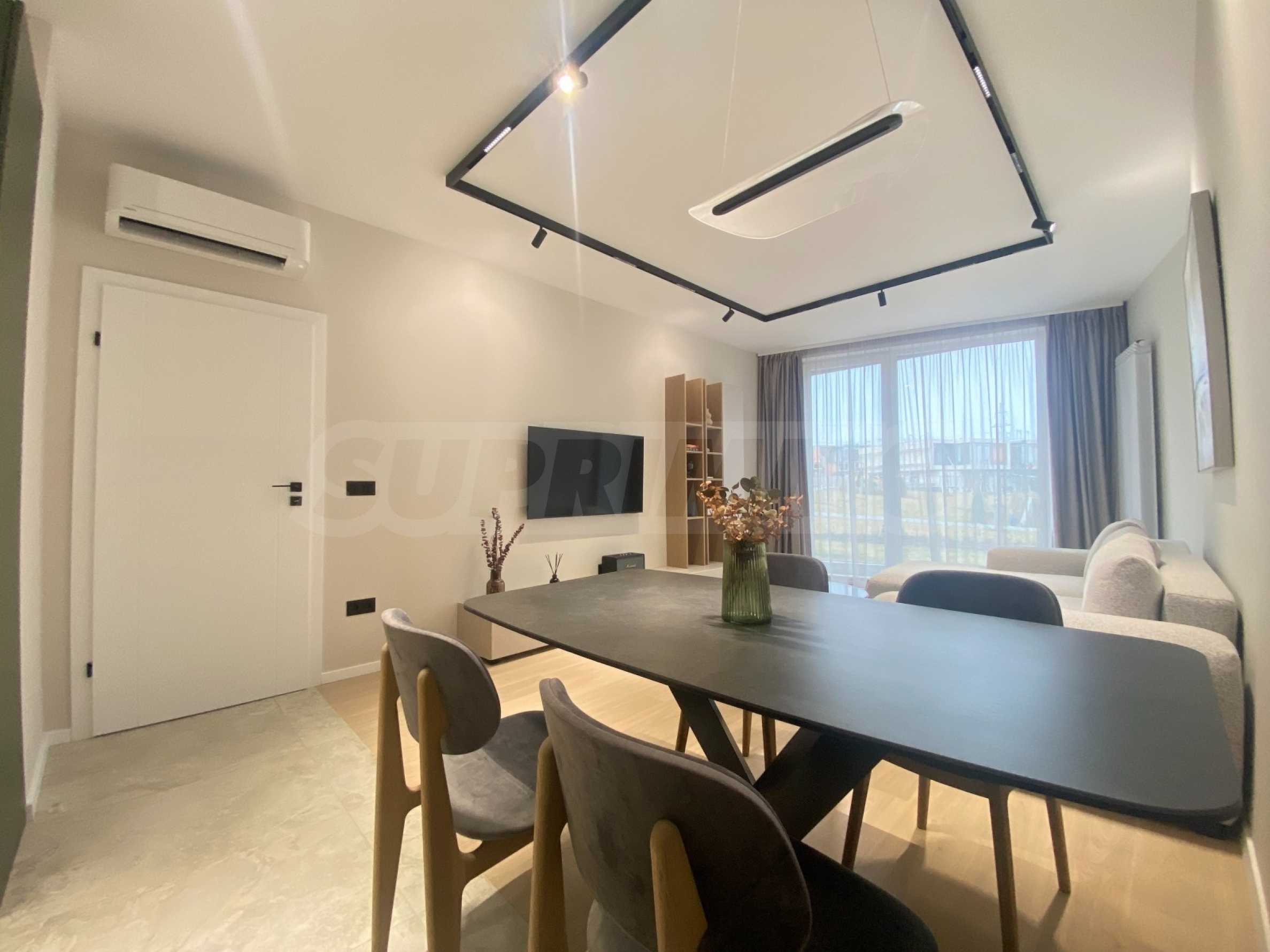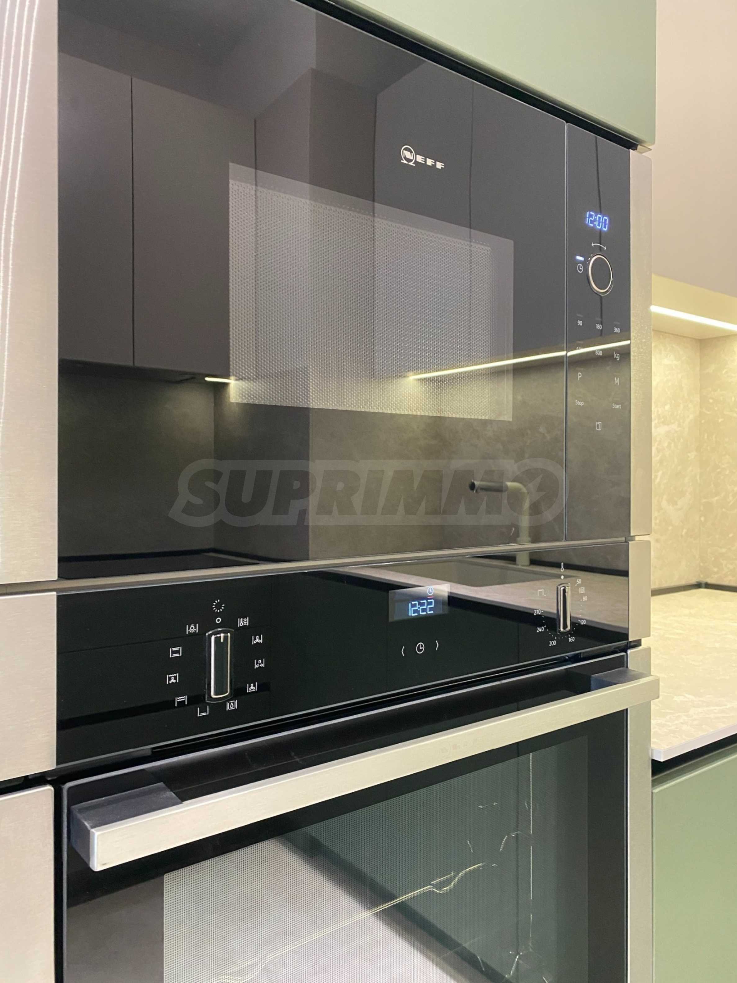 Apartament jest zupełnie nowy, niezamieszkany, urządzony z dbałością o każdy szczegół. Wnętrze jest eleganckie i nowoczesne, z meblami wykonanymi na zamówienie i wysokiej klasy sprzętem AGD marki NEFF i AEG. Ogrzewanie gazowe i klimatyzacja zapewniają doskonały komfort o każdej porze roku.