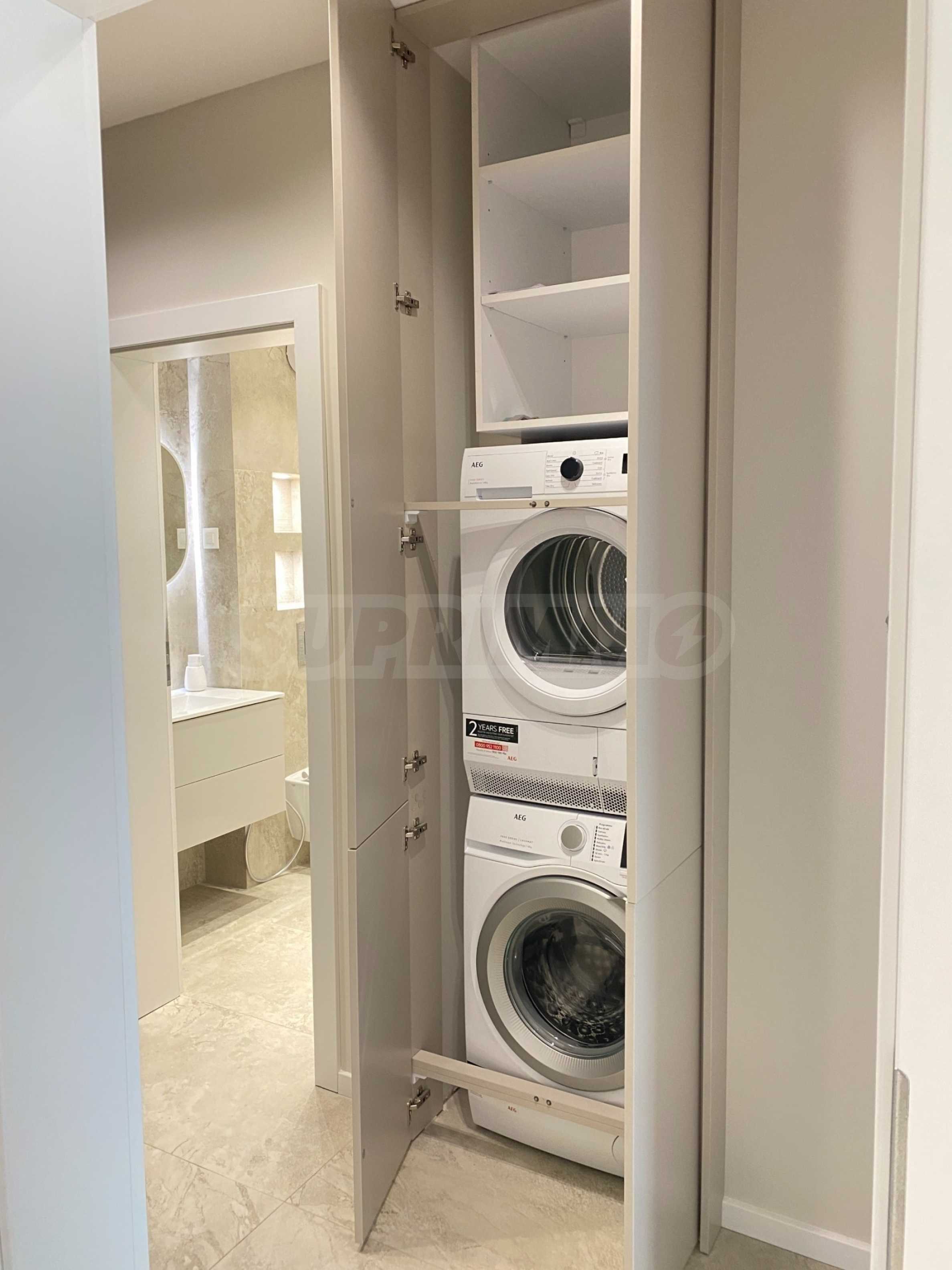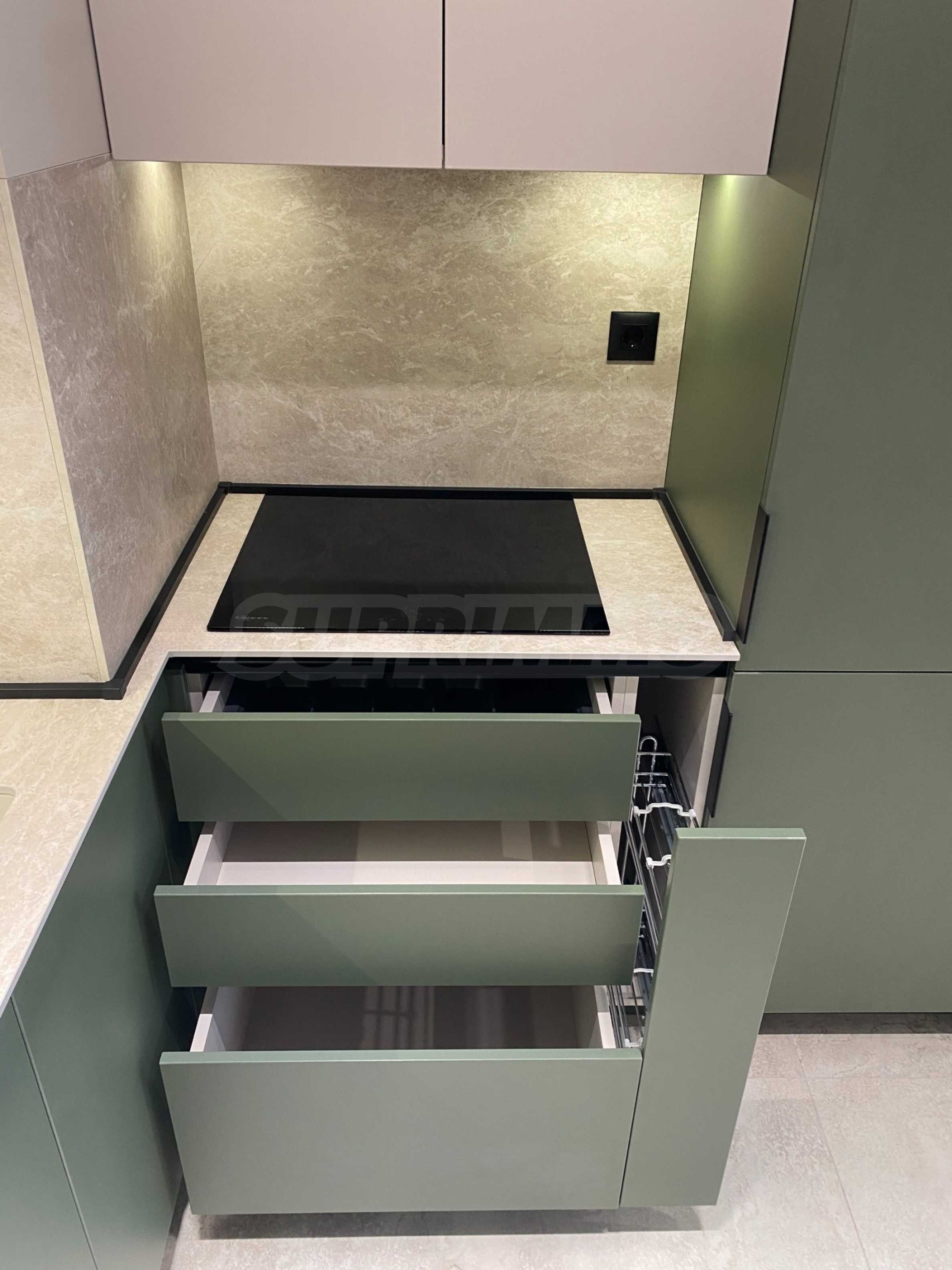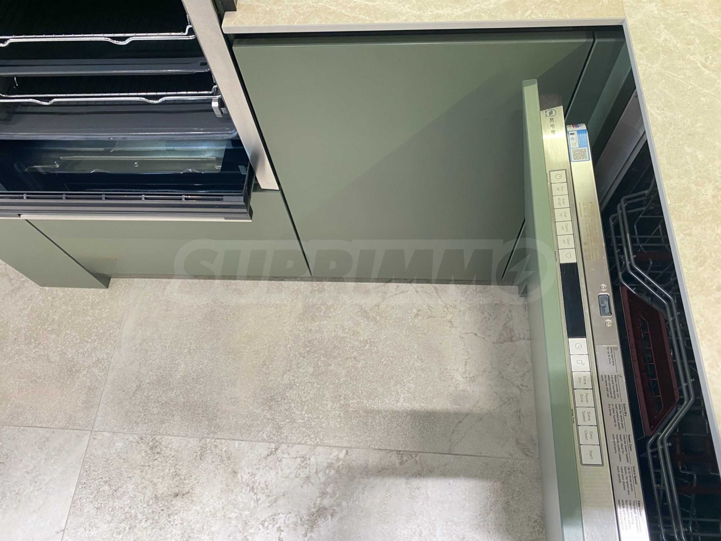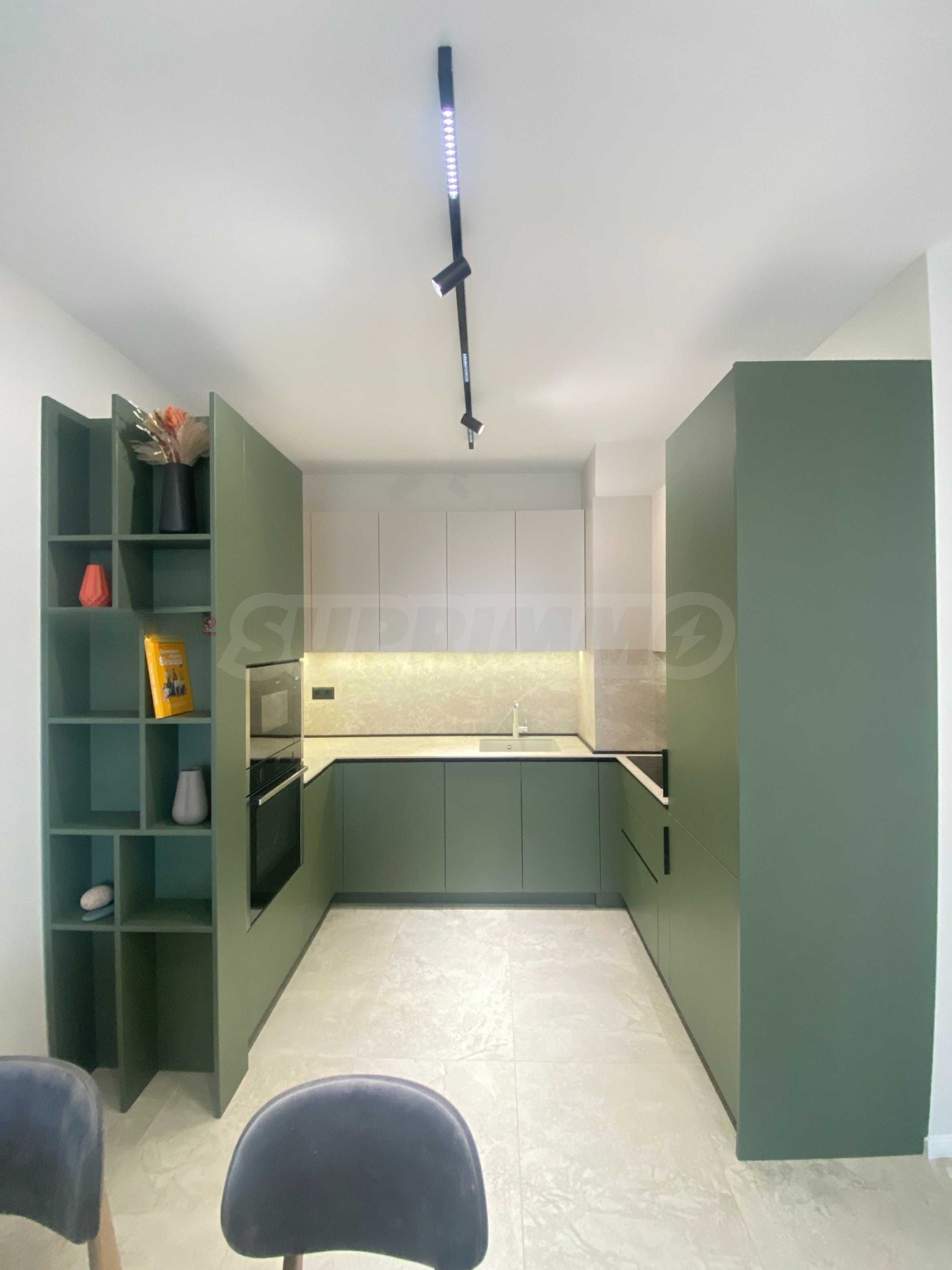 Apartament jest zupełnie nowy, niezamieszkany, urządzony z dbałością o każdy szczegół. Wnętrze jest eleganckie i nowoczesne, z meblami wykonanymi na zamówienie i wysokiej klasy sprzętem AGD marki NEFF i AEG. Ogrzewanie gazowe i klimatyzacja zapewniają doskonały komfort o każdej porze roku.