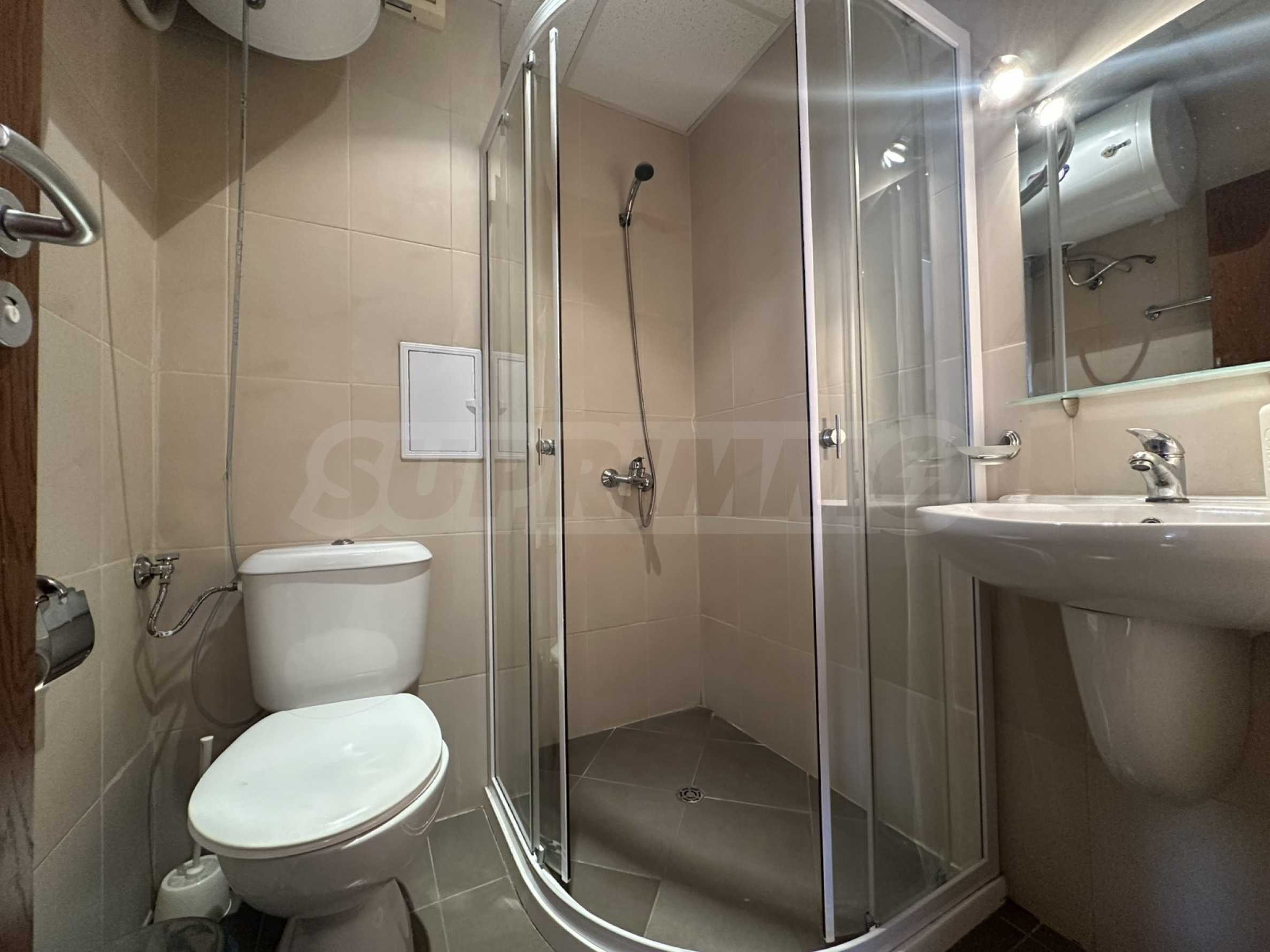 • Łazienka z kabiną prysznicową i toaletą.