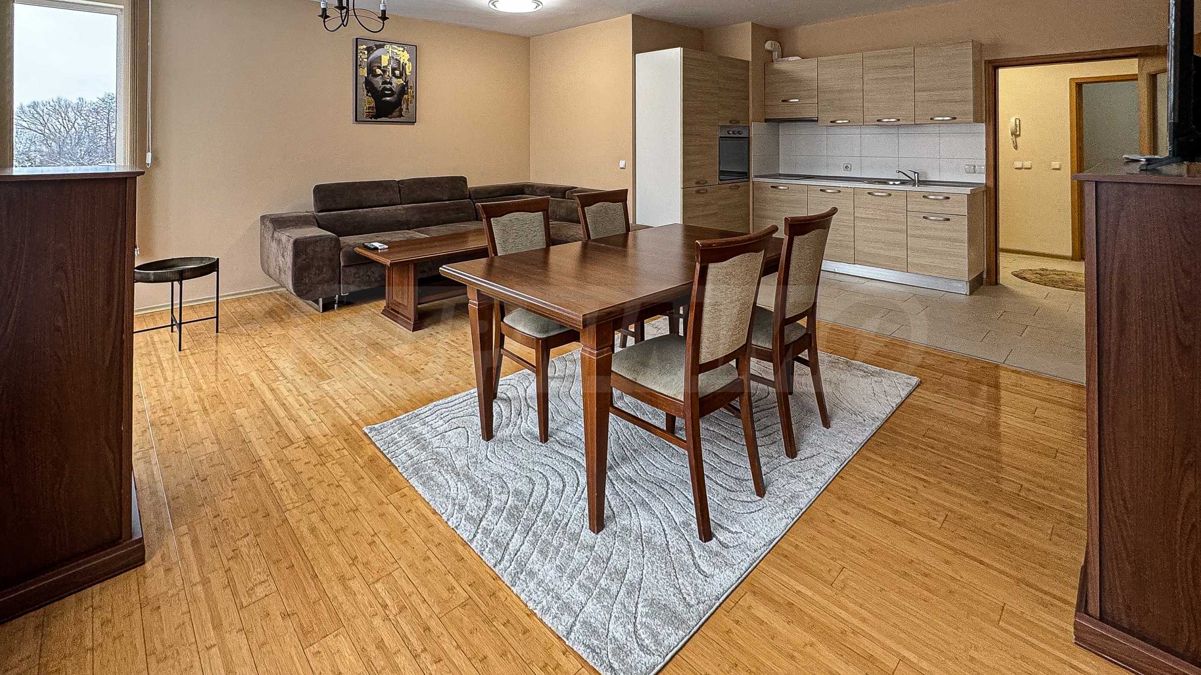 Oferujemy do wynajęcia przestronne dwupokojowe mieszkanie o powierzchni 115 mkw., zlokalizowane na ogrodzonym osiedlu z luksusowymi częściami wspólnymi w jednej z najchętniej wybieranych dzielnic stolicy - dzielnicy Dragalevtsi.