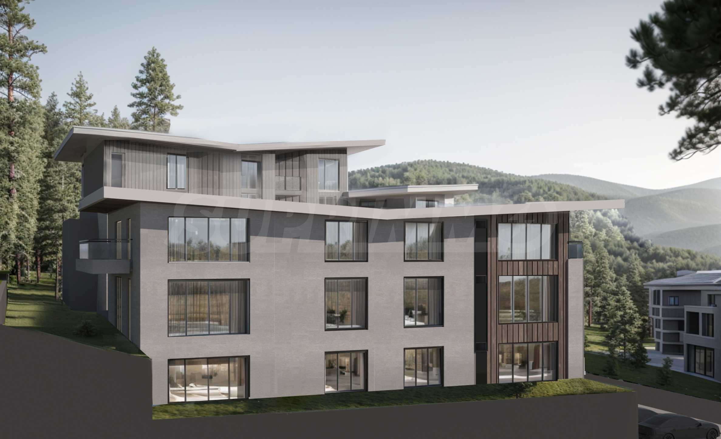 Projekt położony jest w spokojnej i zielonej okolicy, gdzie architektura została starannie wkomponowana w naturalny krajobraz. Elewacje zaprojektowane są w nowoczesnym i eleganckim stylu z czystymi liniami, przestronnymi tarasami i panoramicznymi oknami, odsłaniającymi malownicze widoki na Rodopy. Części wspólne zostaną wykonane z wysokiej klasy materiałów, a tereny przyległe – zagospodarowane z dbałością o każdy szczegół, tworząc wrażenie prywatnej rezydencji.