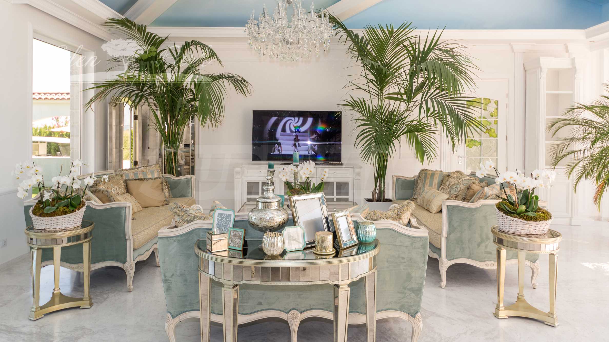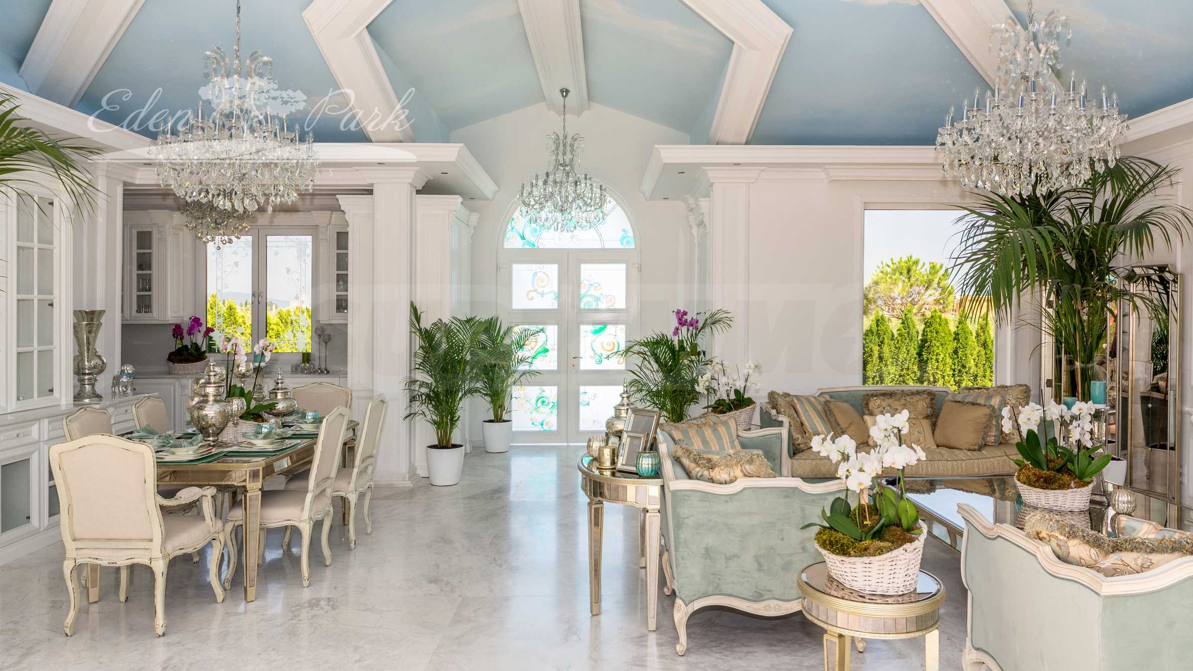 Willa jest urządzona w butikowym stylu, z indywidualnie wykonanymi meblami , oryginalnymi witrażami i malowidłami ściennymi, a wnętrze zaprojektowano z wysokiej jakości naturalnych materiałów i eleganckich akcentów. Rezultatem jest wyrafinowany dom z charakterem, łączący przytulność, styl i prestiż.