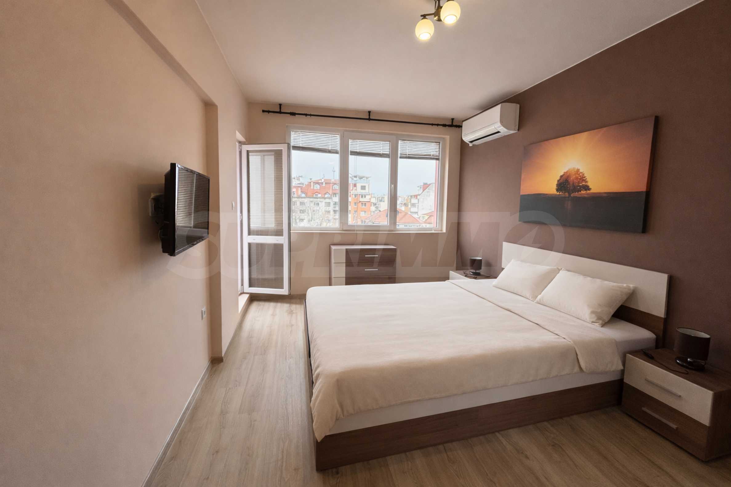 Oferujemy do wynajęcia jasne i zadbane mieszkanie jednopokojowe w nowym budynku, w dzielnicy „Kamenitsa 1”. Mieszkanie znajduje się w bardzo dogodnej lokalizacji, u zbiegu bulwarów „Maria Luiza” i „Iztochen”.