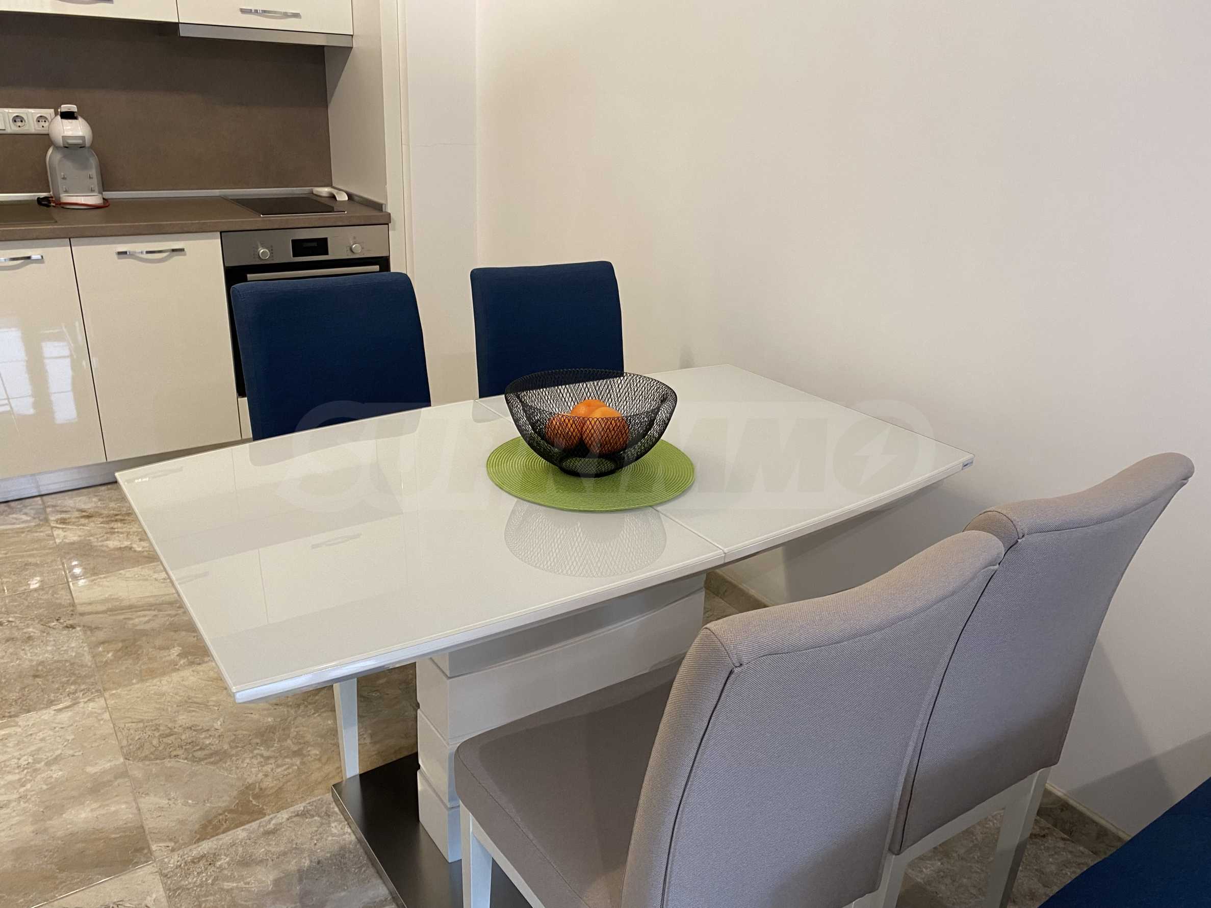 Oferujemy do wynajęcia przytulne i jasne mieszkanie jednopokojowe w nowym budynku z doskonale utrzymanymi częściami wspólnymi, w dzielnicy „Letnie Kino Trakia”. Mieszkanie znajduje się w dogodnej lokalizacji, w pobliżu przystanku autobusowego, centrum handlowego Grand Mall Varna, licznych sklepów i około 20 minut spacerem od centrum Warny.
