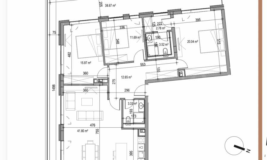 • 3 sypialnie, z czego sypialnia główna ma powierzchnię ponad 20 m2, z własną garderobą i prywatną łazienką;