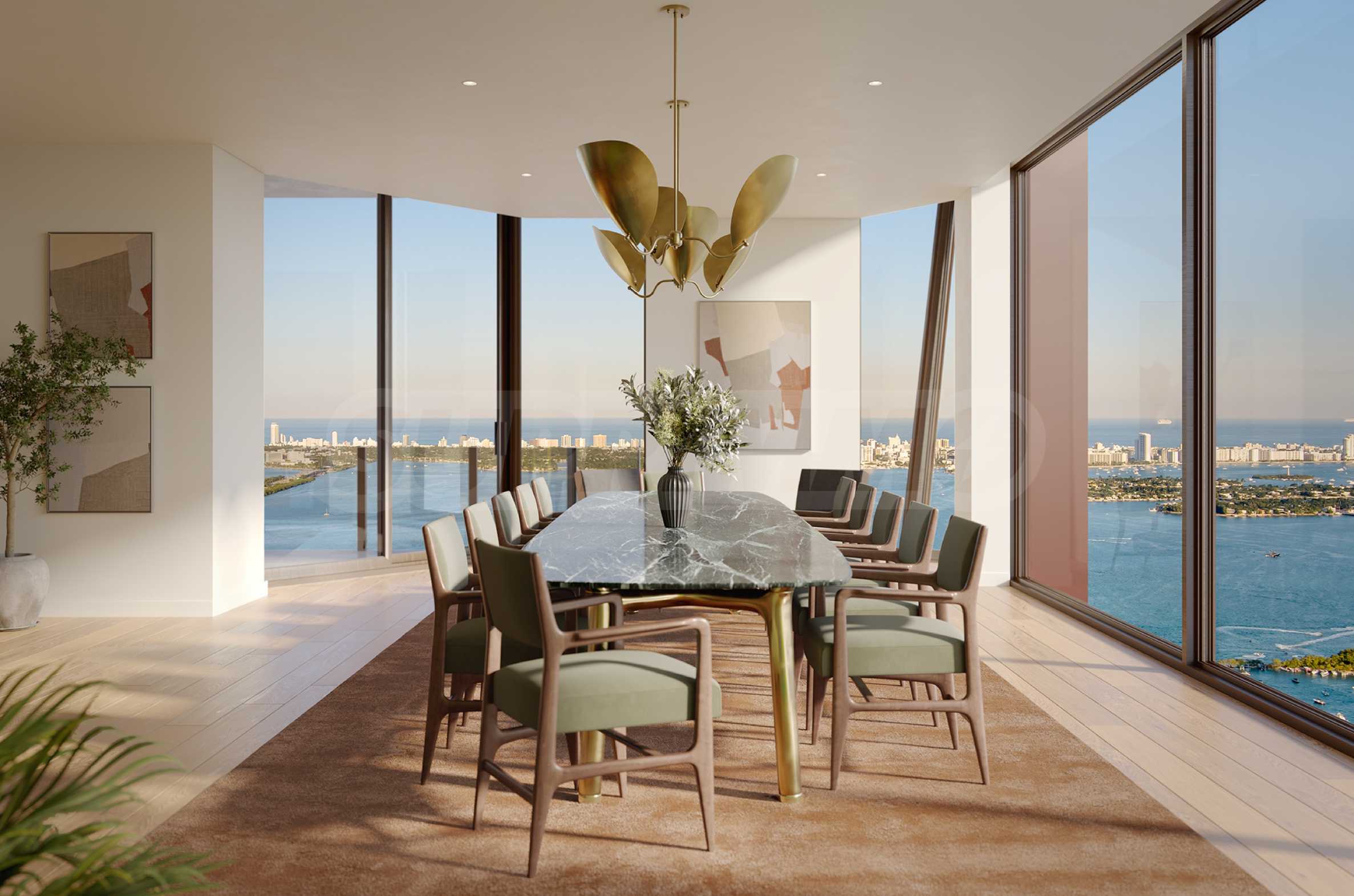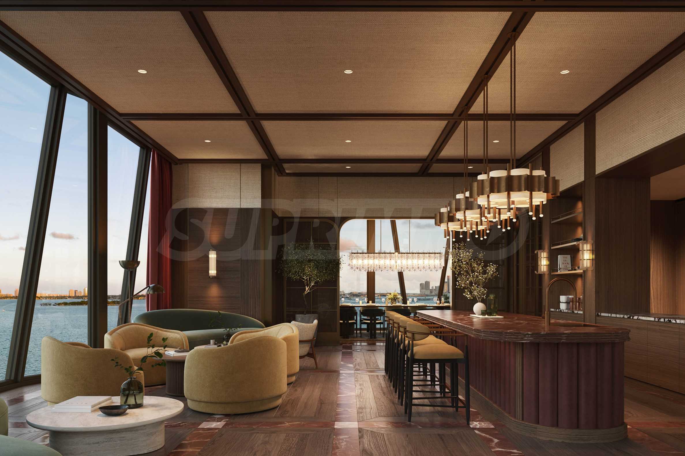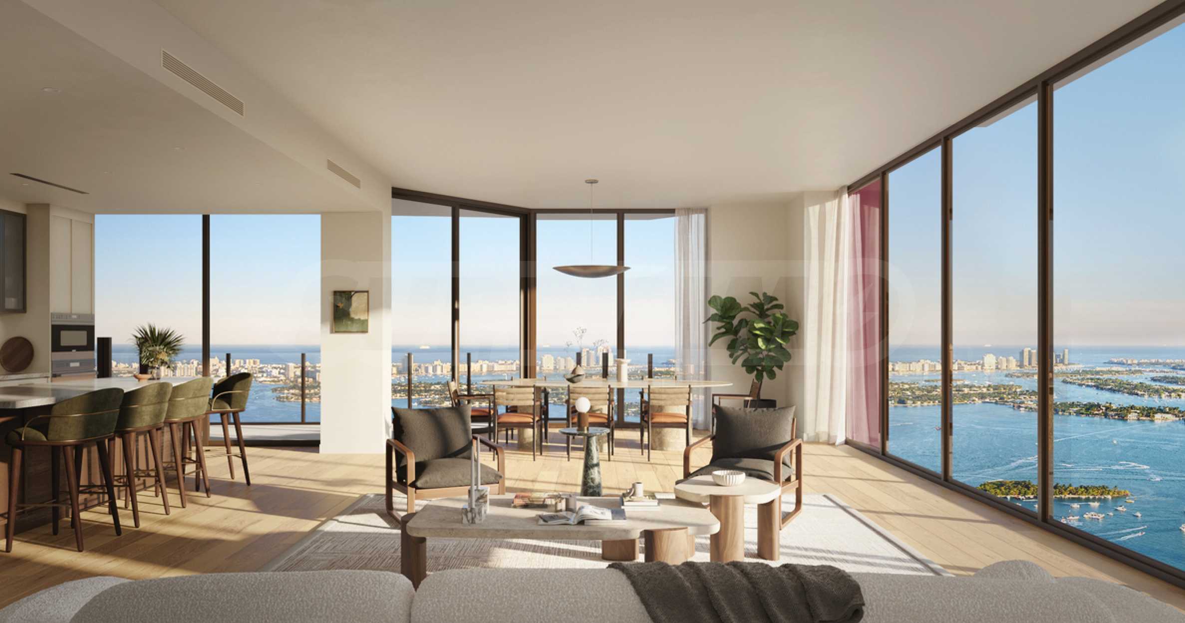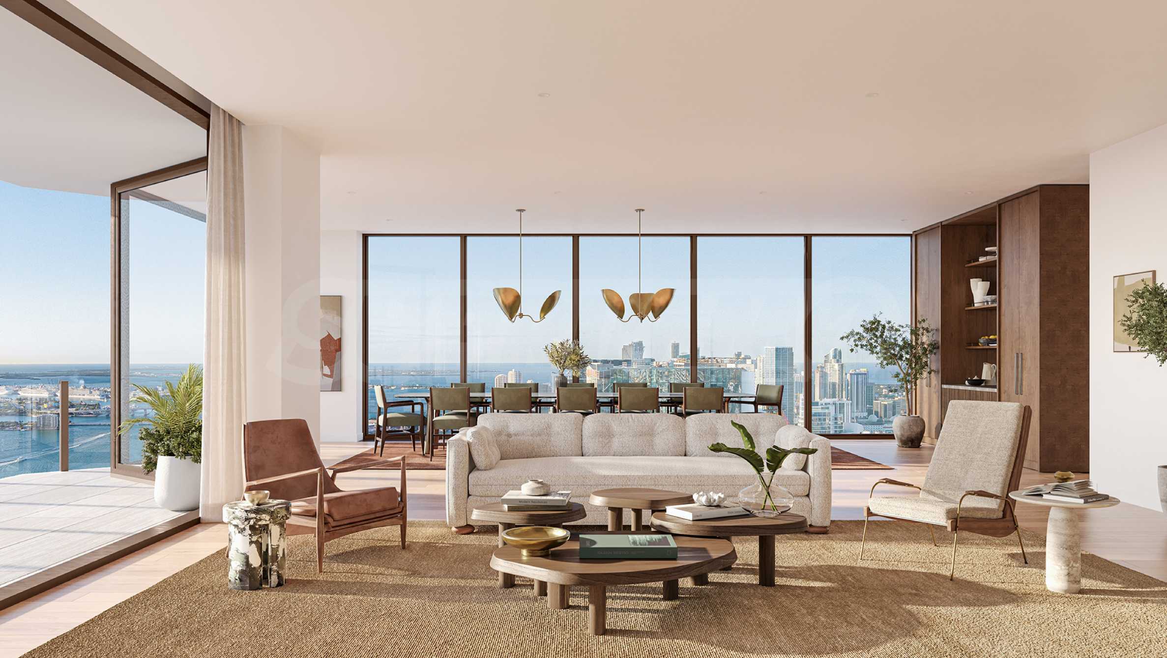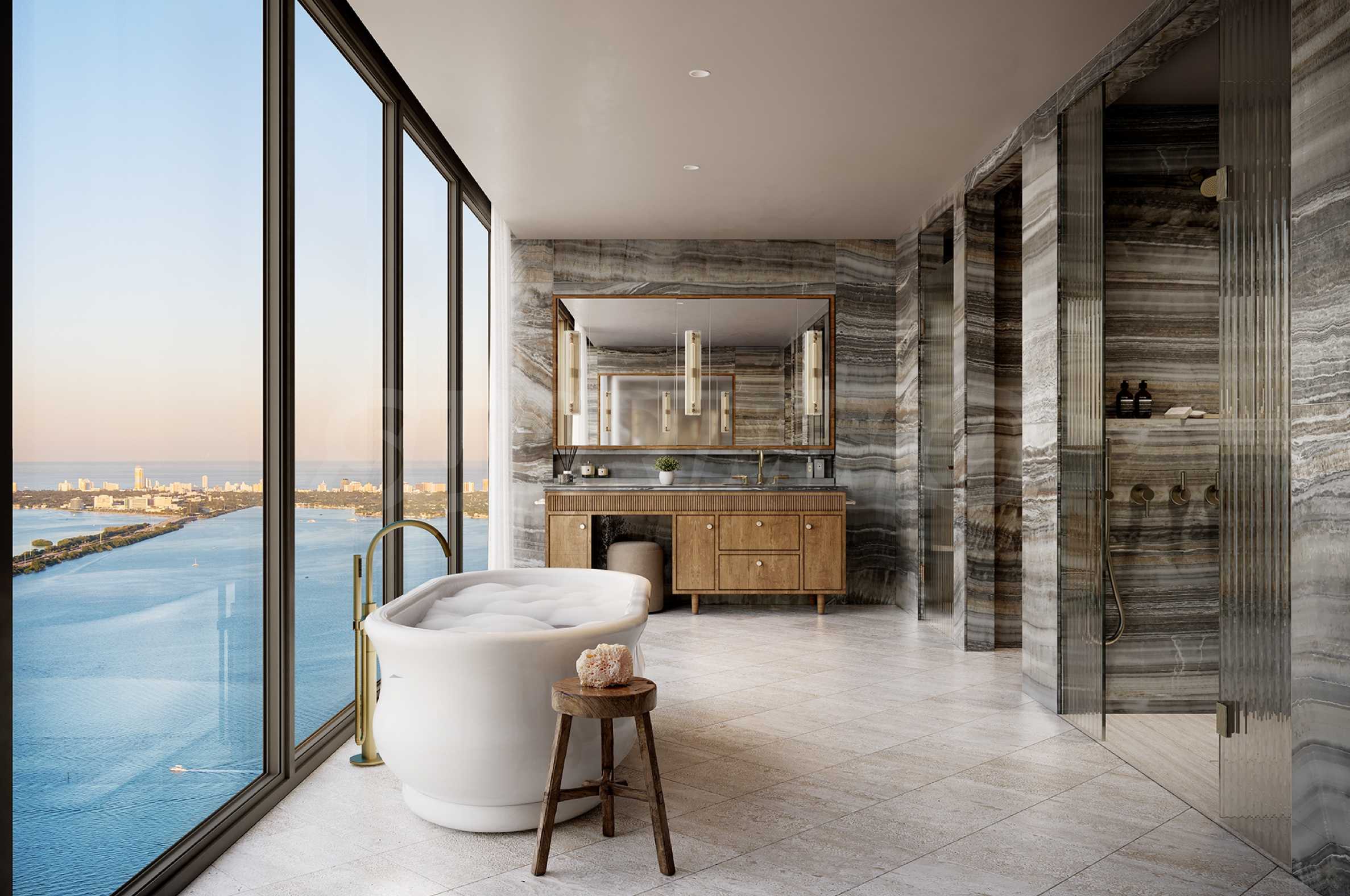 Z przyjemnością prezentujemy Państwu wyjątkowy apartament Villa Piano, który zajmuje całe piętro budynku i zachwyca powierzchnią 547,75 m². Apartament charakteryzuje się wysokimi sufitami i oknami sięgającymi od podłogi do sufitu, z których roztacza się zachwycający, panoramiczny widok na miasto i Zatokę Biscayne. Dzięki precyzyjnemu rozplanowaniu architektonicznemu i zróżnicowanej ekspozycji, naturalne światło wypełnia przestrzenie przez cały dzień. Układ apartamentu jest wyjątkowy – obejmuje on ogromny salon z dwoma strefami relaksu, stołem jadalnym i kuchnią z dużą wyspą kuchenną, a dodatkowo znajduje się w nim oddzielna jadalnia, idealna na rodzinne spotkania. Sypialnia główna apartamentu posiada dużą łazienkę i dwie oddzielne garderoby, a pozostałe trzy sypialnie są również komfortowo rozplanowane i posiadają własne łazienki i garderoby. W apartamencie znajduje się również gabinet oraz dodatkowy pokój rodzinny, który również można zaaranżować według własnych preferencji, zapewniając rozrywkę i relaks. Na koniec warto wspomnieć, że apartament posiada dwa wspaniałe tarasy, z których roztacza się piękny widok na miasto i zatokę.