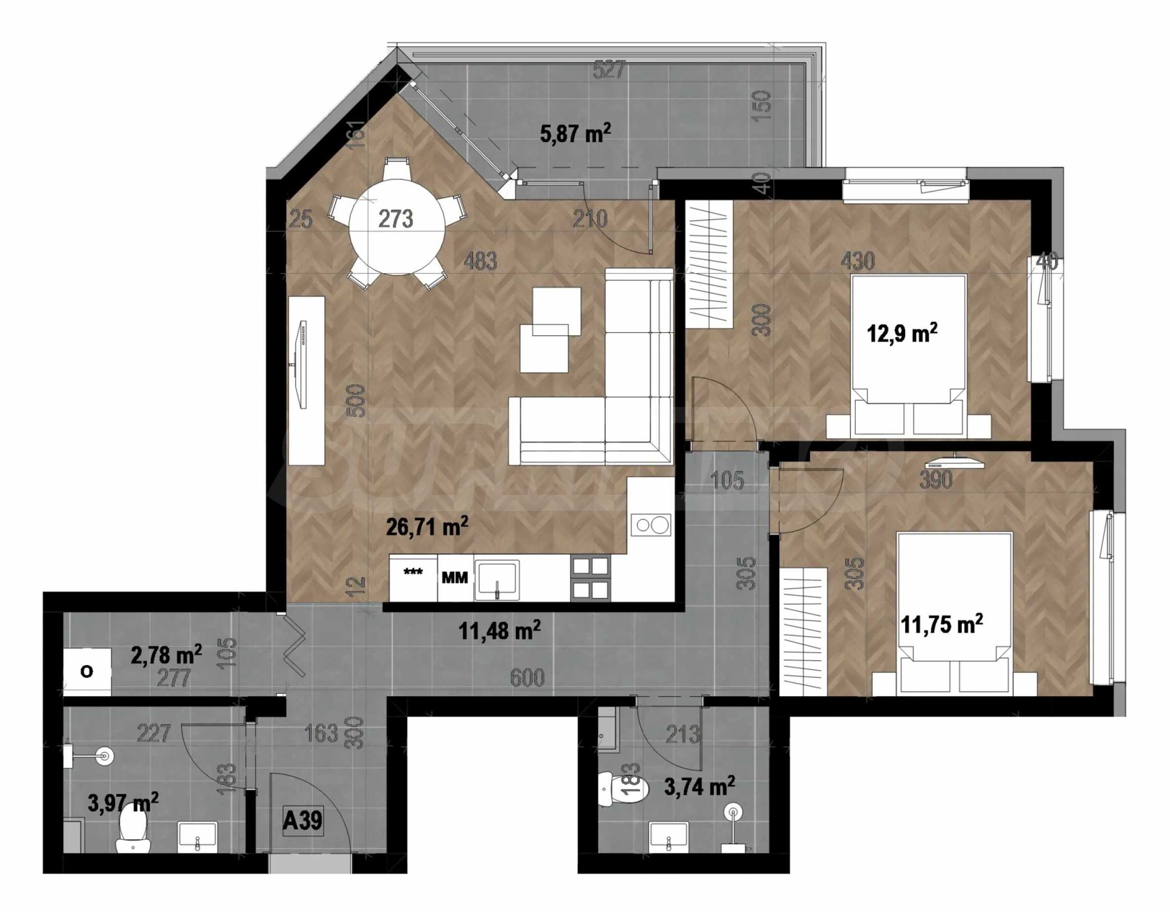 • garaże podziemne – od 45 000 € / 88 012,35 BGN bez VAT;
