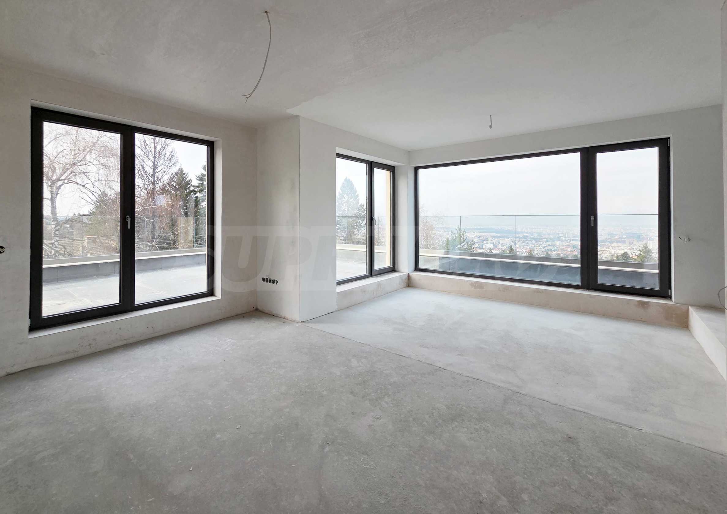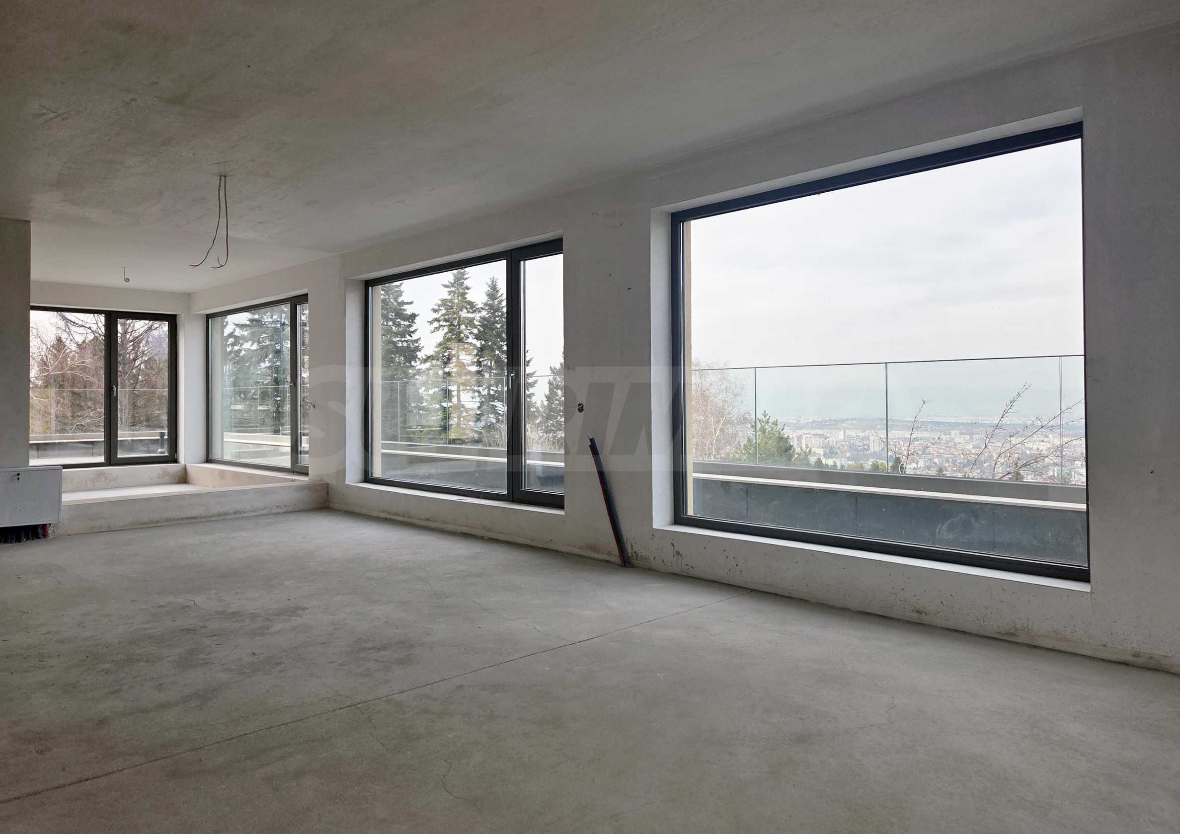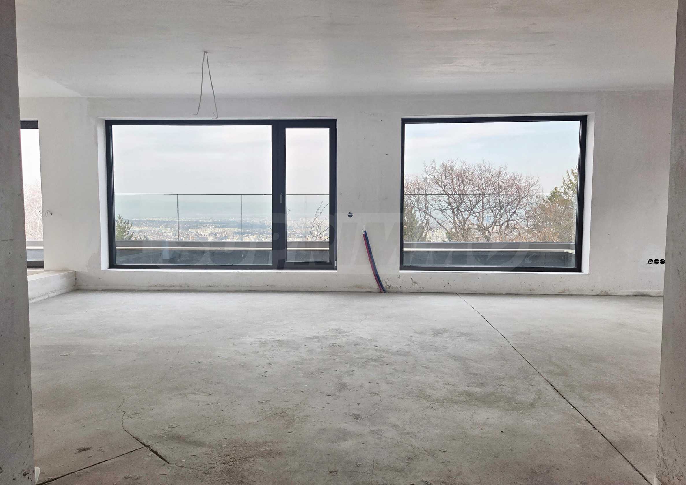 Apartament znajduje się na czwartym piętrze z pięciu, o łącznej powierzchni około 200 mkw., z czego 126 mkw. to powierzchnia mieszkalna i przestronny taras widokowy o powierzchni około 60 mkw., z którego roztacza się imponujący widok na Sofię i Górę Witosza, którego nie można zasłonić.