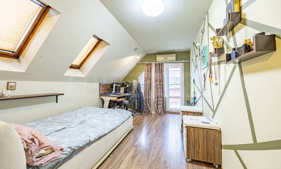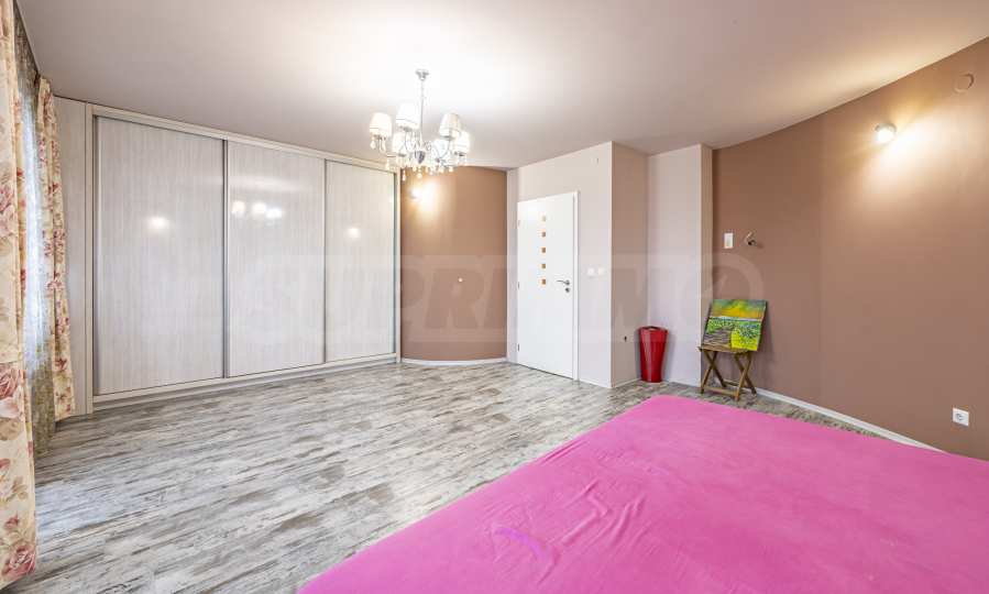 Prezentujemy przestronny apartament typu maisonette do wynajęcia w jednej z najbardziej prestiżowych i pożądanych dzielnic stolicy – „Oborishte”, niedaleko bulwaru „Madryt” i 10 minut spacerem od stacji metra „Teatralna” oraz parku „Zaimow”. Nieruchomość o powierzchni 180 m² oferuje przestronne pokoje oraz tarasy z panoramicznym widokiem na miasto i góry.