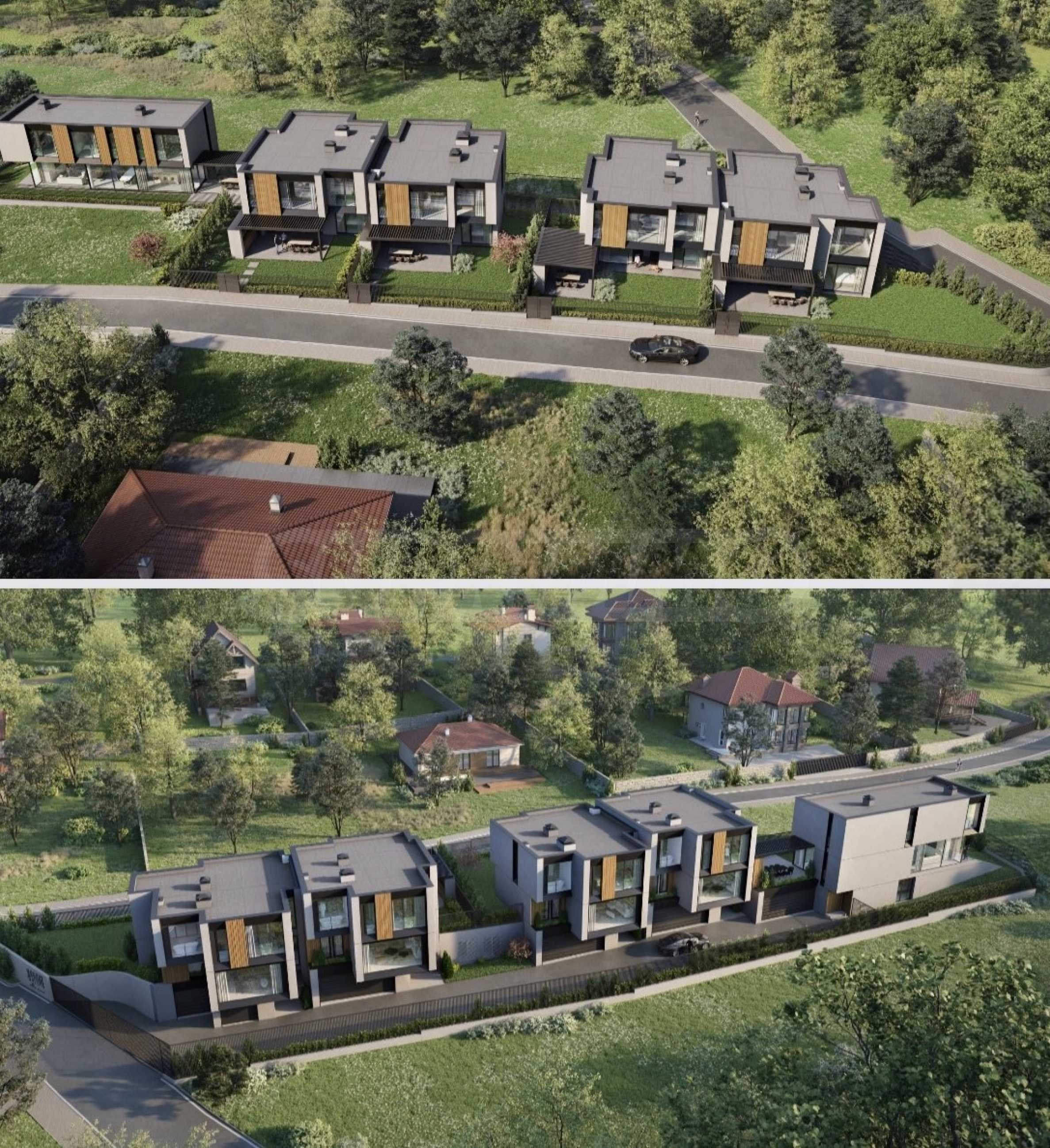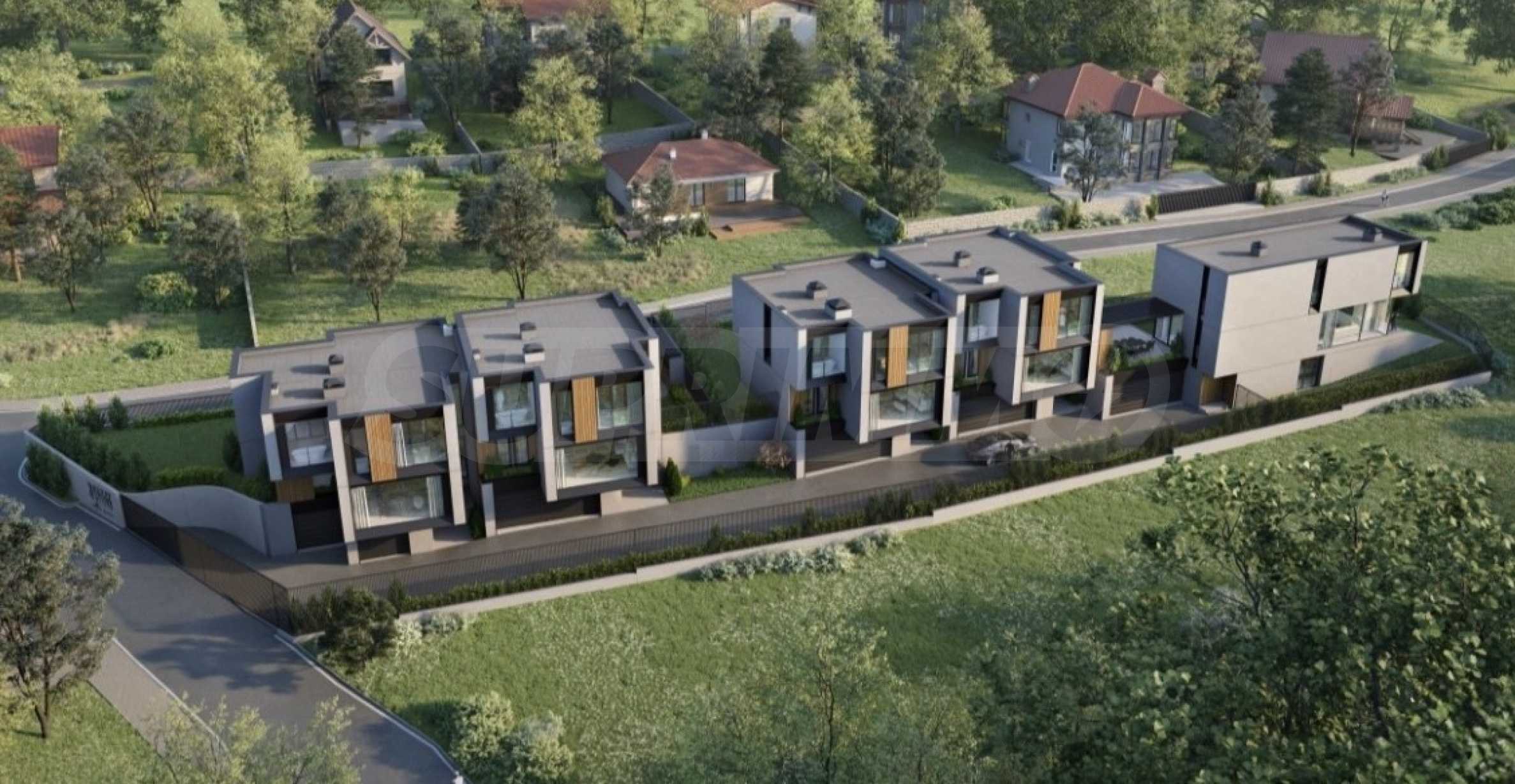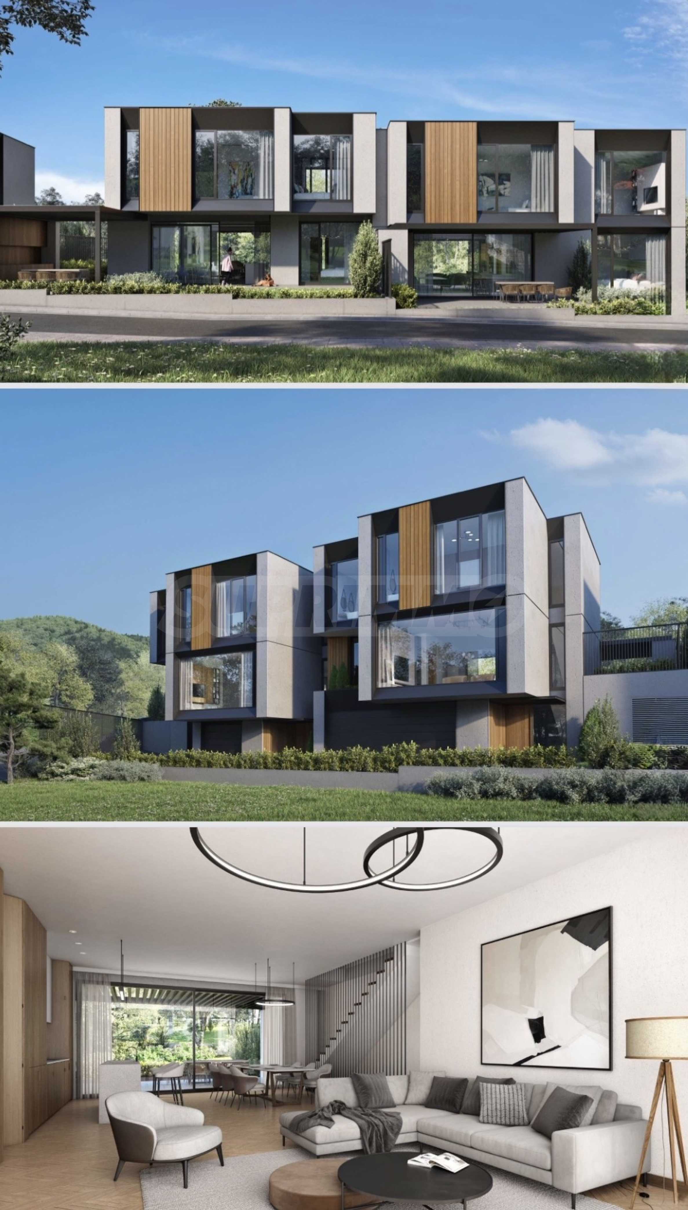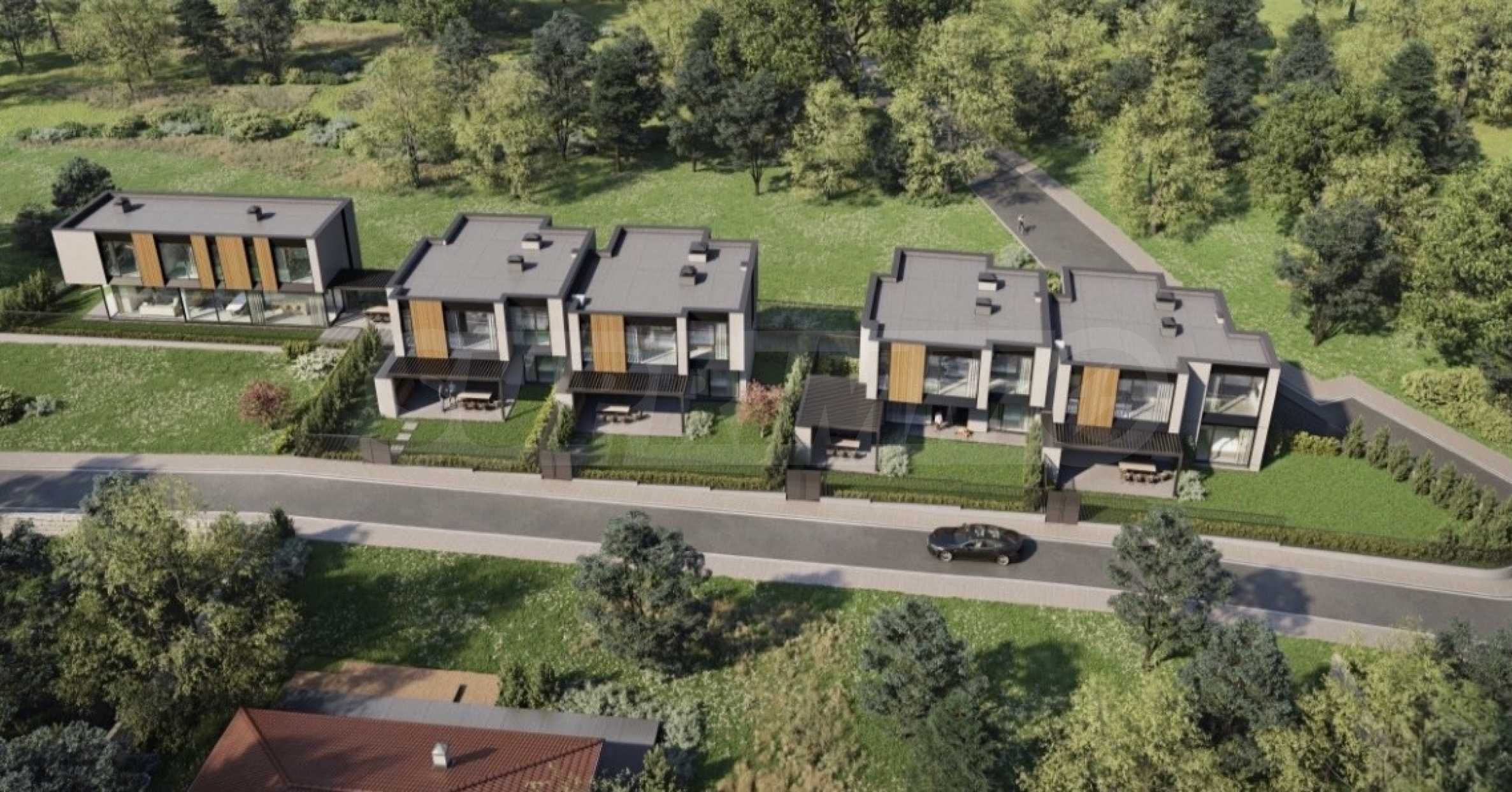 Prezentujemy imponujący, nowoczesny dom, będący częścią ekskluzywnego kompleksu pięciu domów jednorodzinnych, położonego na skraju spokojnej i popularnej miejscowości niedaleko Sofii. Nieruchomość oferuje panoramiczne widoki na Góry Bałkańskie, łącząc ciszę natury z dogodnym dojazdem do stolicy.