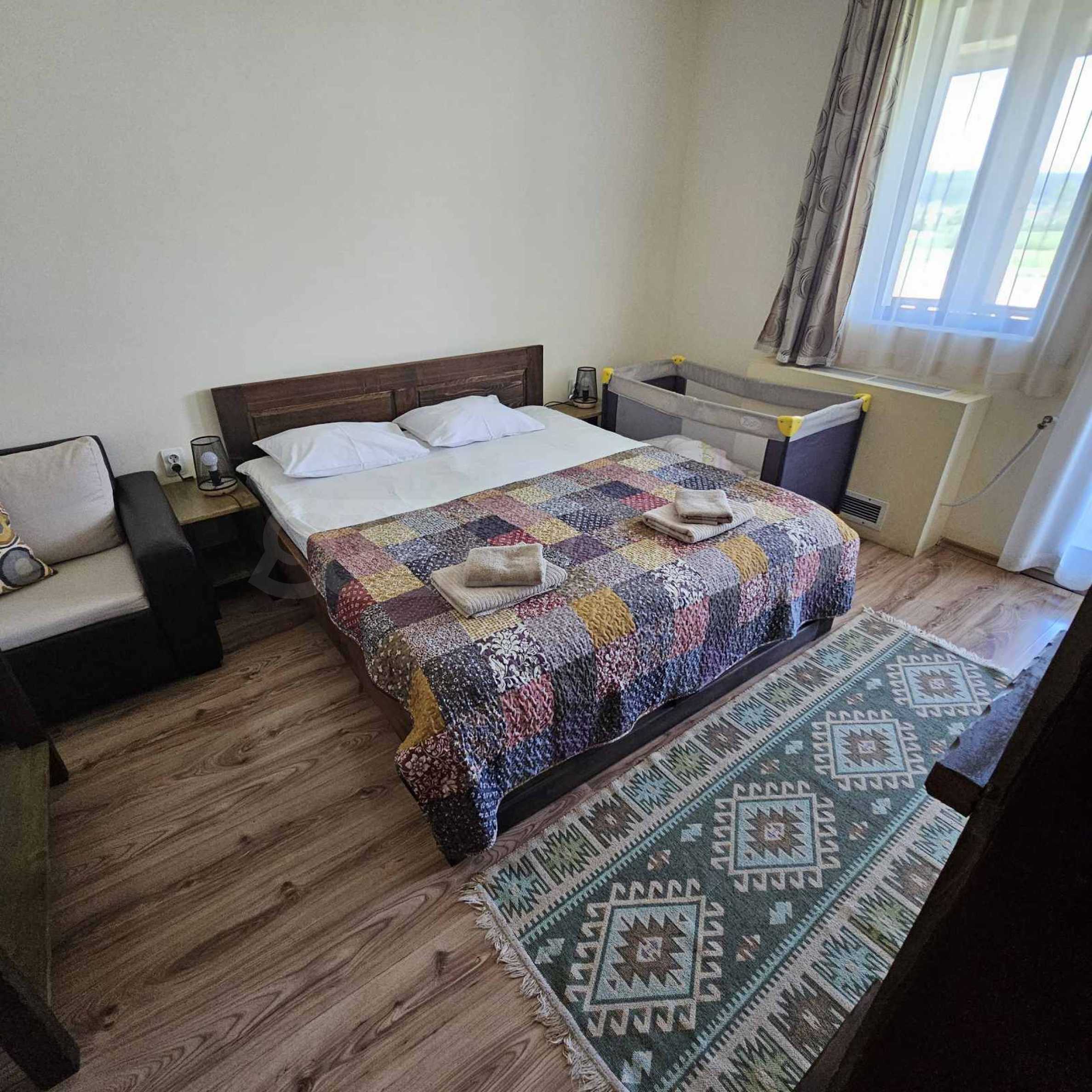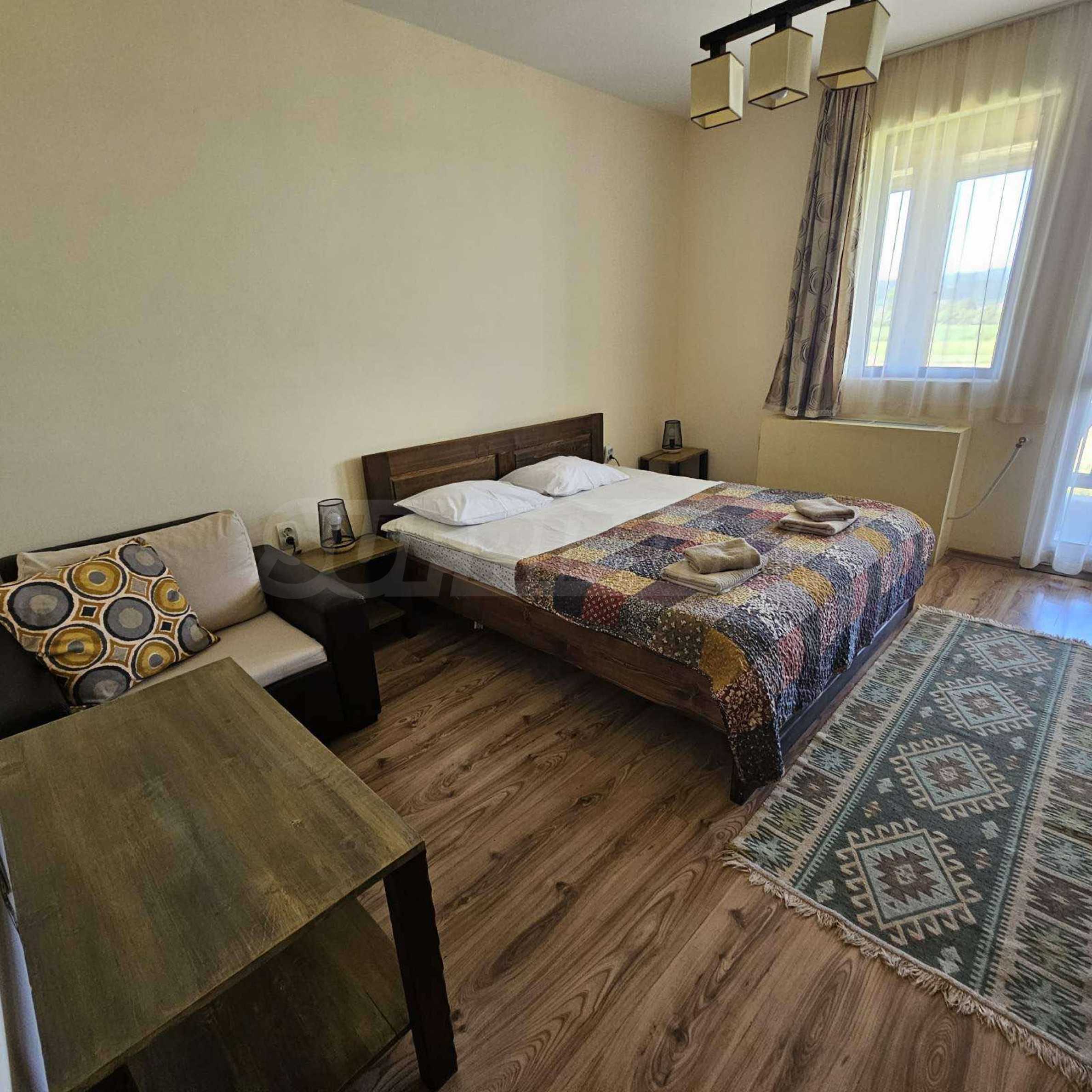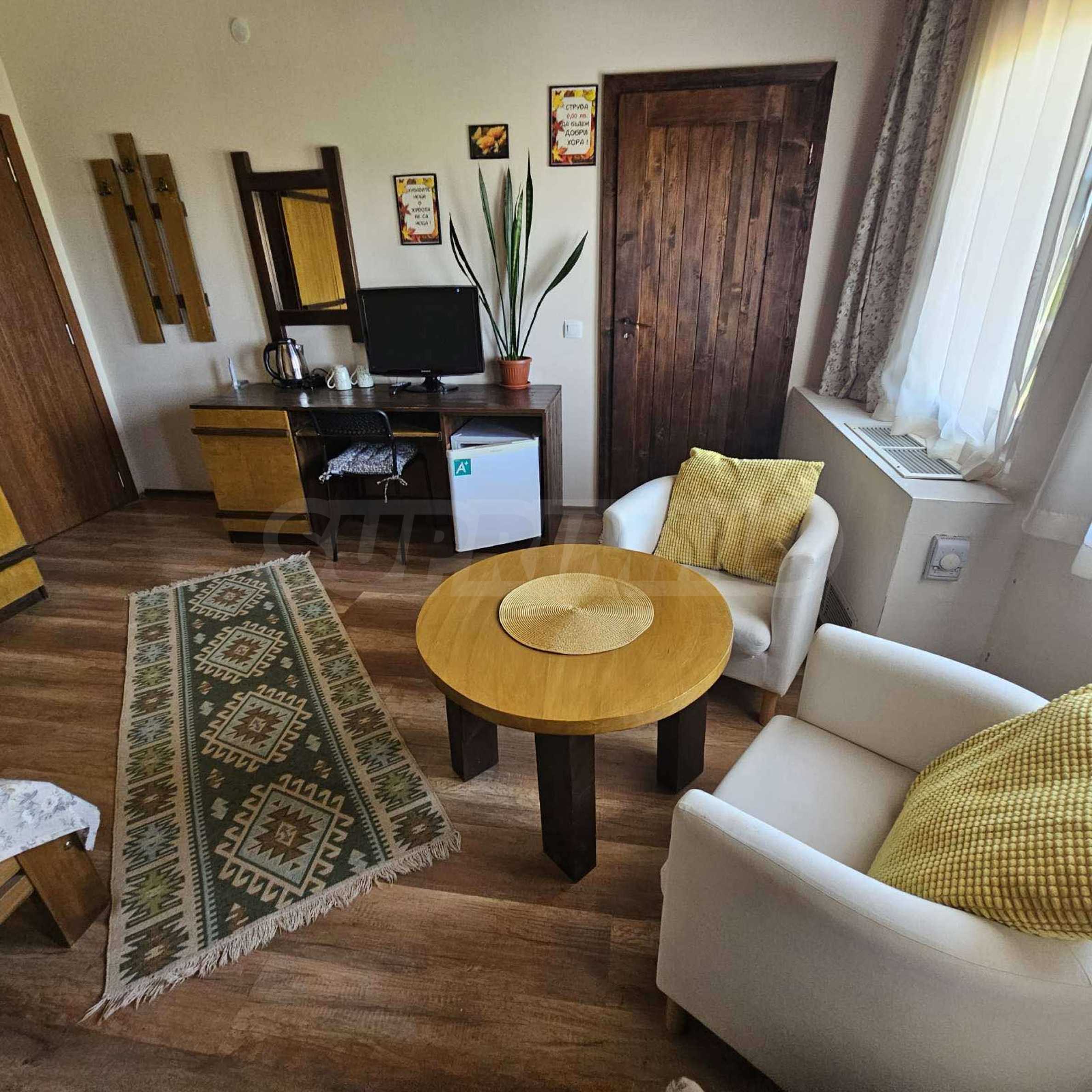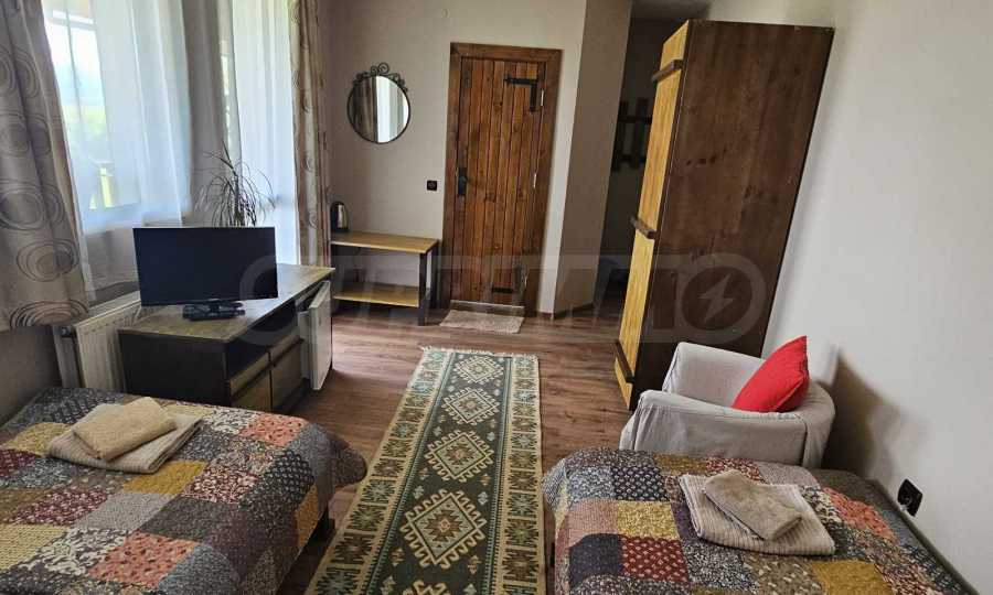 Oferujemy na sprzedaż w pełni wyposażony i funkcjonalny obiekt biznesowy położony u podnóża Gór Riła, w malowniczej miejscowości Biełczyn, zaledwie 60 km od Sofii i 15 minut od Borowca. Obiekt to pensjonat z restauracją-zajazdem, czynny przez cały rok i cieszący się doskonałą reputacją online, z oceną 9,4 na Booking.com.