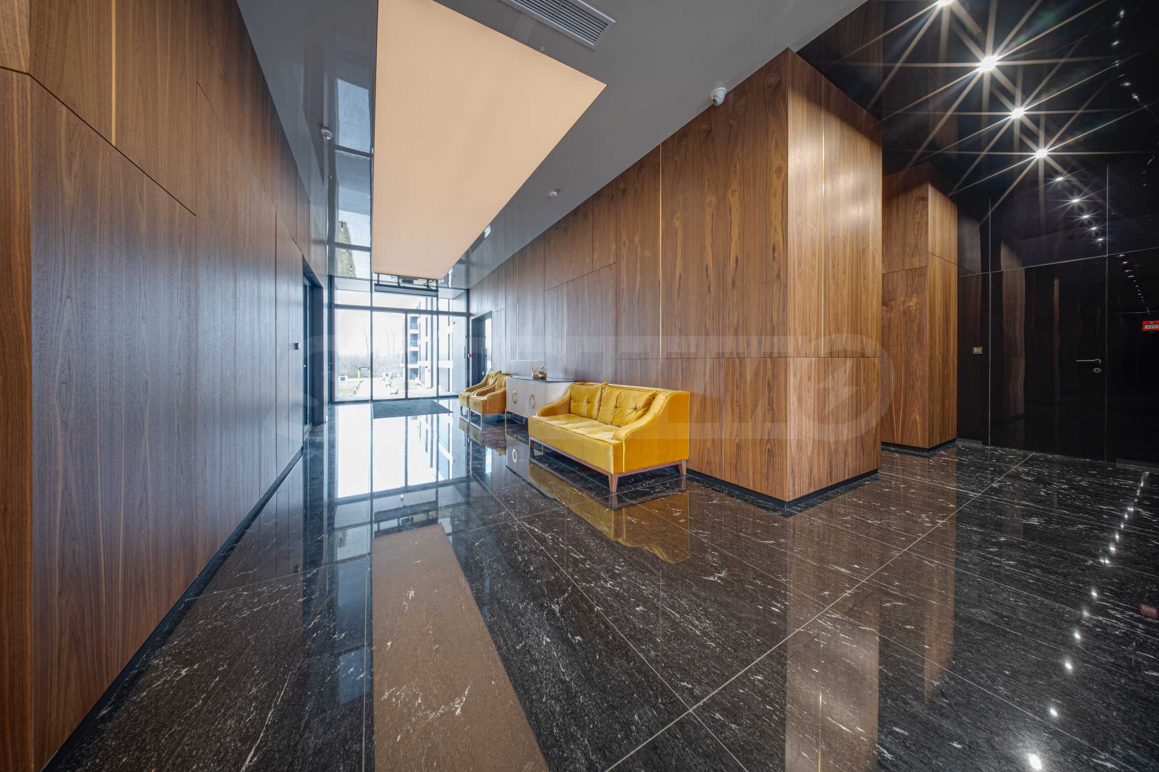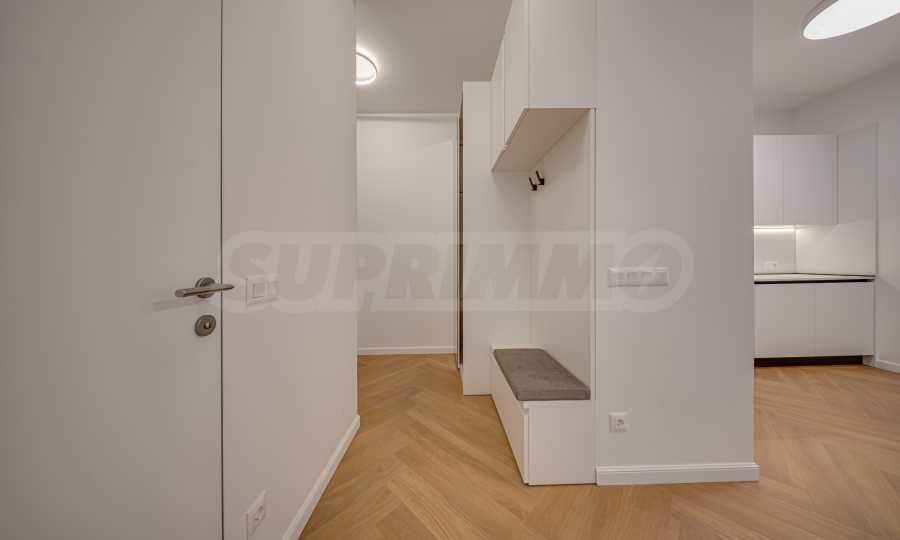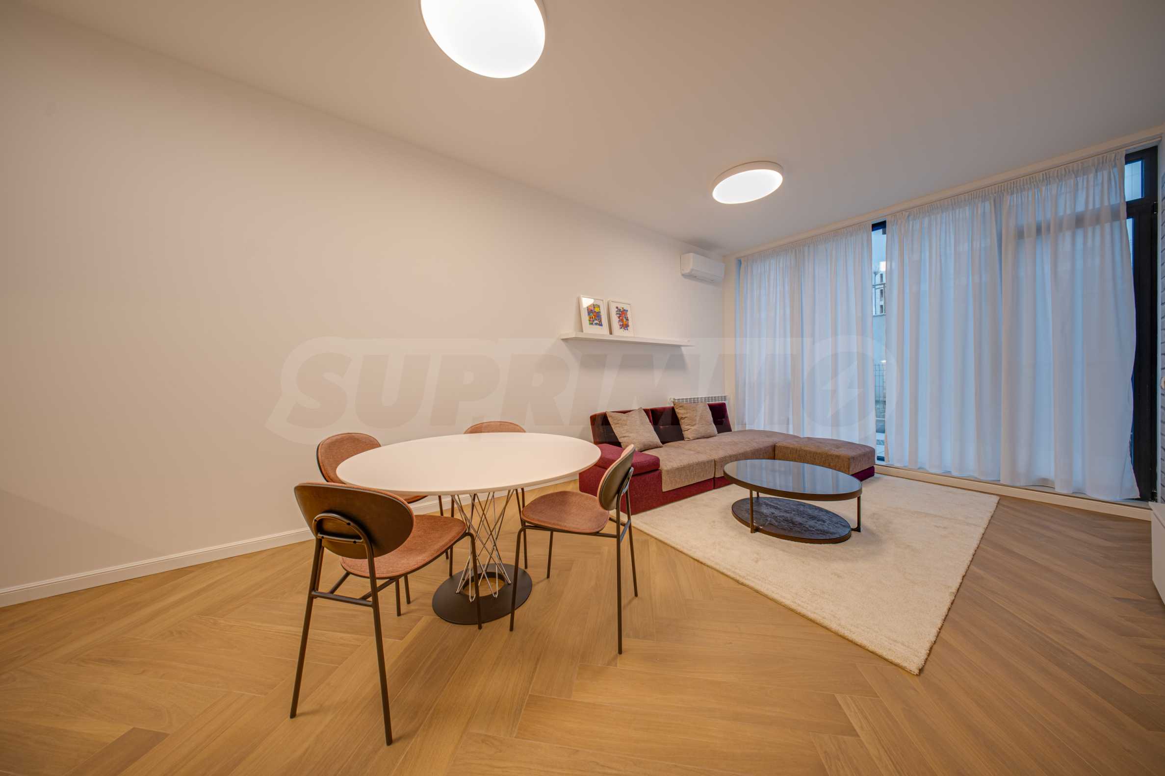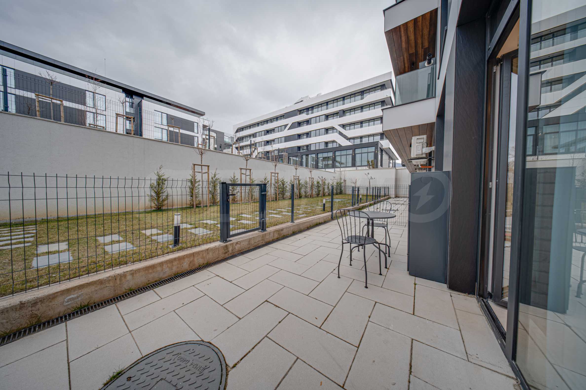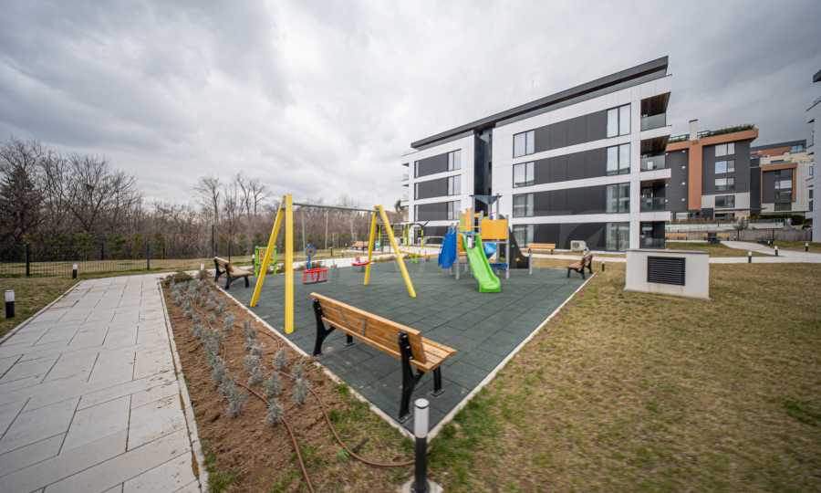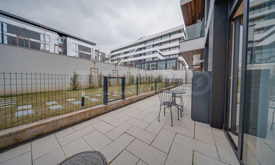 Prezentujemy zupełnie nowe mieszkanie jednopokojowe z ogródkiem, położone w renomowanym, zamkniętym kompleksie w dzielnicy „Simeonovo”, w doskonałej lokalizacji i szybkim dojazdem do obwodnicy i bulwaru „Simeonovsko Shose”.