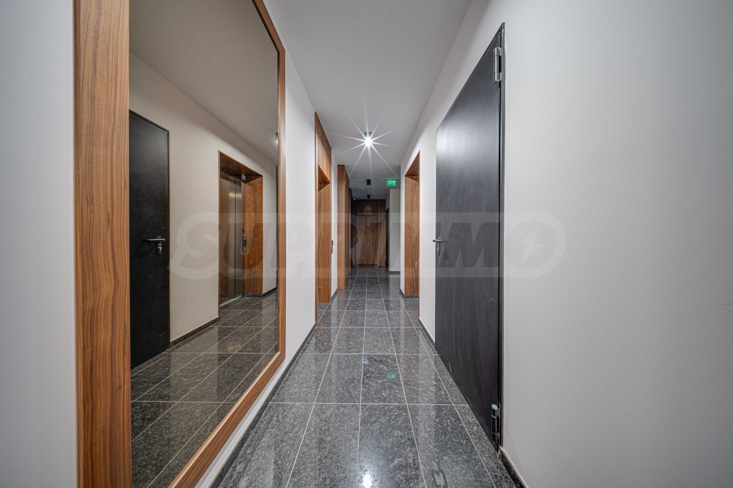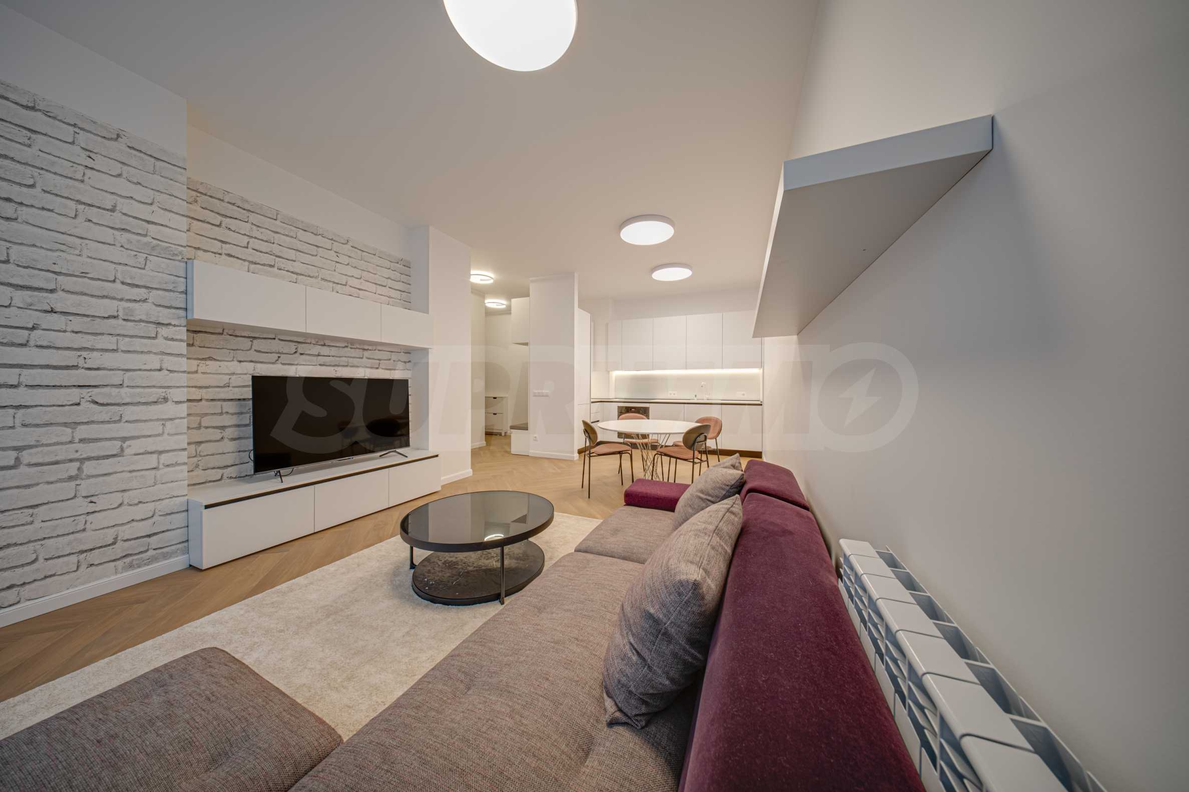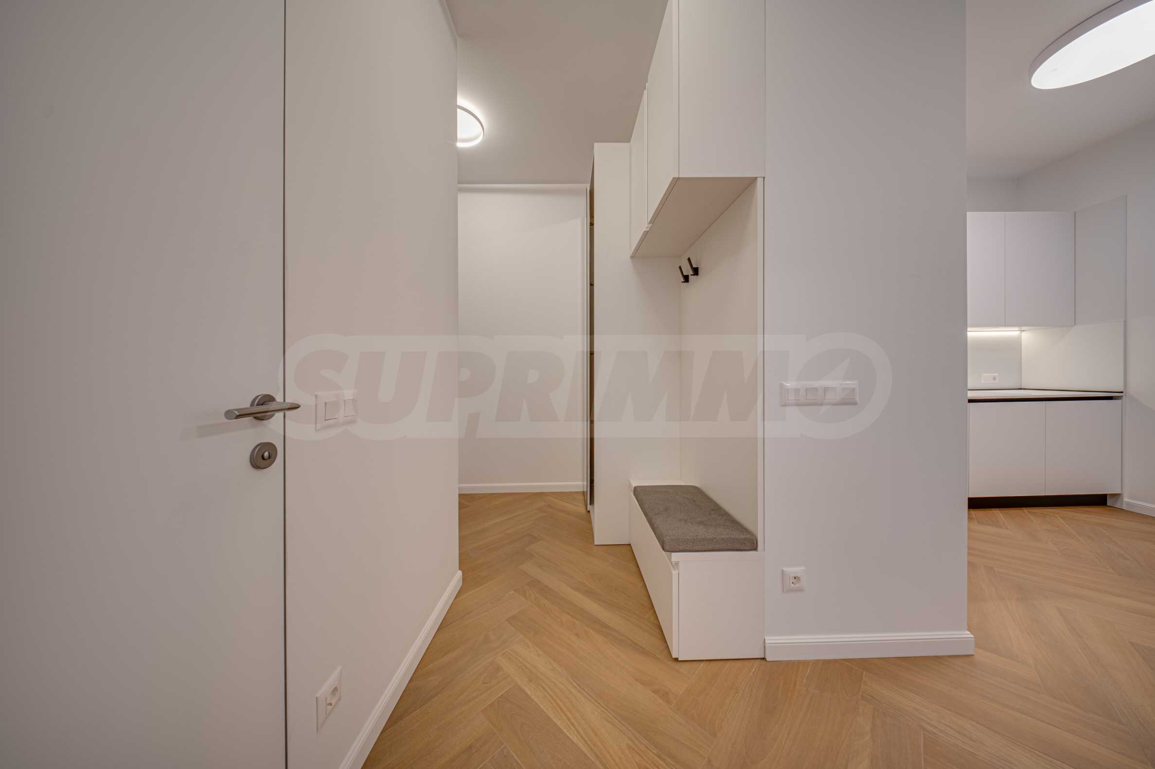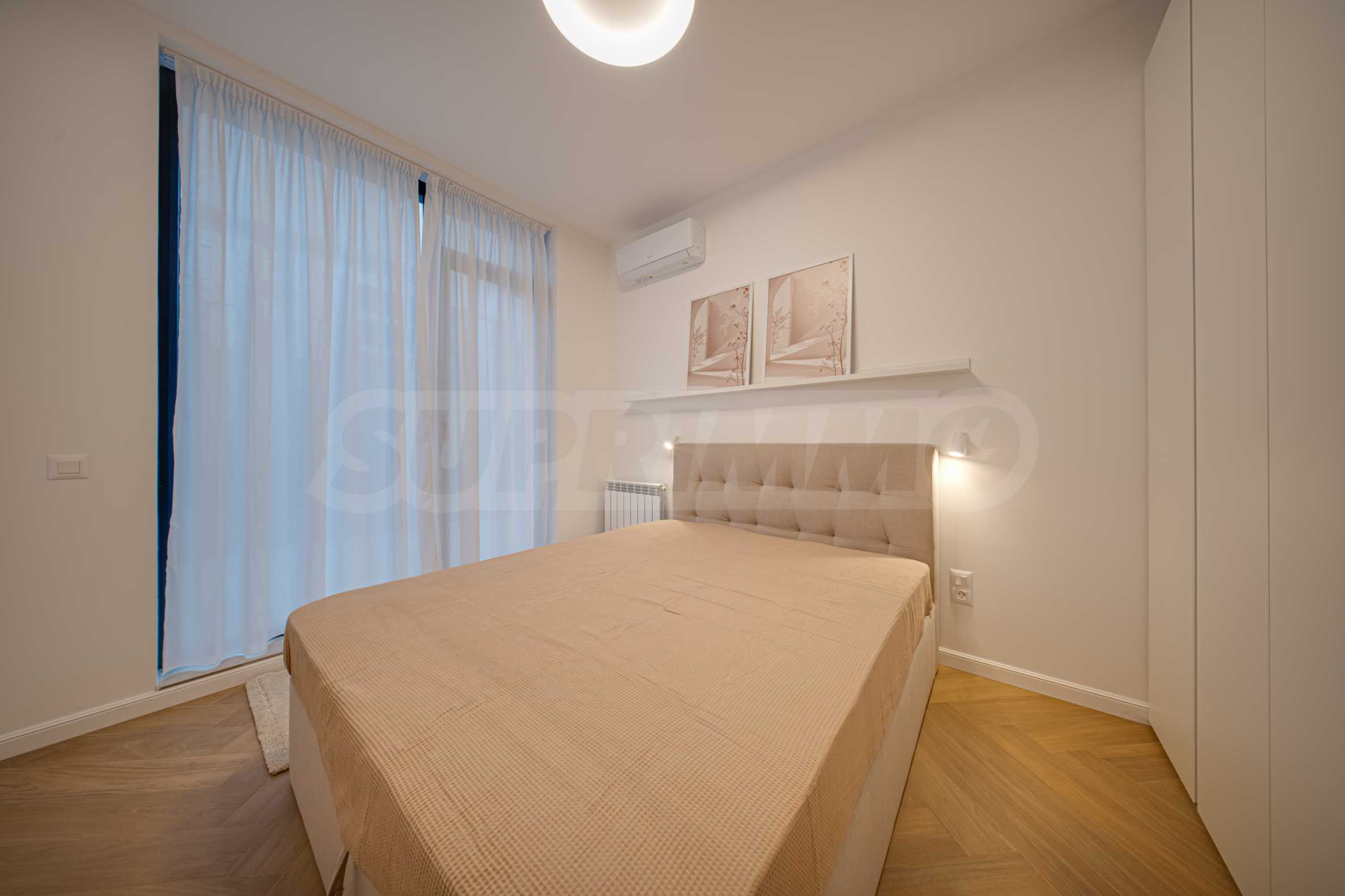 Prezentujemy zupełnie nowe mieszkanie jednopokojowe z ogródkiem, położone w renomowanym, zamkniętym kompleksie w dzielnicy „Simeonovo”, w doskonałej lokalizacji i szybkim dojazdem do obwodnicy i bulwaru „Simeonovsko Shose”.