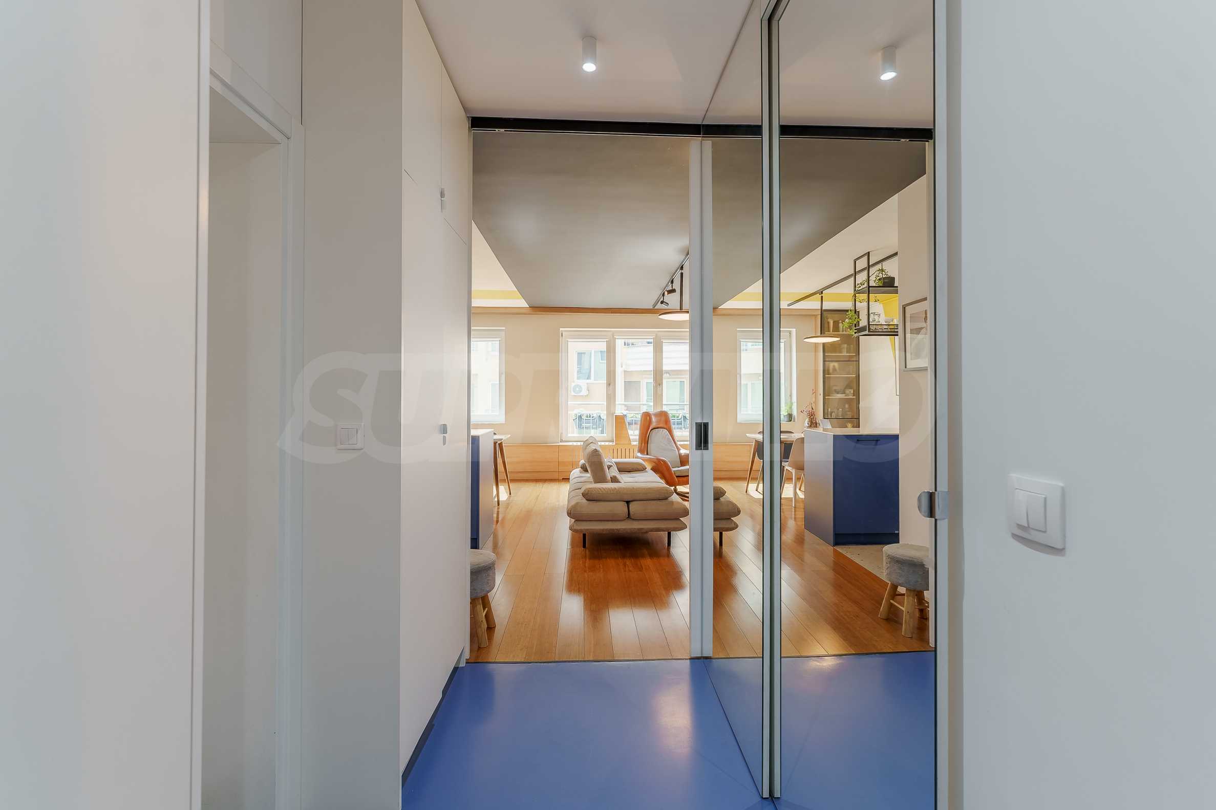 Apartament został zaprojektowany z dbałością o szczegóły i oferuje nowoczesne wnętrze, wysokiej jakości materiały oraz artystyczną i komfortową atmosferę. Naturalny parkiet, rozwiązania projektowe i doskonale zorganizowana przestrzeń robią wrażenie.