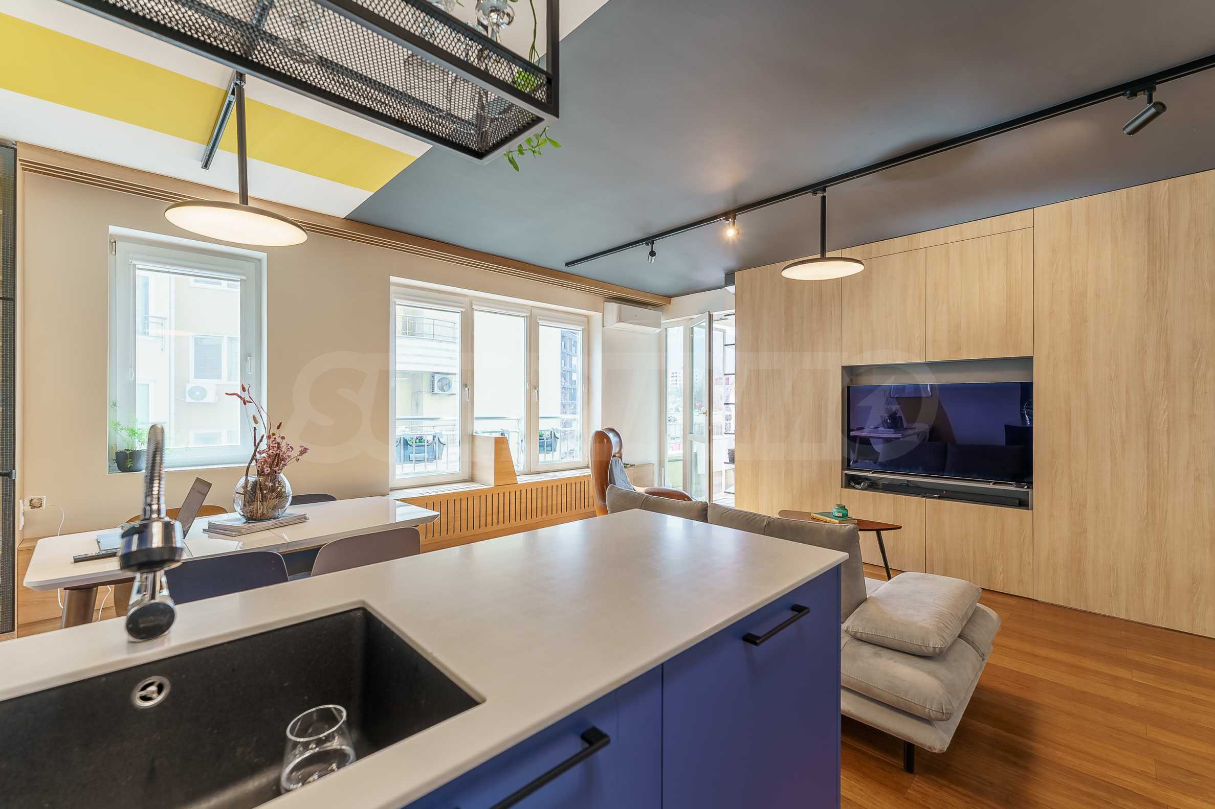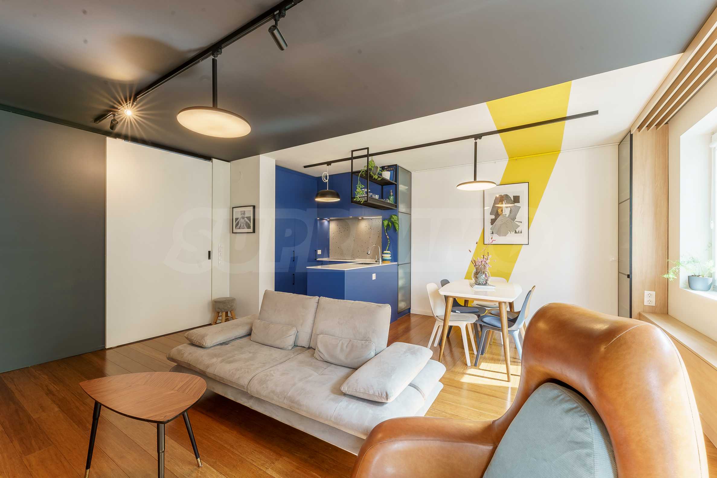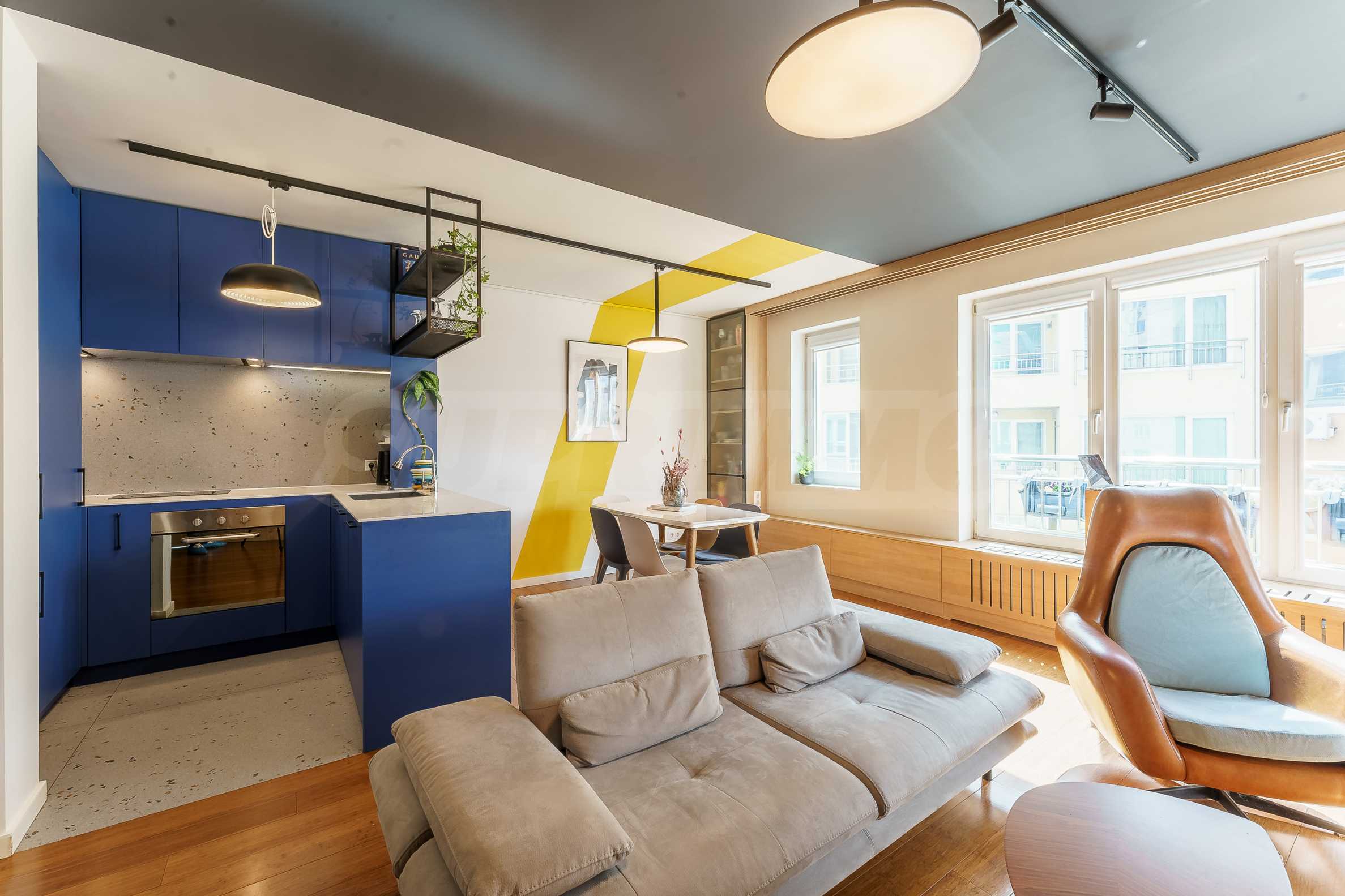 Prezentujemy atrakcyjne, nowocześnie umeblowane mieszkanie dwupokojowe, zlokalizowane na trzecim piętrze zadbanego budynku w dzielnicy studenckiej „Student Town”, w doskonałej lokalizacji, niedaleko sklepu Fantastico na G. M. Dimitrov Blvd. i Loven Park.