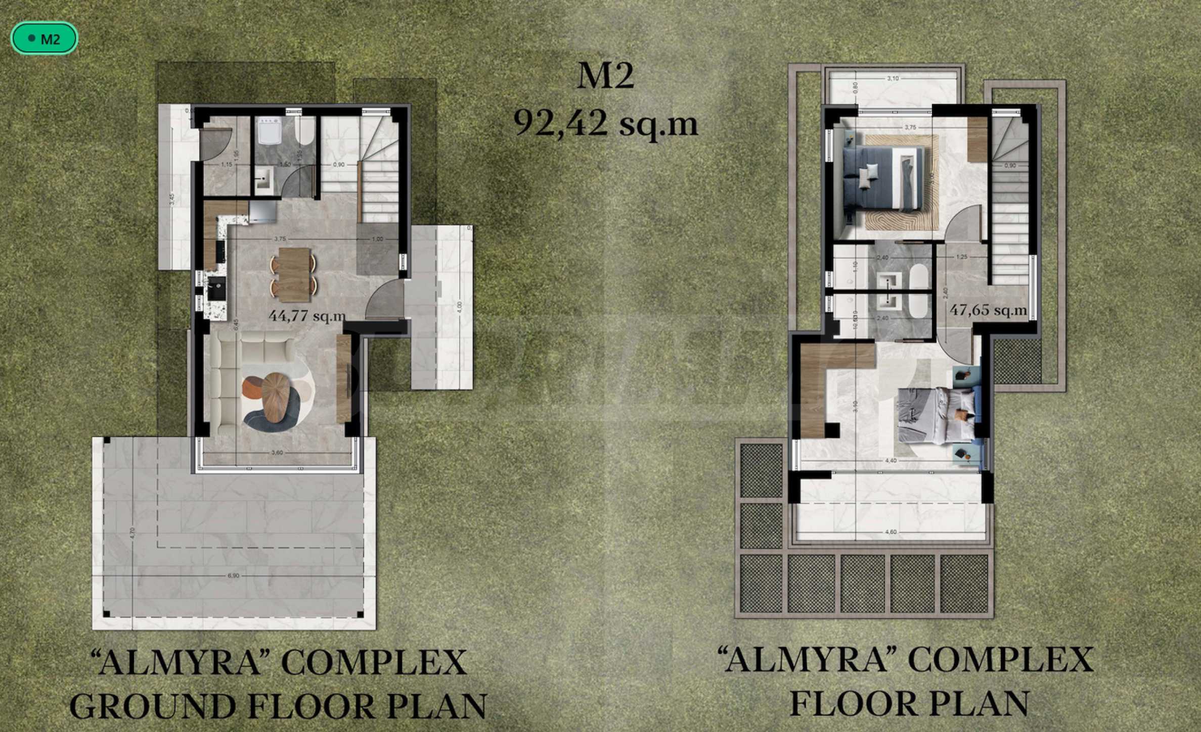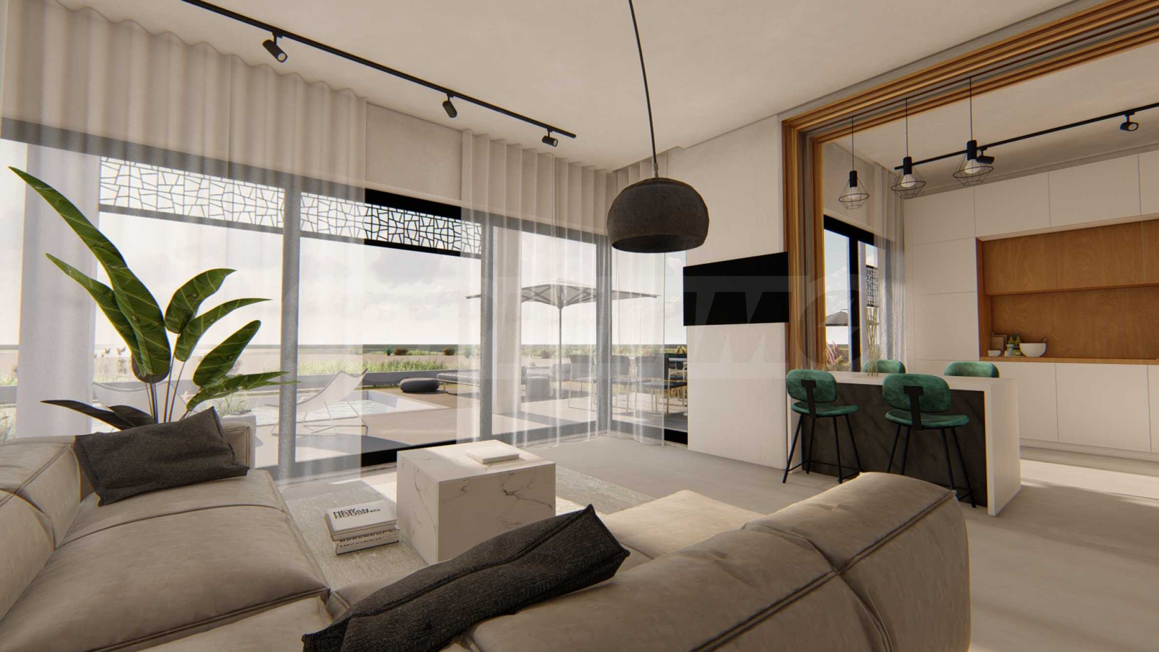 Kompleks składa się z 20 wolnostojących willi na dwóch poziomach o powierzchni od 85,93 m² do 121,17 m². Starannie zaprojektowana fasada, z prostymi liniami i elementami dekoracyjnymi, nadaje całemu kompleksowi nowoczesny, a jednocześnie ponadczasowy charakter. Układy obejmują przestronne i jasne salony, dwie lub trzy sypialnie oraz trzy łazienki, gwarantując niezbędny spokój i prywatność wszystkim mieszkańcom. Wszystkie domy są sprzedawane w stanie „pod klucz”, z zamontowanymi drzwiami wejściowymi i wewnętrznymi, podłogami, oświetleniem, umeblowanymi kuchniami i wyposażonymi łazienkami. Dodatkowo inwestorzy oferują możliwość dobudowania prywatnego basenu zewnętrznego.