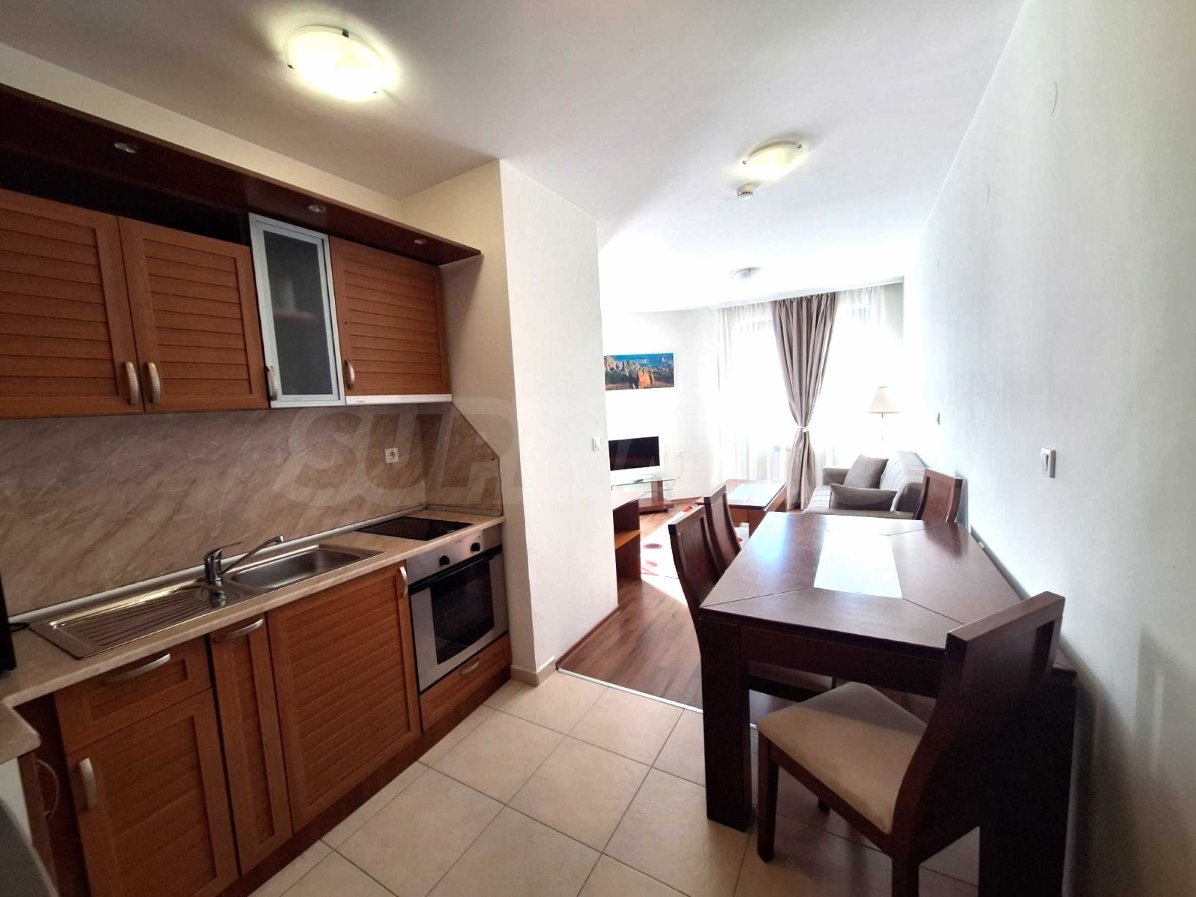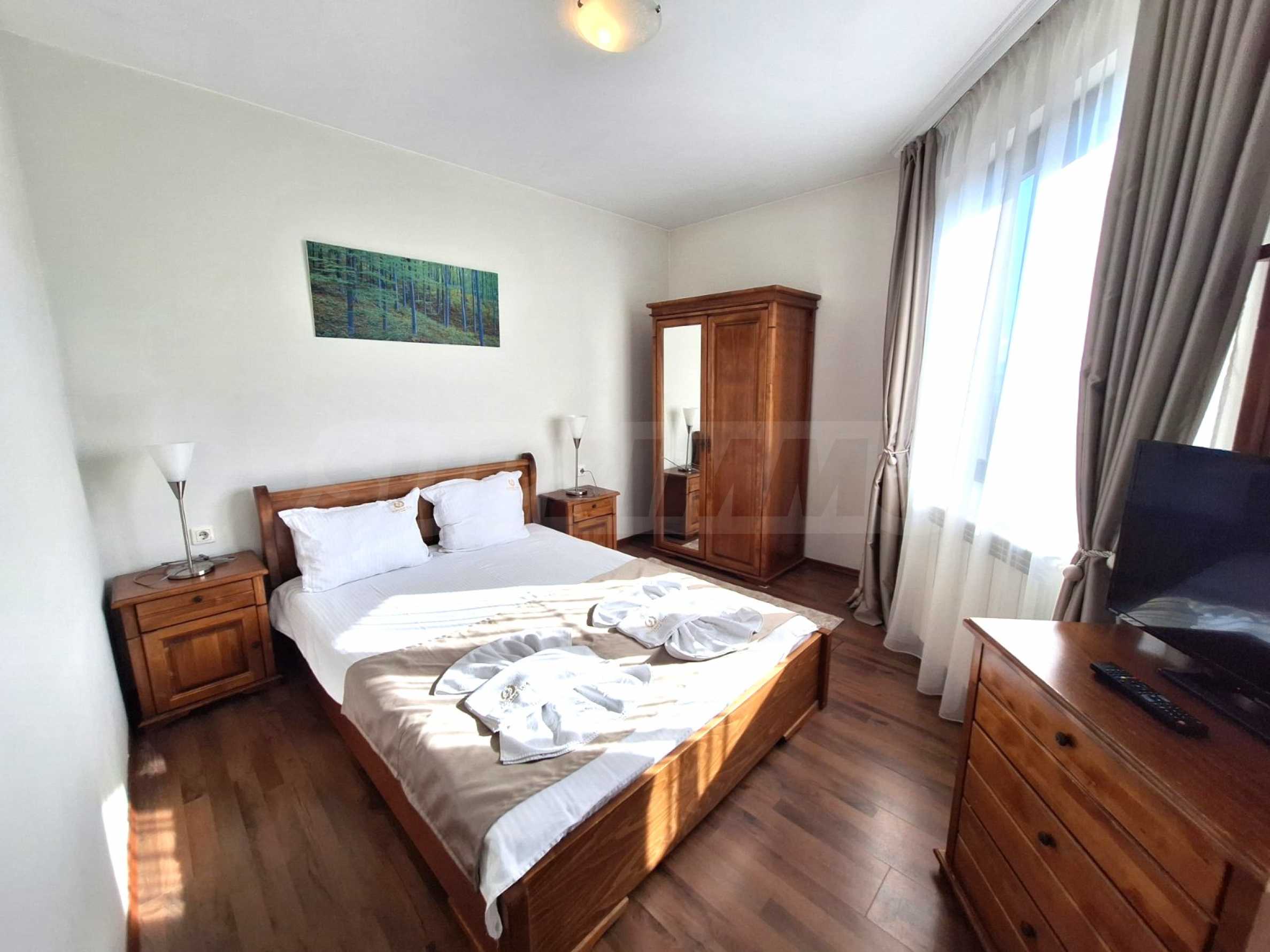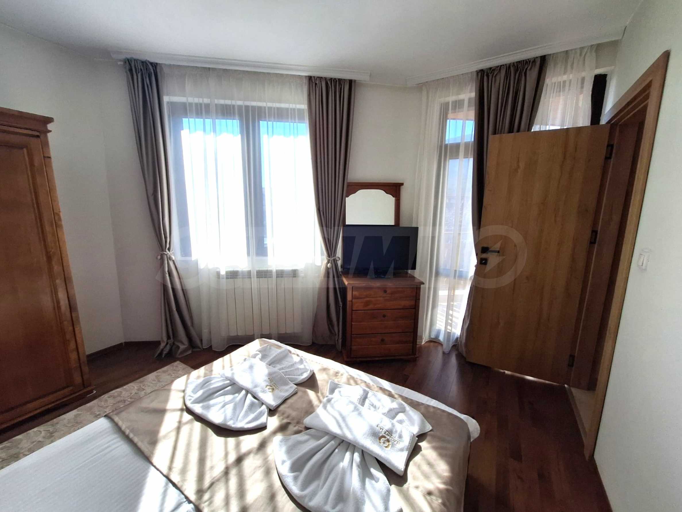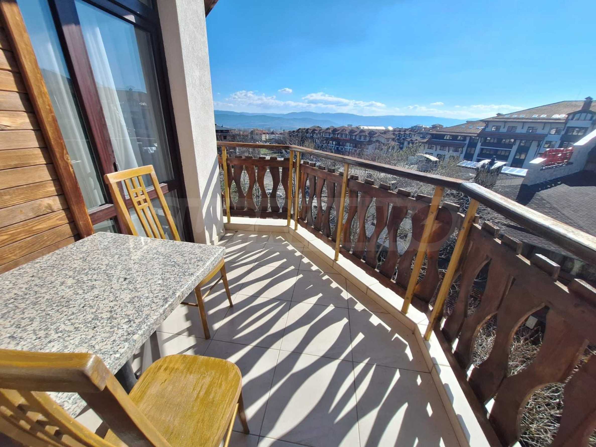 Prezentujemy jasne i pięknie urządzone mieszkanie z jedną sypialnią, zlokalizowane w luksusowym kompleksie w Bansko.