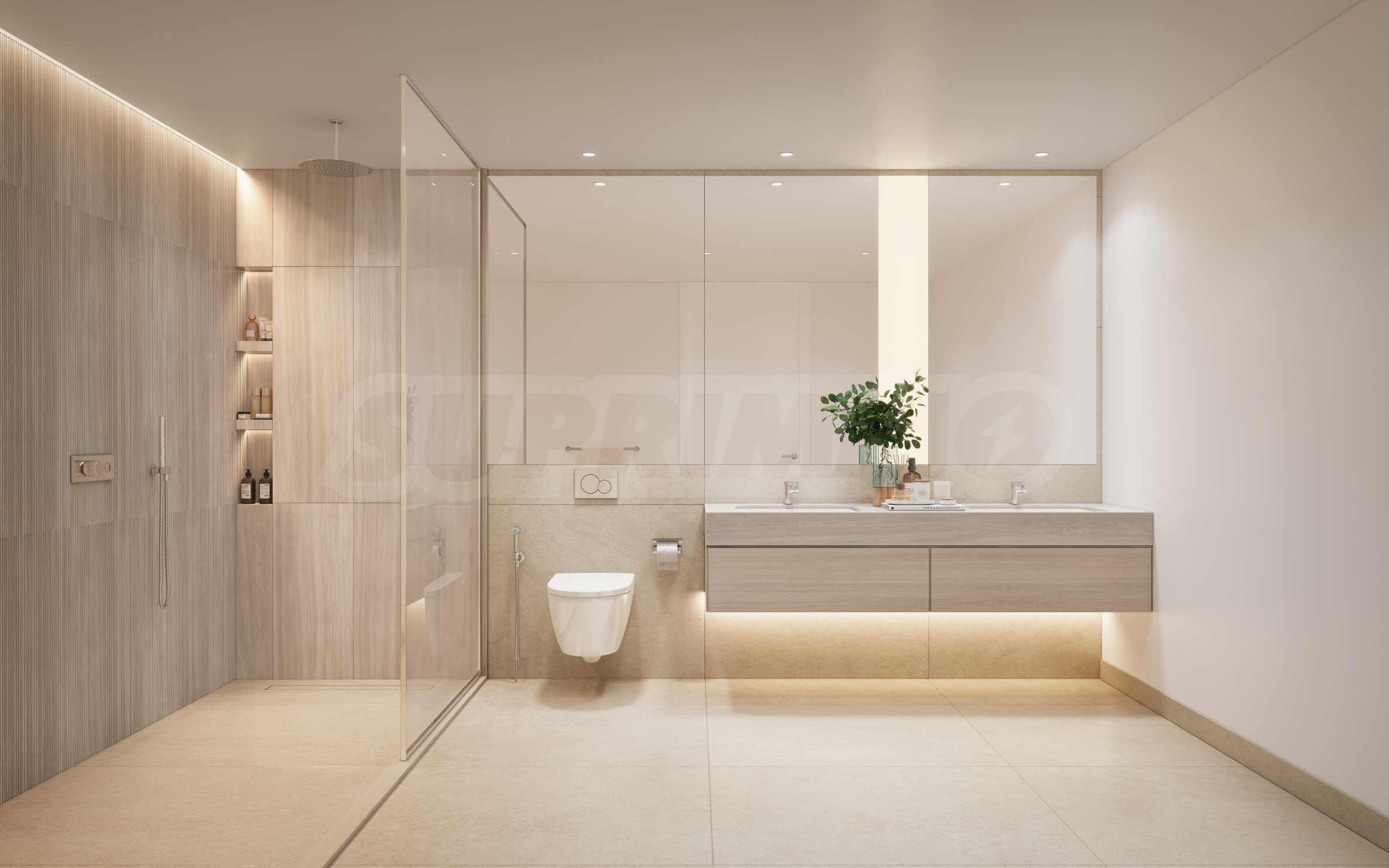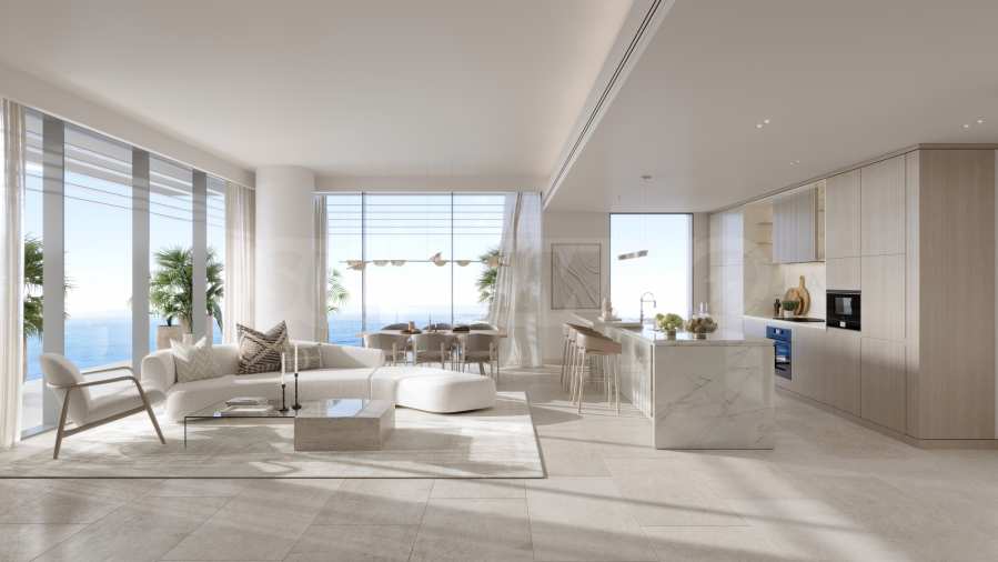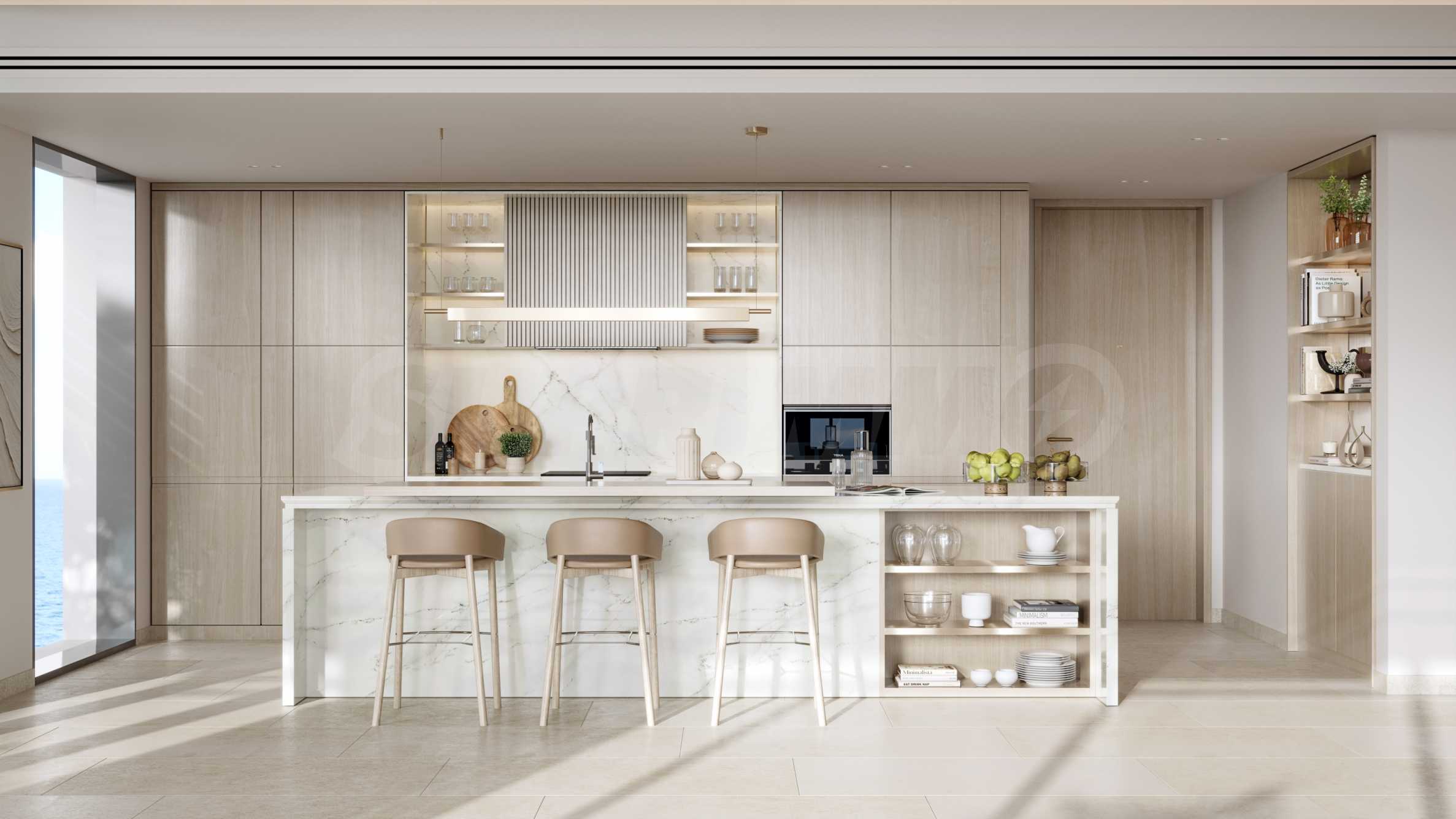 Obecnie dostępna jest ograniczona liczba apartamentów trzy- i czteropokojowych o funkcjonalnym i komfortowym układzie. Przestronne salony płynnie łączą się z kuchniami i jadalniami, tworząc otwarte przestrzenie idealne do wspólnego spędzania czasu, a każda sypialnia posiada własną łazienkę, co zapewnia dodatkową wygodę i prywatność. Wysokie sufity i sięgające od podłogi do sufitu okna francuskie zapewniają mnóstwo naturalnego światła i odsłaniają imponujące widoki – na bezkresny błękit morza lub malowniczą wyspę. Apartamenty są oddawane w pełni wykończone „pod klucz”, wliczając w to drzwi wejściowe i wewnętrzne, podłogi, oświetlenie, w pełni wyposażone kuchnie oraz stylowo wykończone łazienki.