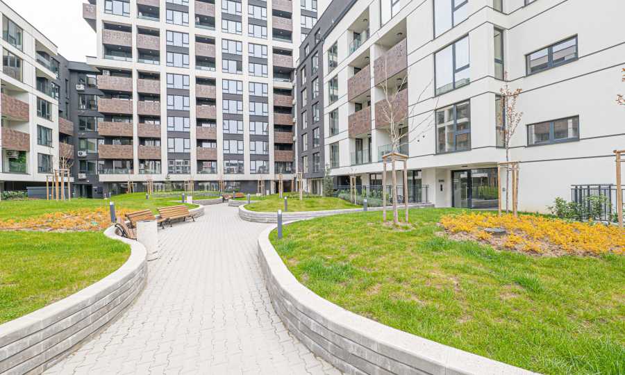 South End Residences to ogrodzony kompleks składający się z trzech budynków. Kompleks oferuje park z alejkami i strefami rekreacyjnymi, plac zabaw dla dzieci, wydzielone miejsce dla zwierząt oraz siłownię na świeżym powietrzu. Ze względów bezpieczeństwa kompleks jest wyposażony w ochronę na żywo, monitoring i ograniczony dostęp.