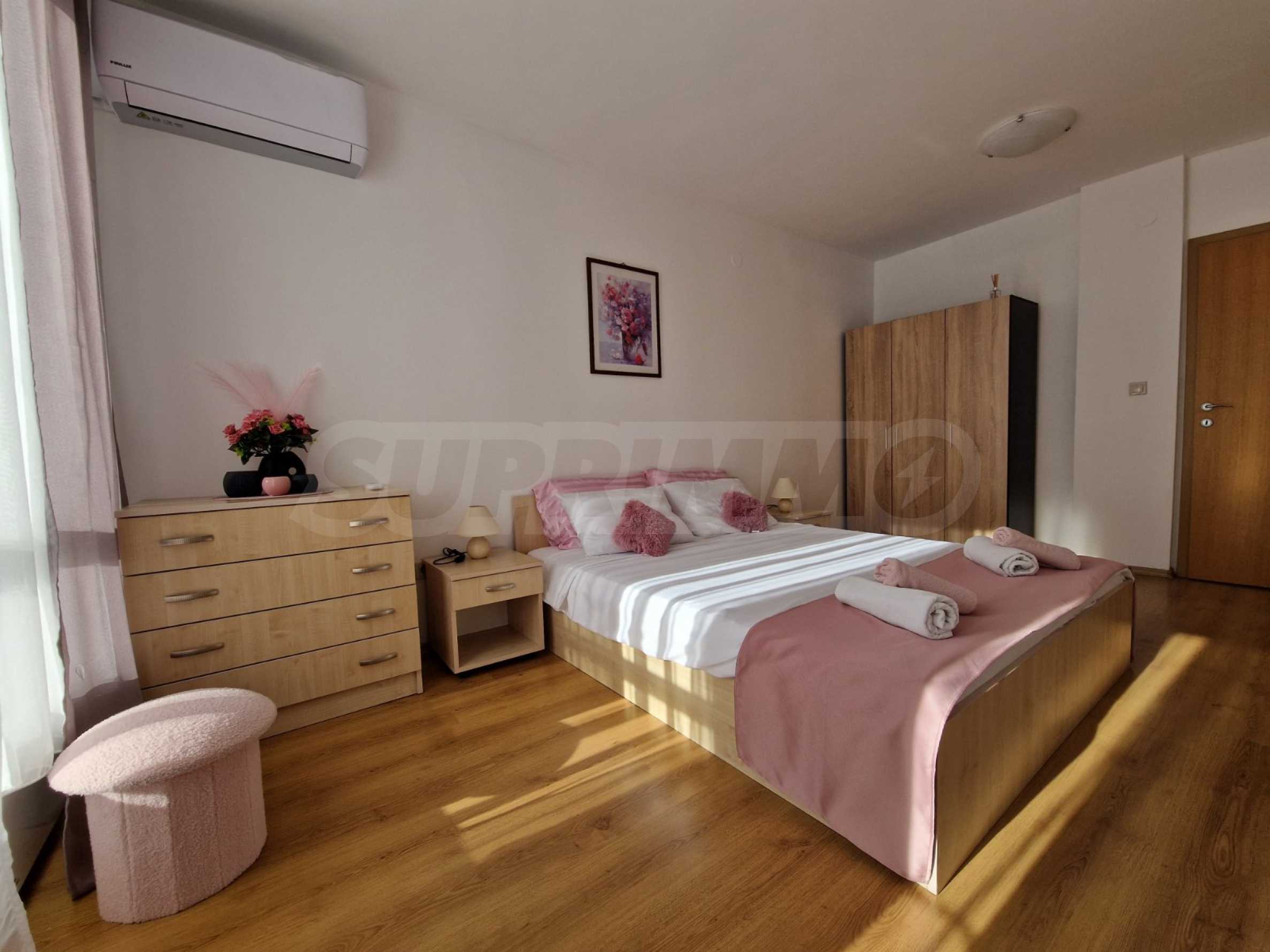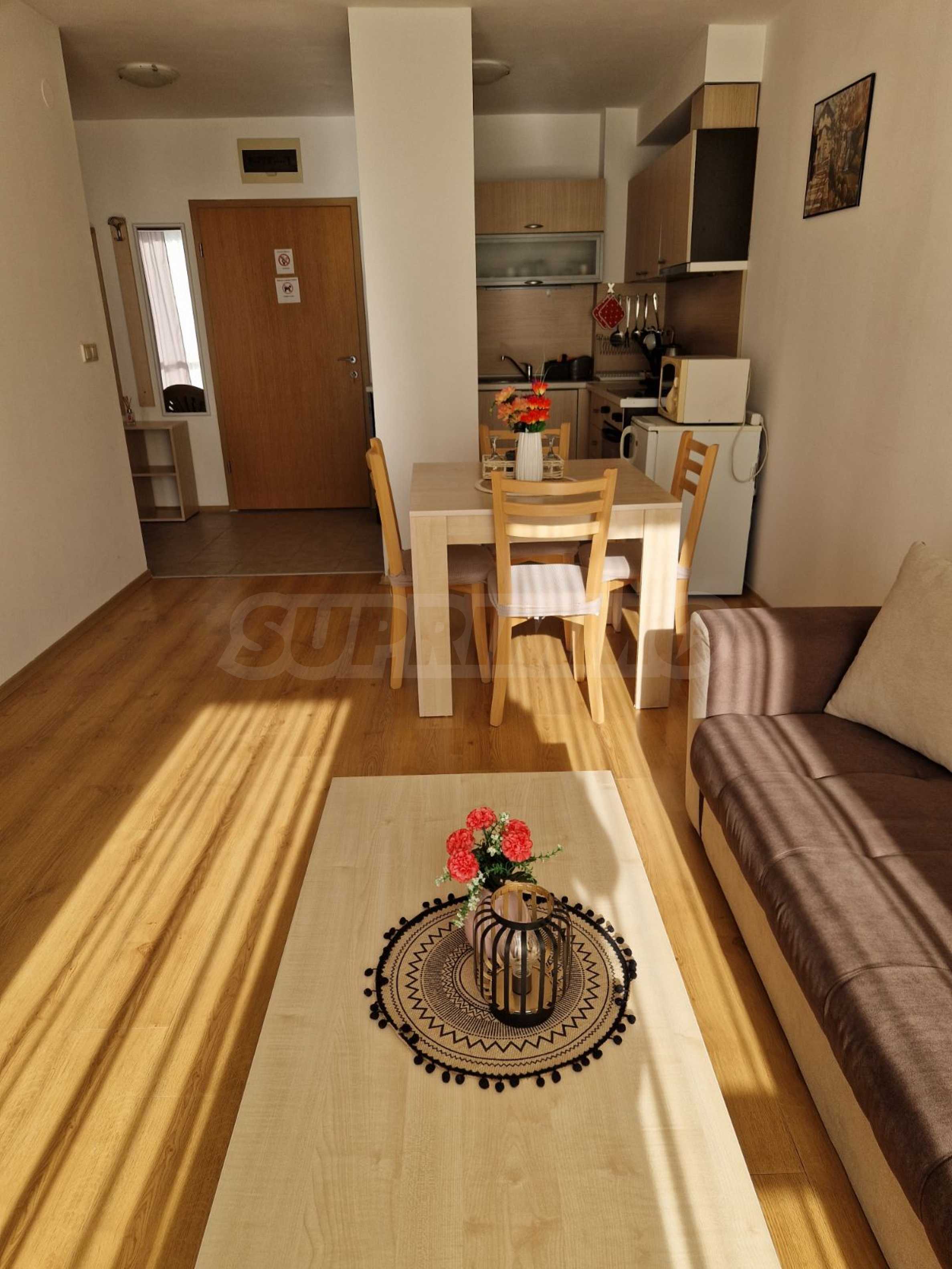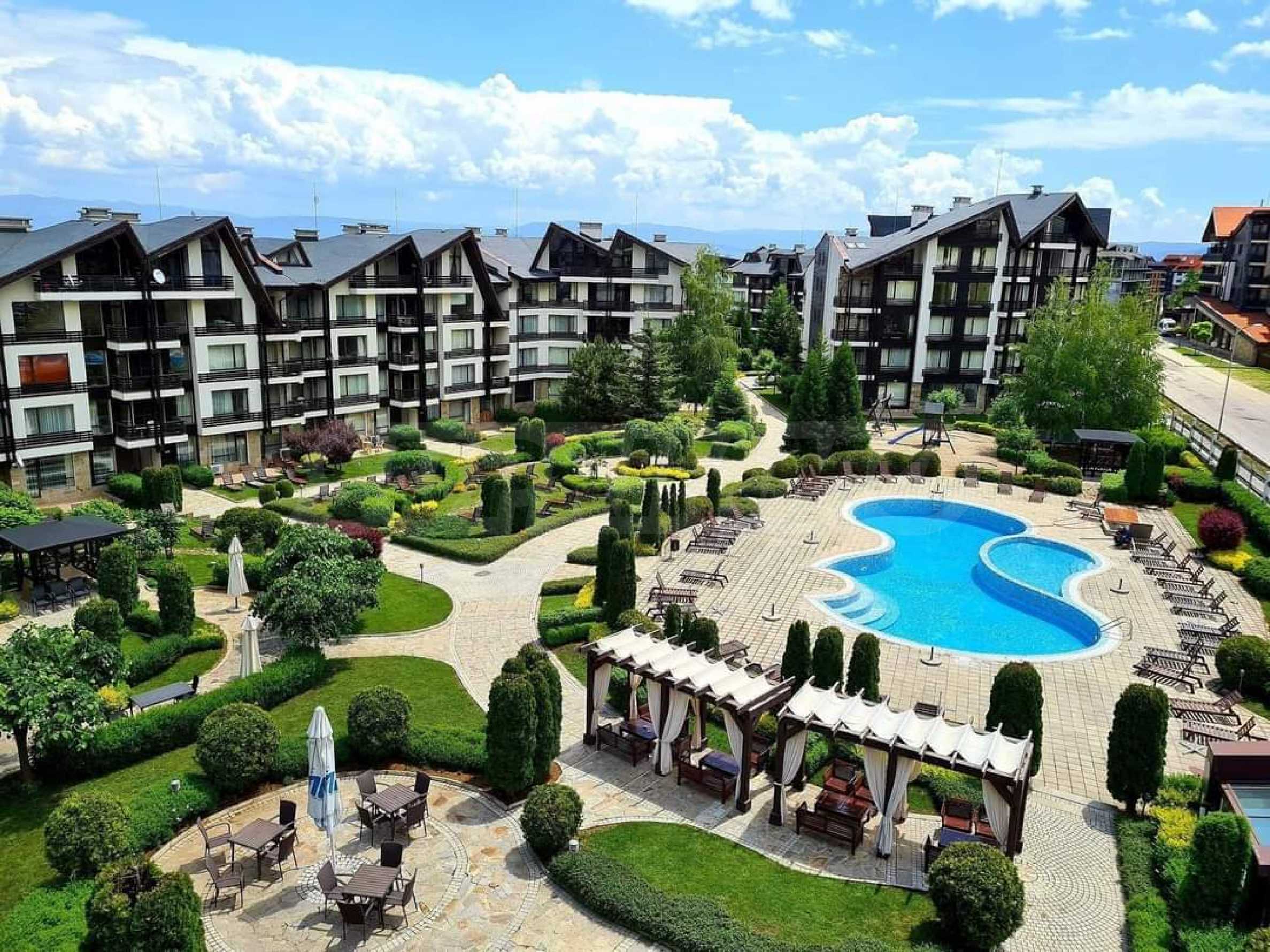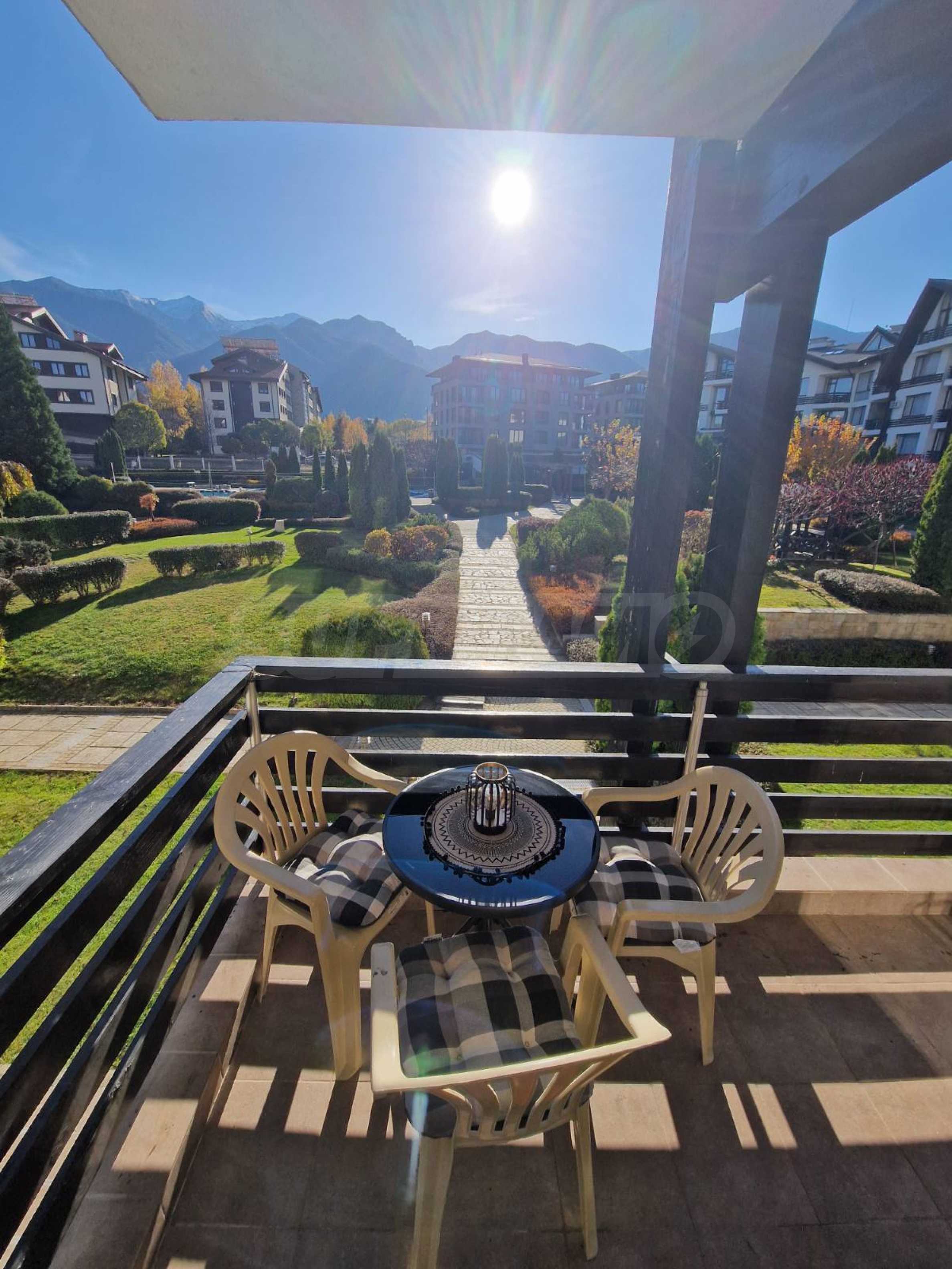 • Duży balkon z niesamowitym widokiem na góry Pirin, basen zewnętrzny i zagospodarowany ogród;