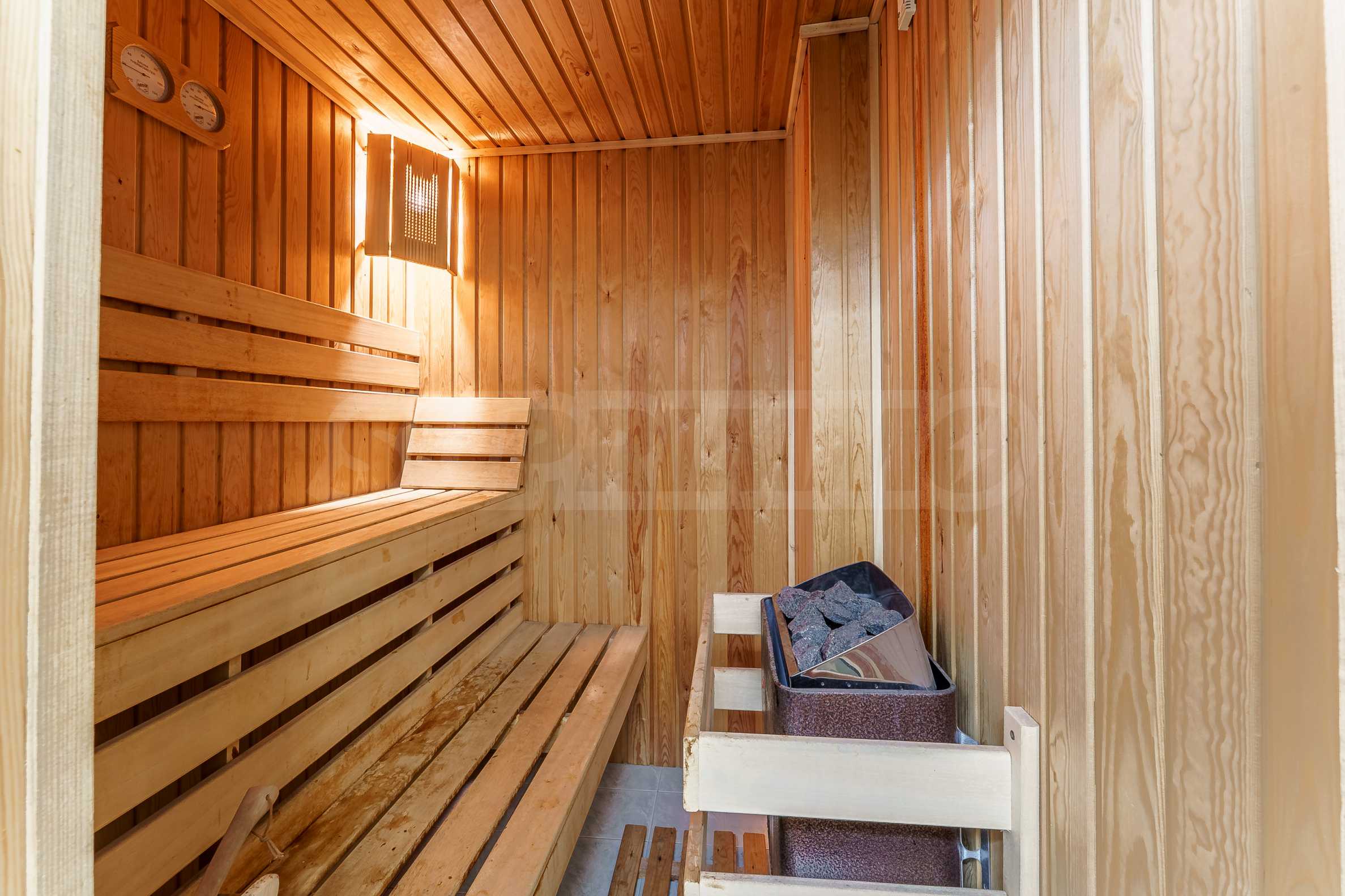 Kuchnia jest w pełni wyposażona w wysokiej klasy sprzęt AGD, w tym wbudowaną zmywarkę, a blaty wykonane są z naturalnego granitu. Ciepła woda zapewnia trójfazowy przepływowy podgrzewacz wody. Ogrzewanie zapewniają klimatyzatory w każdym pomieszczeniu.
