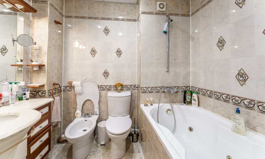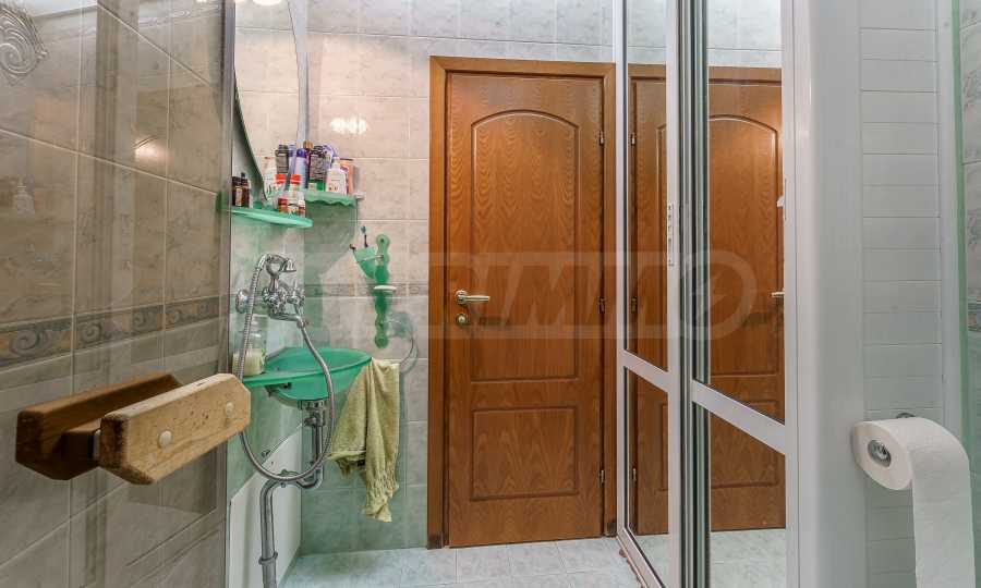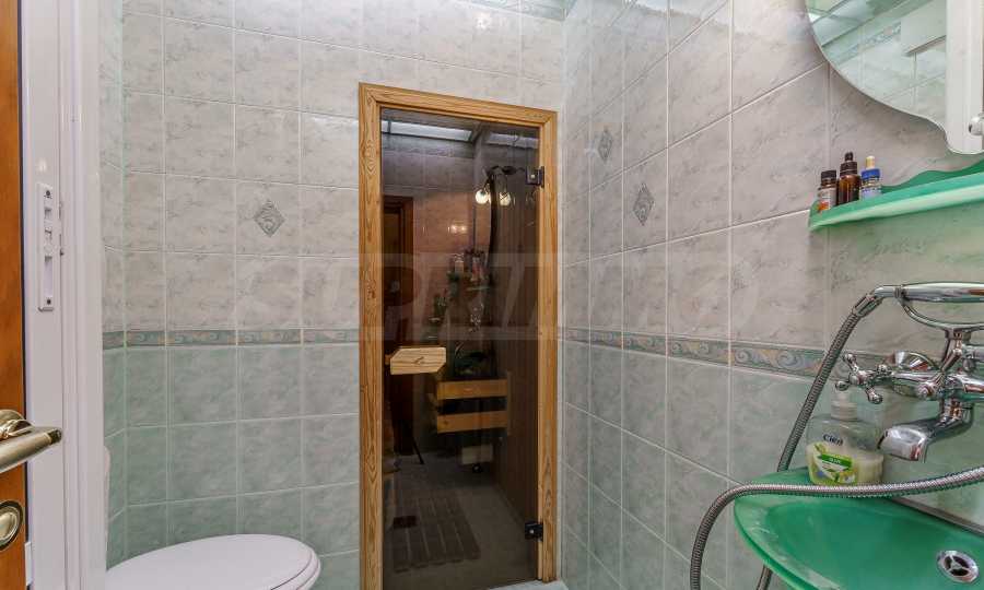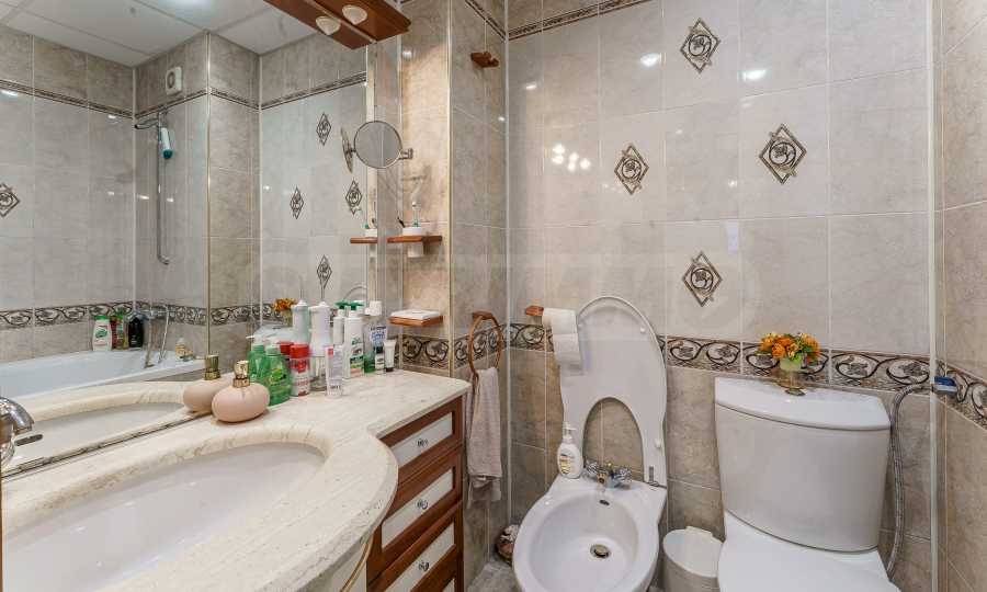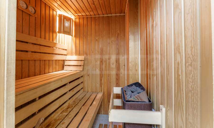 Nieruchomość posiada trzy oddzielne sypialnie, dwie łazienki, z których jedna wyposażona jest w saunę, oraz łazienkę główną z jacuzzi. Do apartamentu przynależy taras o powierzchni 6 m², z którego roztacza się przyjemny widok na przestronny teren międzyblokowy z bujną roślinnością.