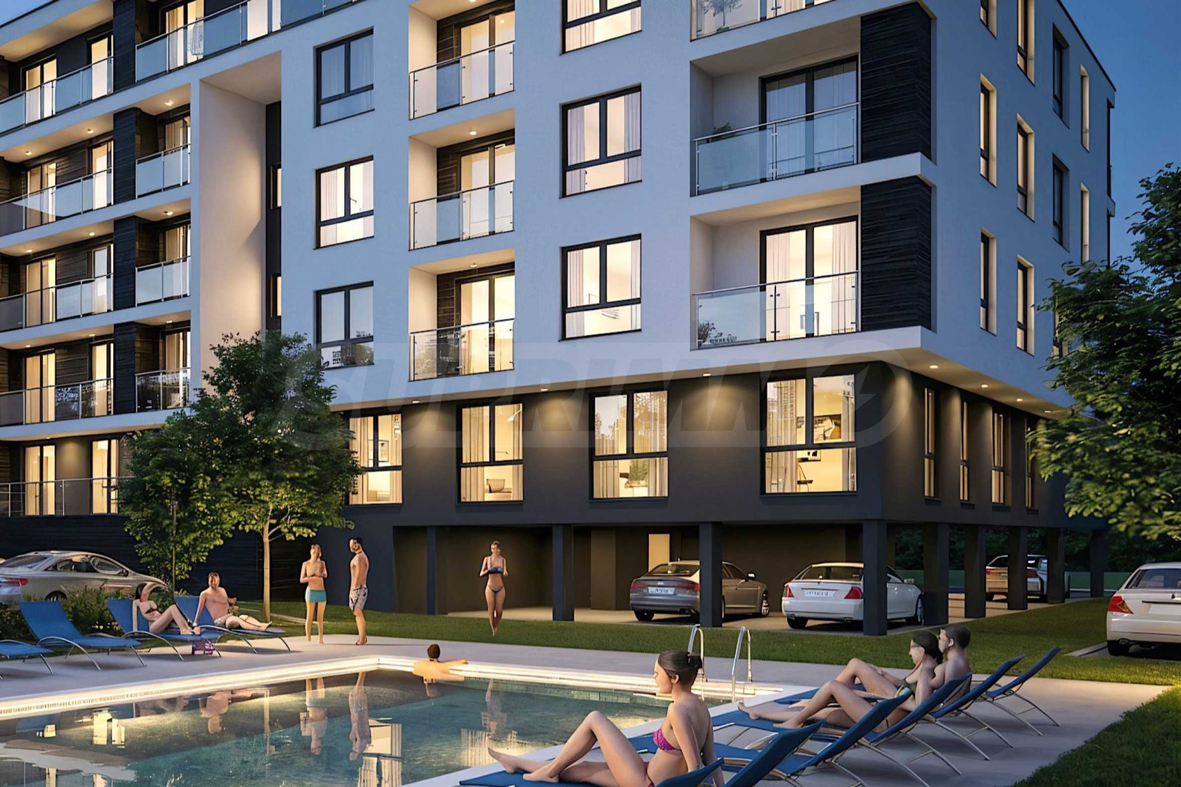 Oferujemy na sprzedaż mieszkanie jednopokojowe w nowym budynku mieszkalnym z basenem i udogodnieniami, położonym w samym sercu Starego Miasta w Carewie, w dzielnicy „Vasiliko”. W górnej części osiedla, w pobliżu plaży Nestinarka, centrum miasta, restauracji, parków, sklepów spożywczych i sieci handlowych.
