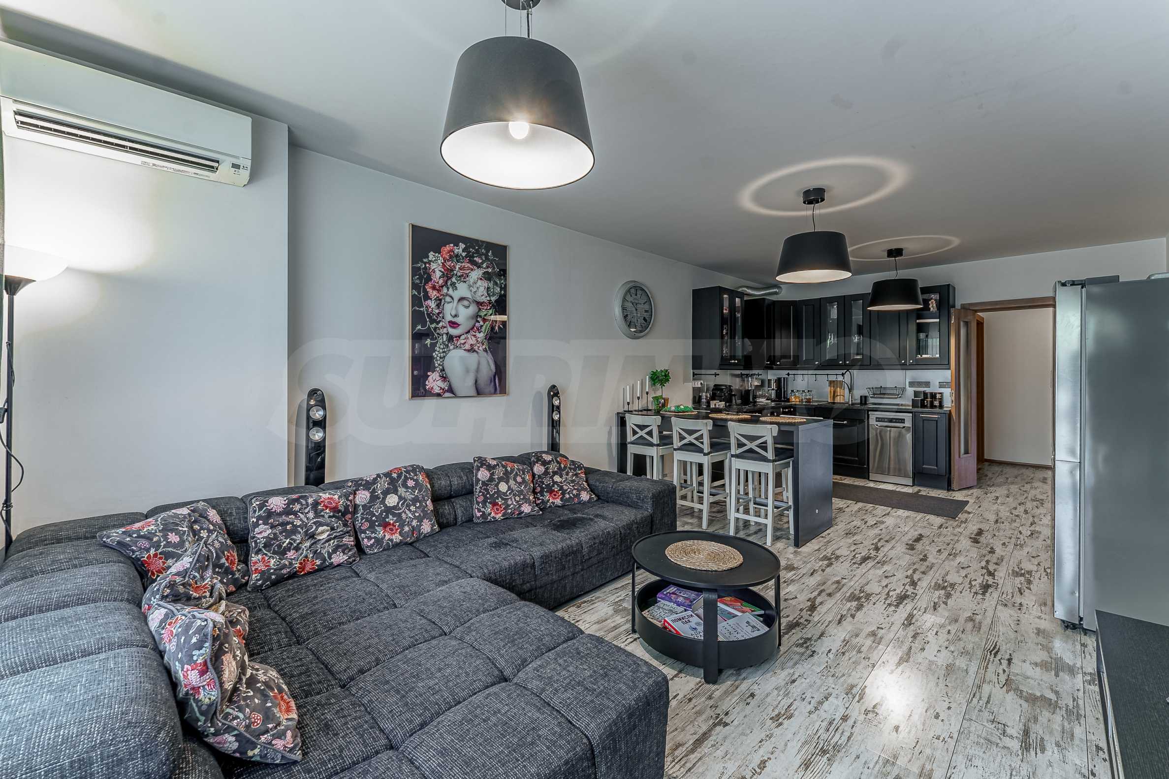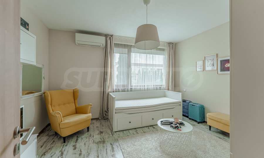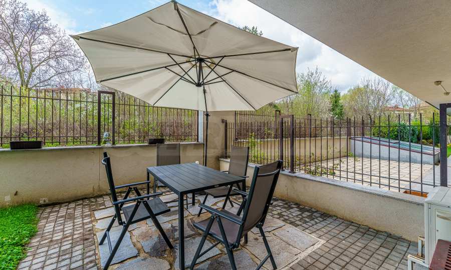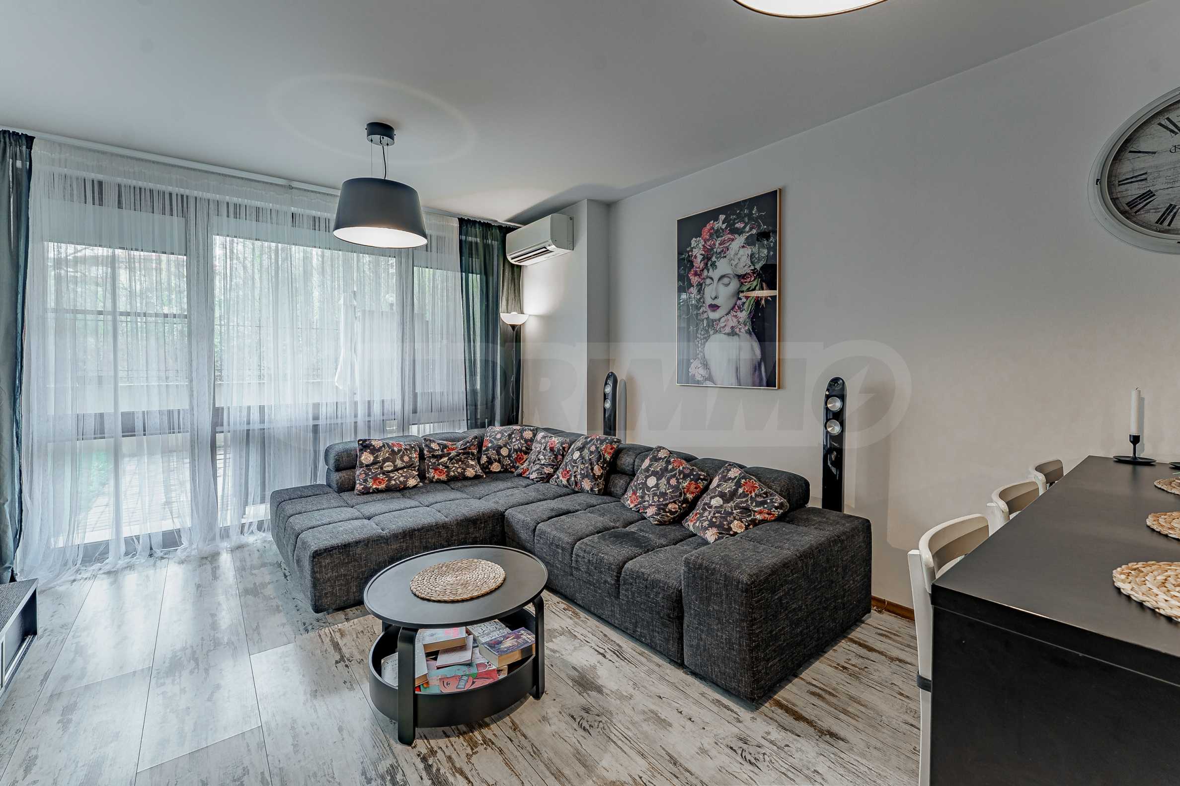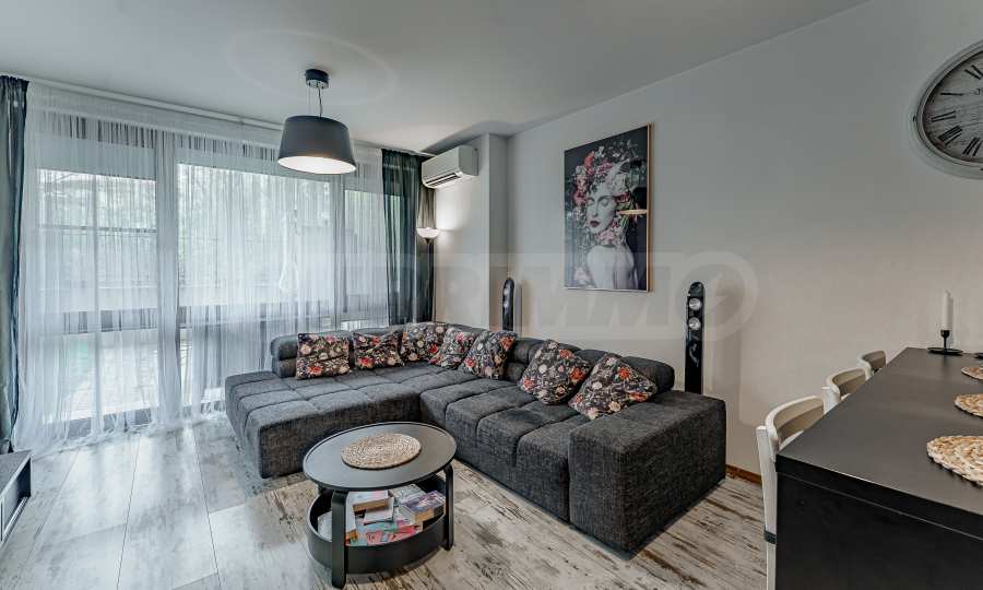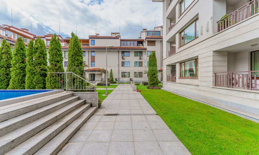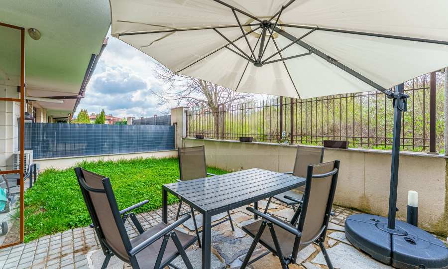 Prezentujemy Państwu dwupokojowe mieszkanie z podwórkiem w zamkniętym kompleksie „Bel Valley”, dzielnica Kambanite - nieruchomość oferująca wrażenie domu, ale z wygodą mieszkania.