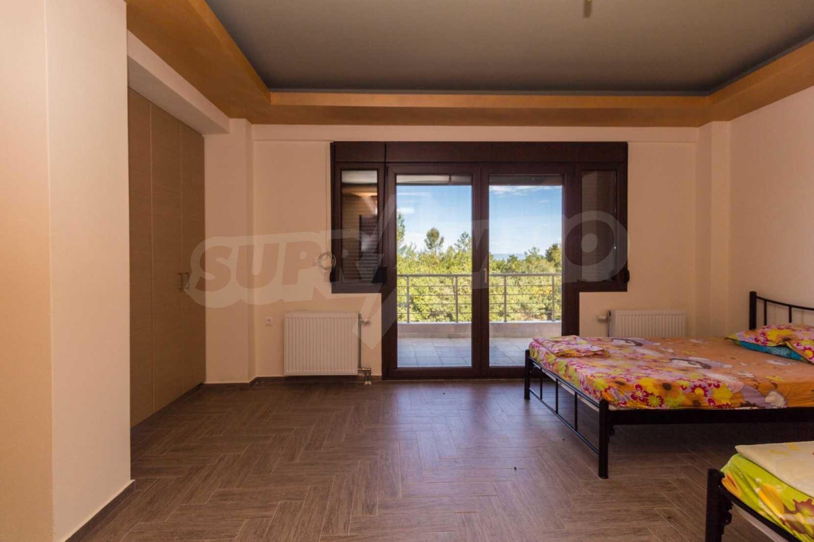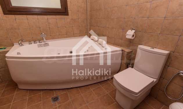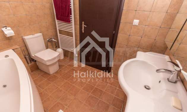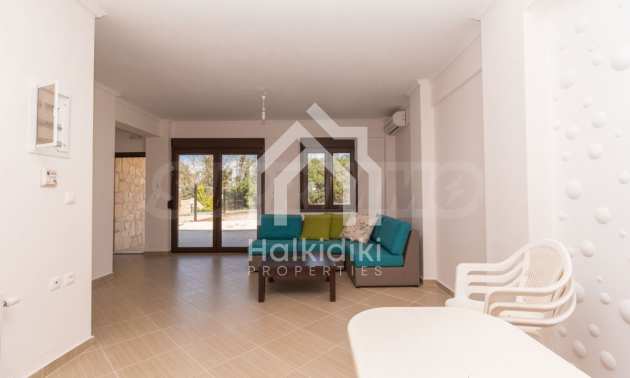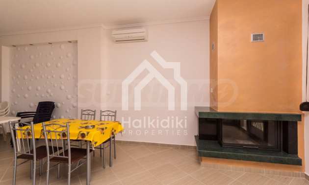 Ten przyjemny rodzinny dom wakacyjny położony jest w wiosce Paliouri, na półwyspie Kasandra na Półwyspie Chalcydyckim. Dom został wybudowany w 2013 roku i oferuje nowoczesne i przyjemne warunki mieszkalne.Jest częścią nowo wybudowanego kompleksu i jest dwupoziomowy. Cała powierzchnia domu to 130 metrów kwadratowych, podzielona na dwie sypialnie i dwie łazienki, a także duży salon.