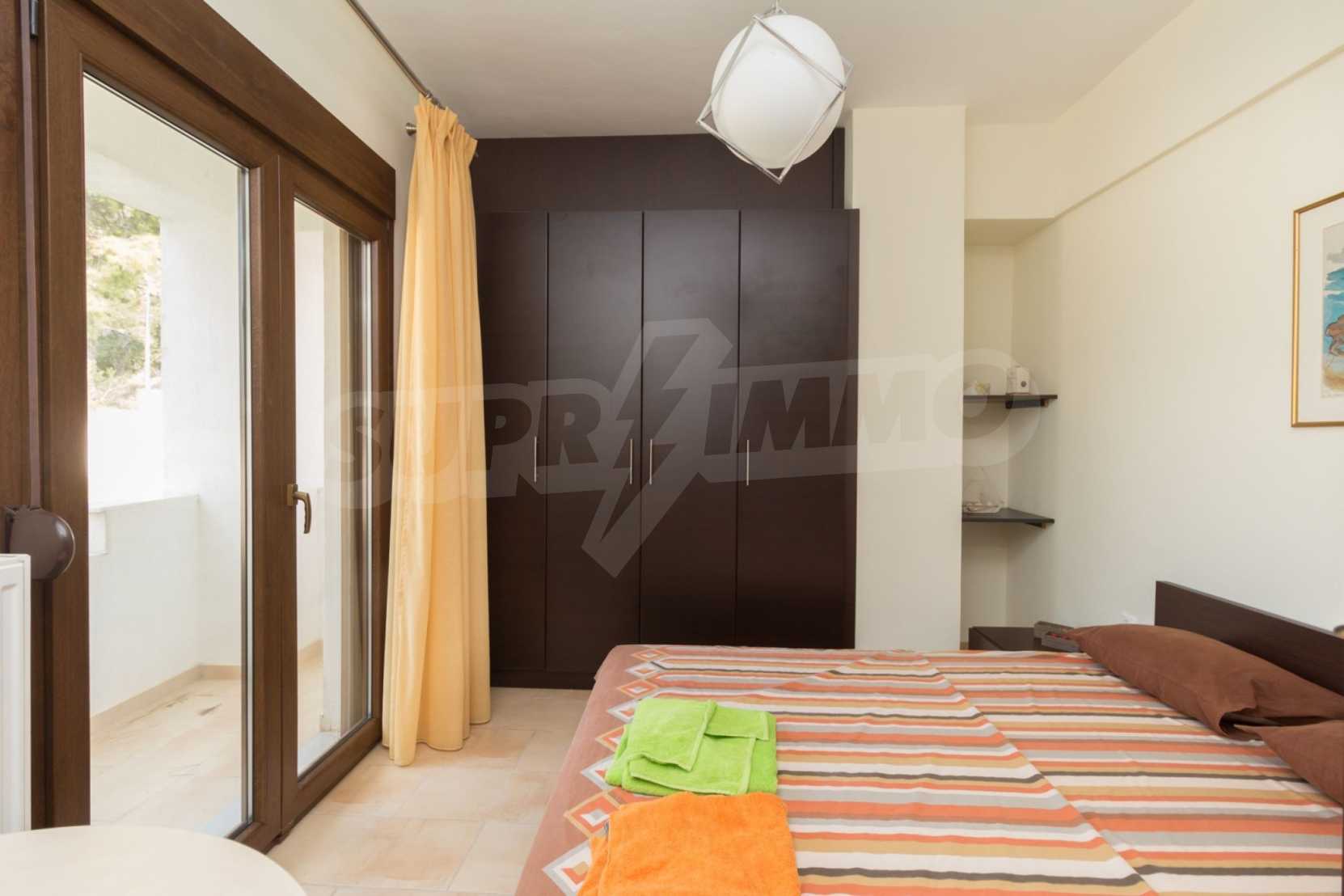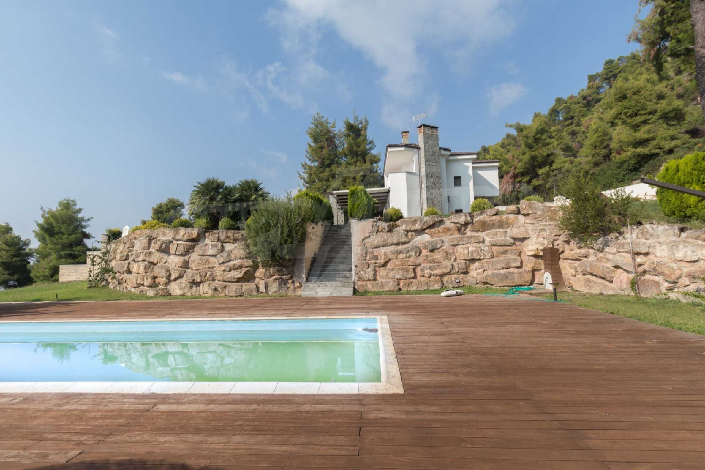 Wspaniała willa z doskonałą lokalizacją w miejscowości wypoczynkowej Posidi, części ramienia Kassandra na Półwyspie Chalcydyckim. Willa otoczona jest sosnowym lasem. Został zbudowany w 2008 roku i ma powierzchnię 200 mkw. składający się z dużego salonu z kominkiem, oddzielnej kuchni, czterech sypialni oraz trzech łazienek z toaletami. Ogrzewanie zapewnia kominek i lokalne ogrzewanie, a także klimatyzatory. Nieruchomość wyposażona jest w opancerzone drzwi wejściowe, własne ujęcie wody, balkon, garaż, garderobę, parking.