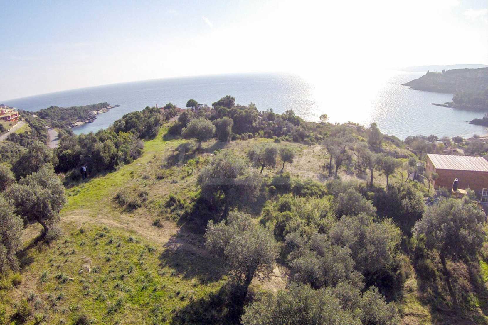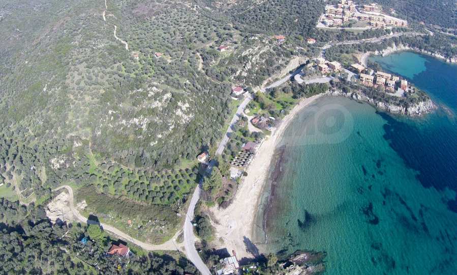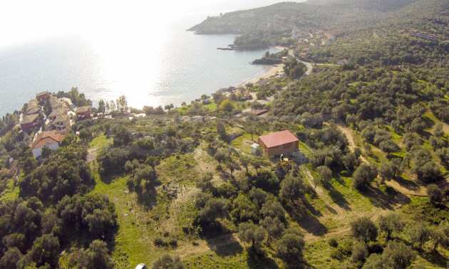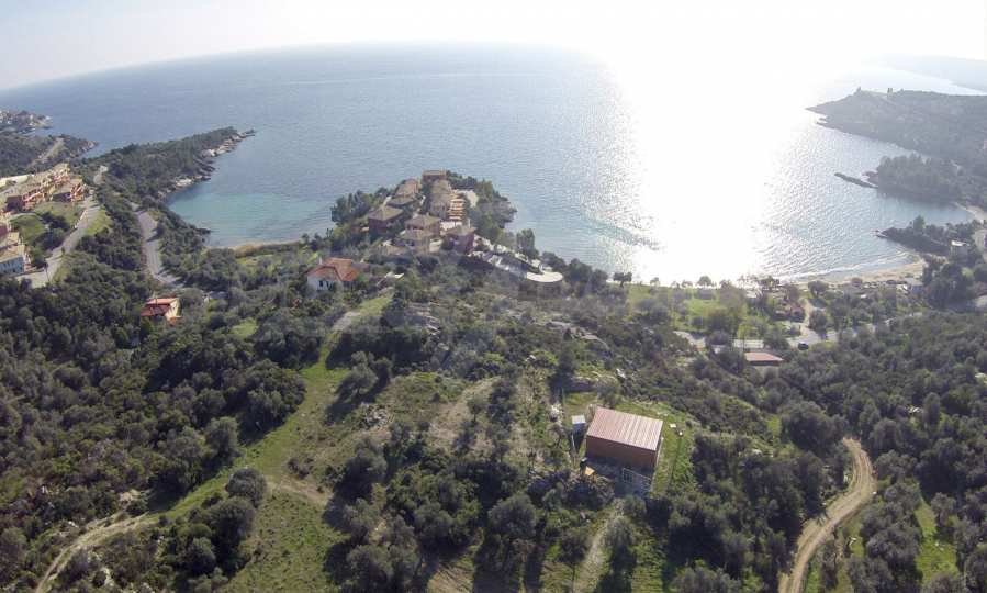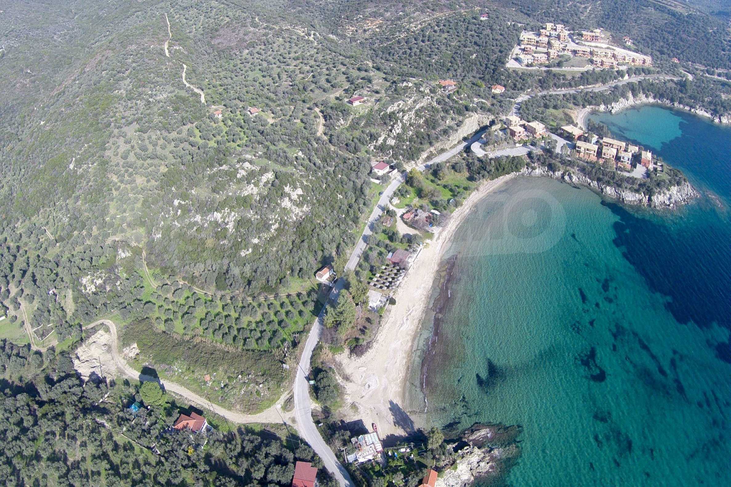 Ta duża działka rolna, rozciągająca się na powierzchni 8000 metrów kwadratowych, znajduje się w gminie Aristotelis, części regionu Athos na Półwyspie Chalcydyckim. Położenie i powierzchnia działki doskonale nadaje się pod budowę kilku budynków letniskowych lub dużego domu jednorodzinnego. Na działce jest woda i prąd. Nieruchomość jest częścią uroczej okolicy ze wspaniałymi widokami na morze, zaledwie kilka metrów od doskonałej piaszczystej plaży.