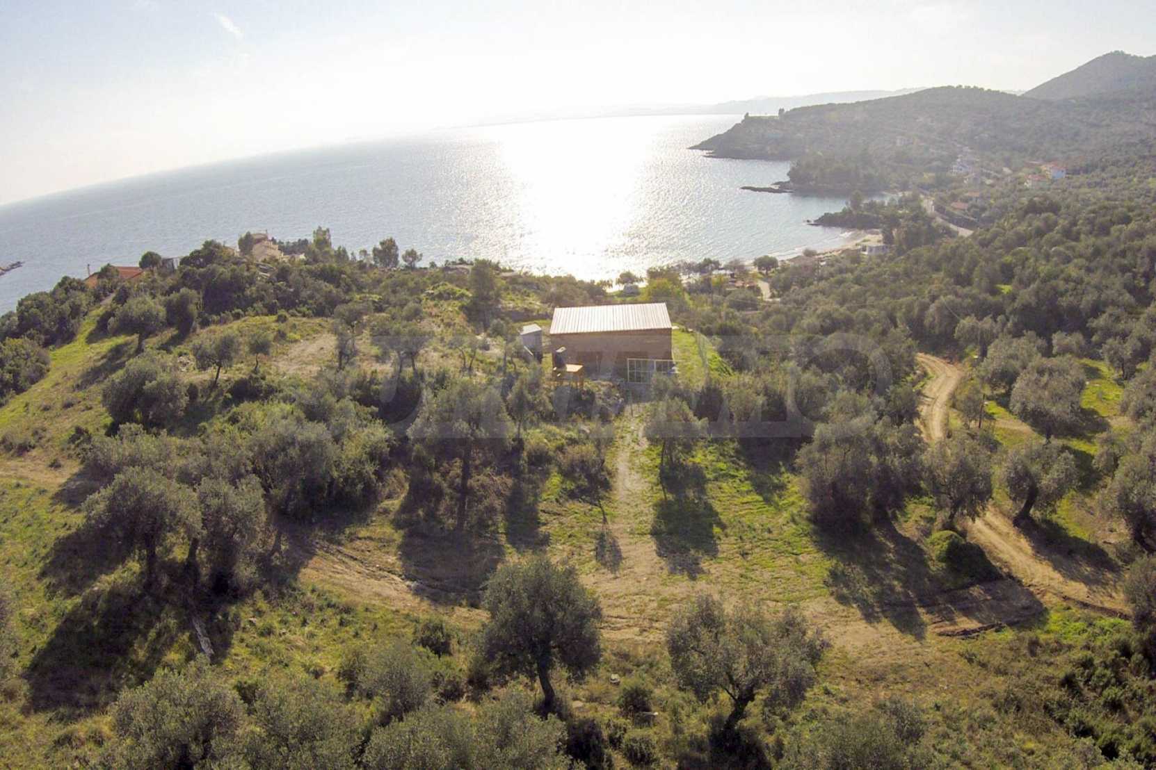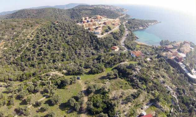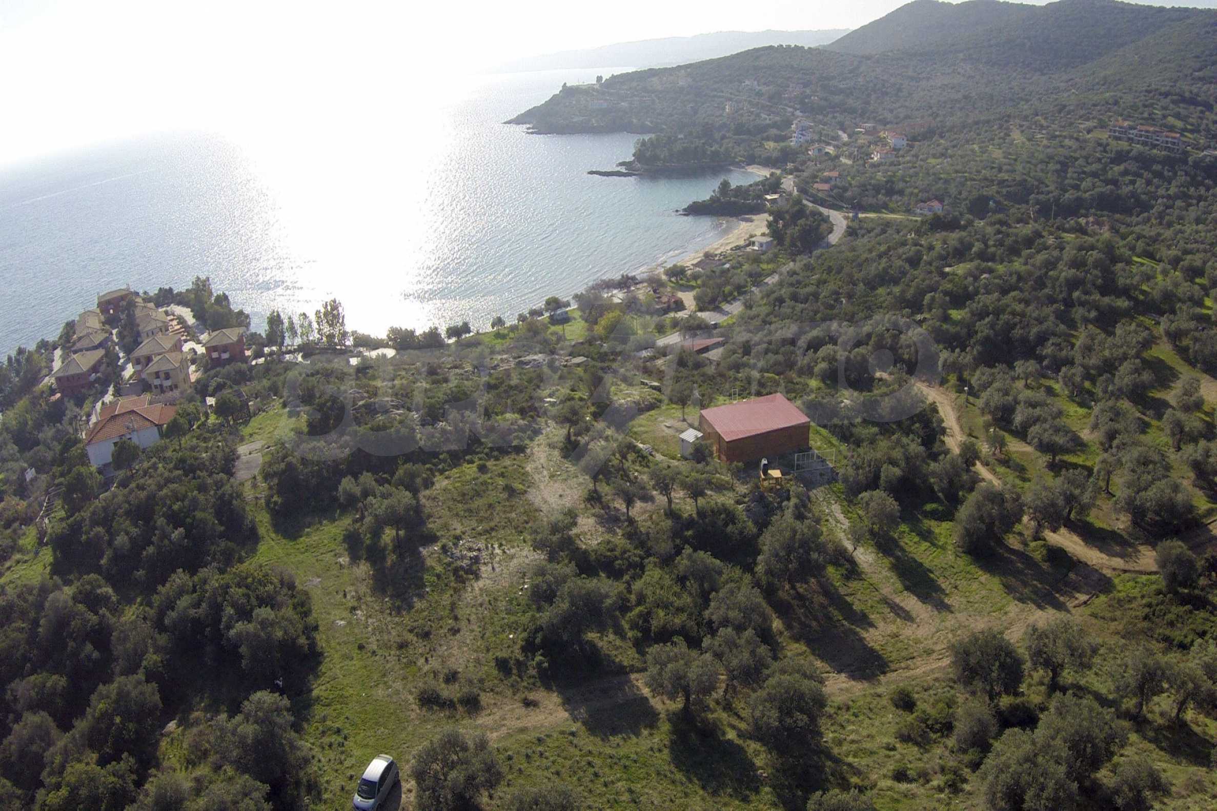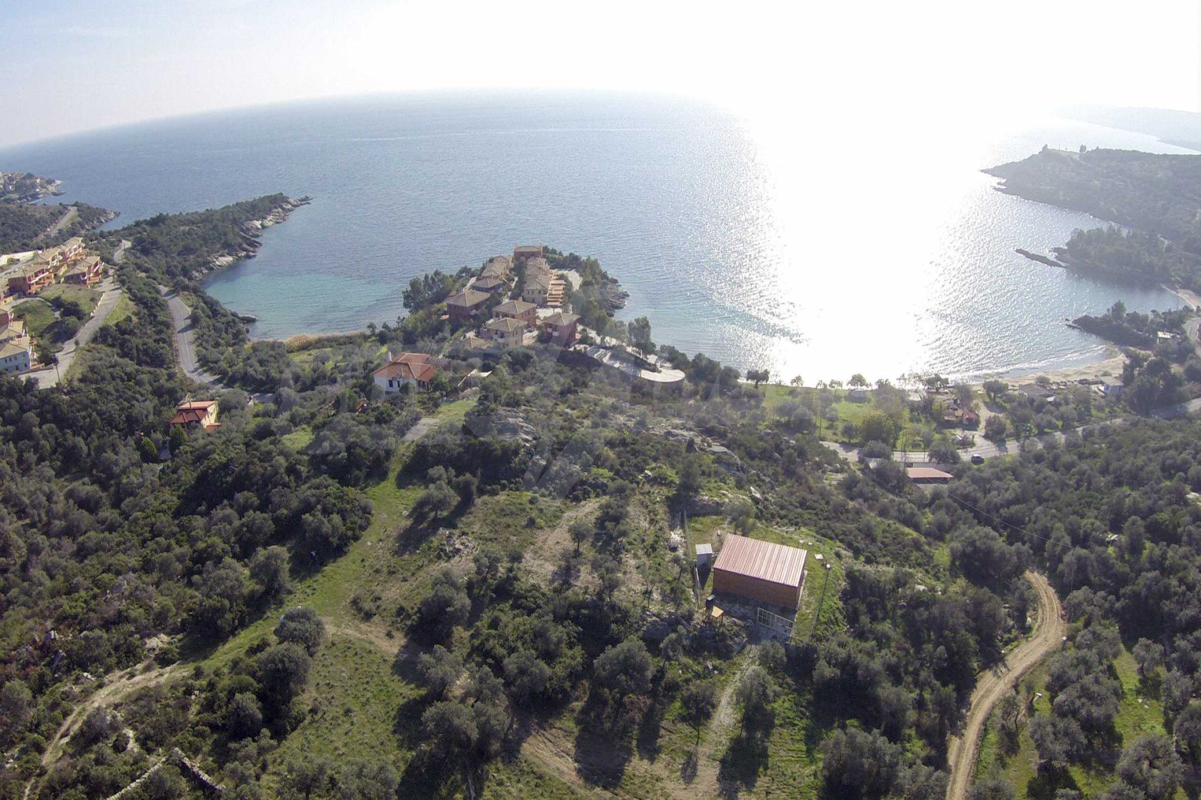 Ta duża działka rolna, rozciągająca się na powierzchni 8000 metrów kwadratowych, znajduje się w gminie Aristotelis, części regionu Athos na Półwyspie Chalcydyckim. Położenie i powierzchnia działki doskonale nadaje się pod budowę kilku budynków letniskowych lub dużego domu jednorodzinnego. Na działce jest woda i prąd. Nieruchomość jest częścią uroczej okolicy ze wspaniałymi widokami na morze, zaledwie kilka metrów od doskonałej piaszczystej plaży.