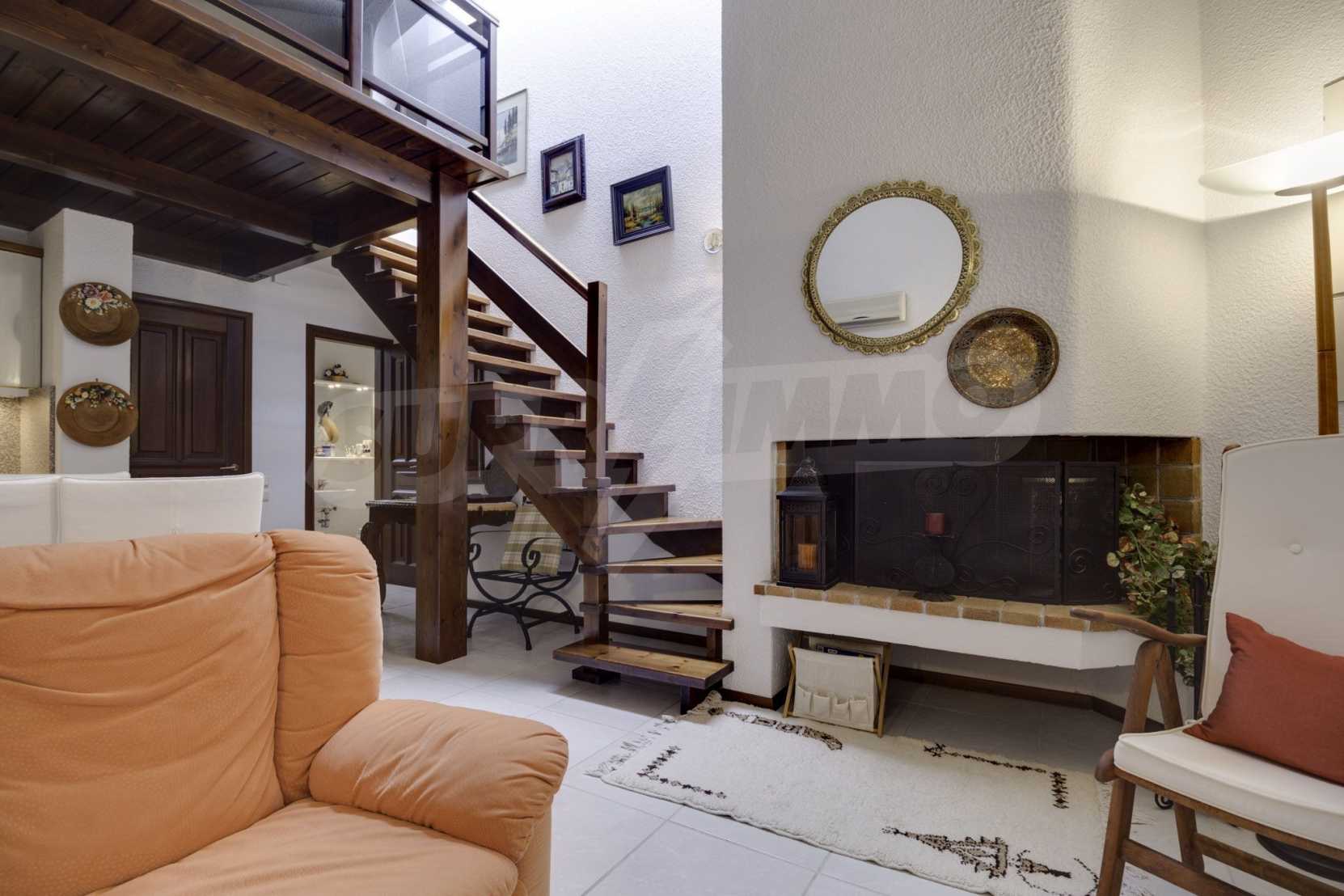 Ponadto dom posiada ogród, który rozciąga się na ponad 800 metrów kwadratowych i oferuje basen, miejsce na grilla oraz parking.